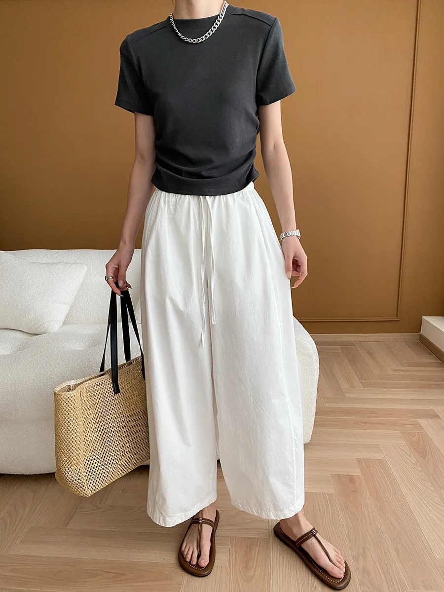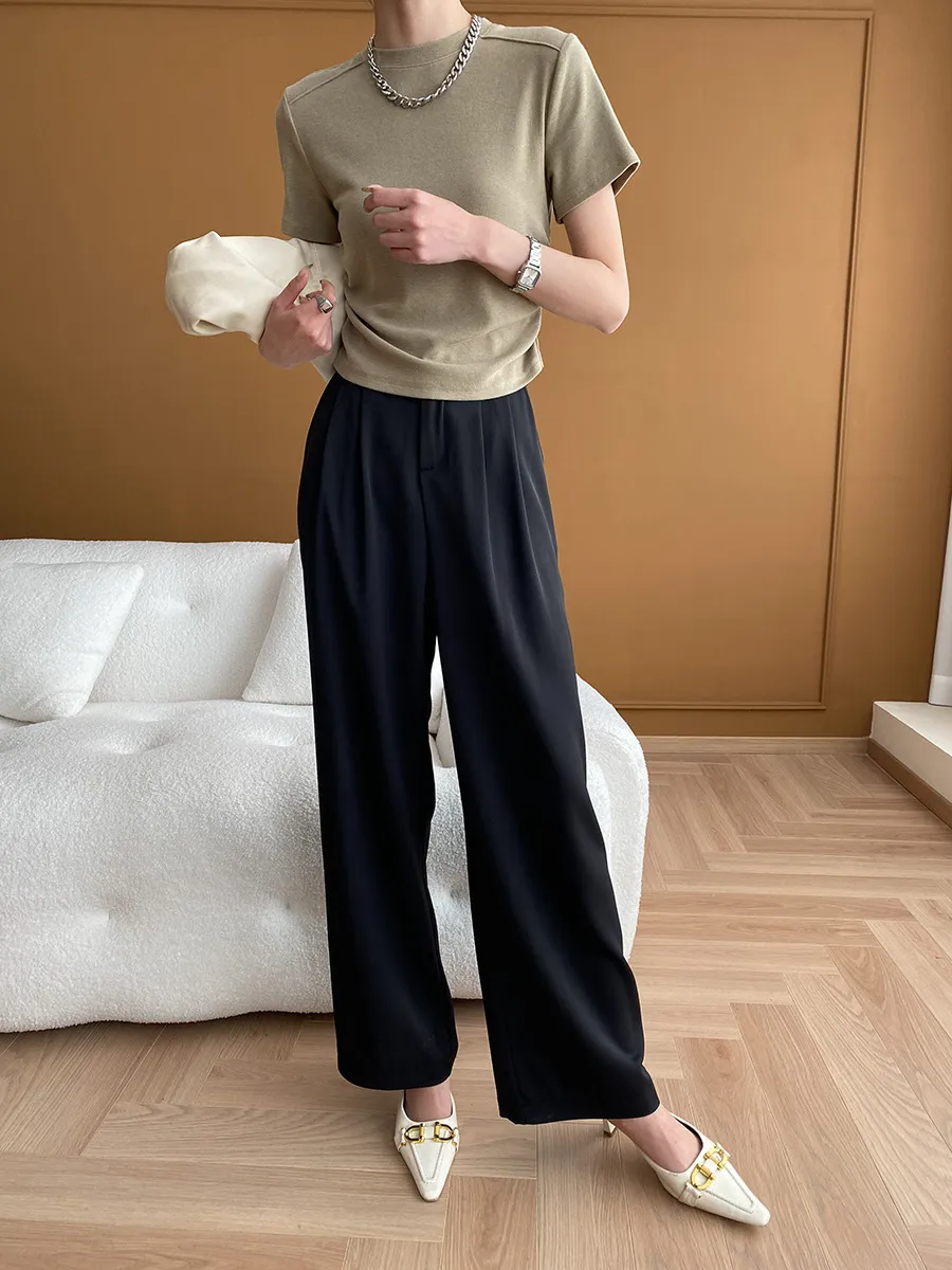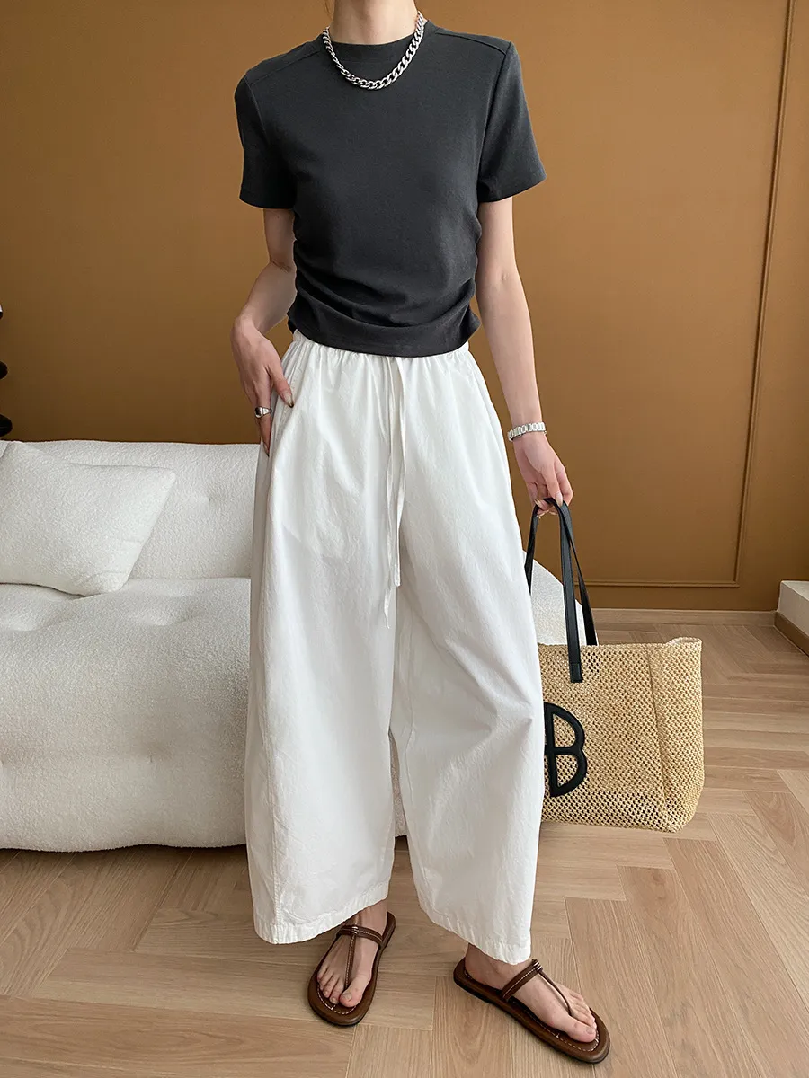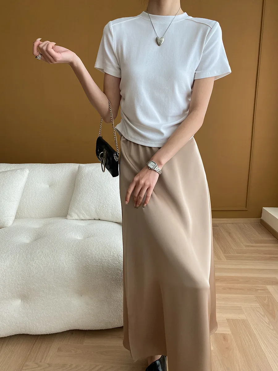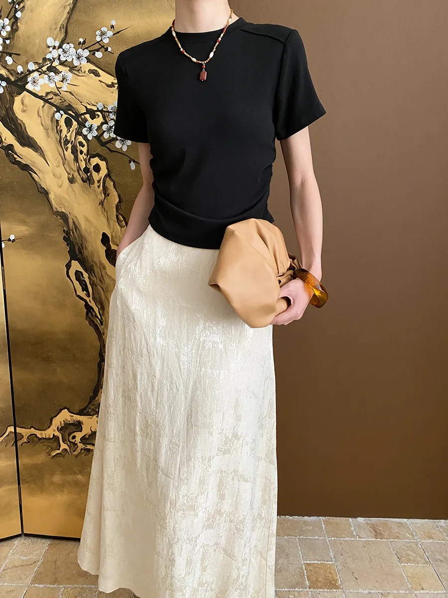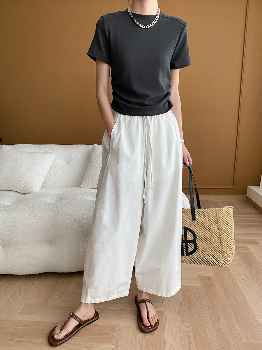 立體肩線!小圓領側皺收腰棉Tee 4色