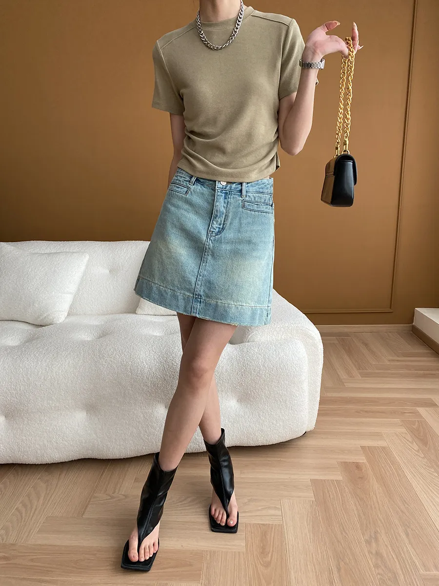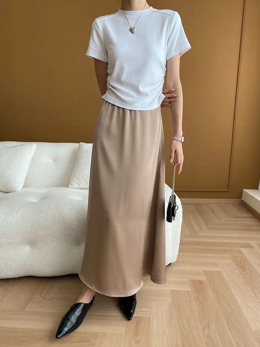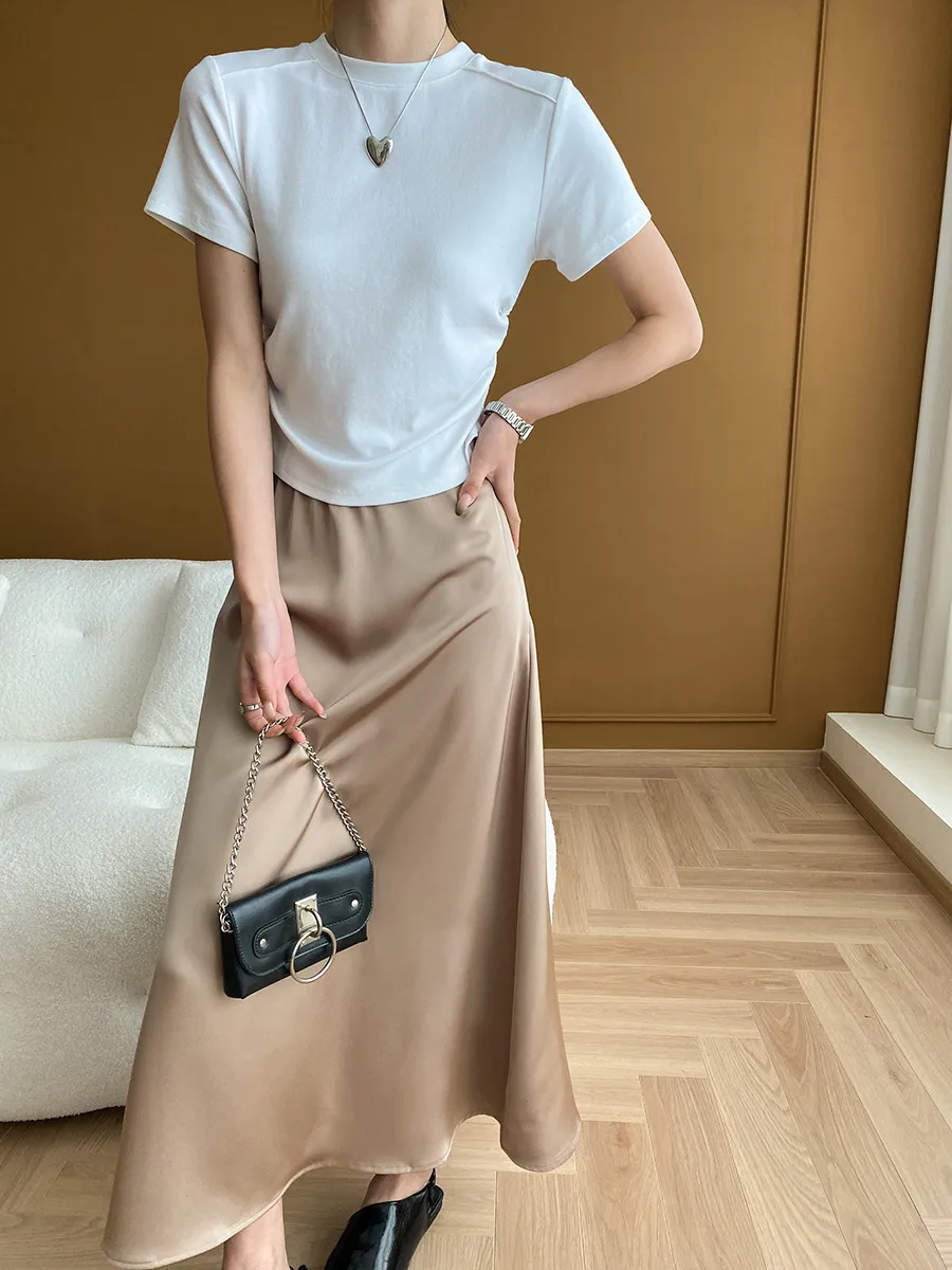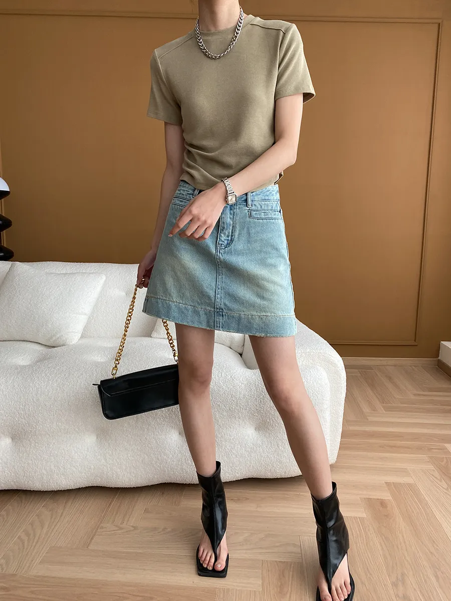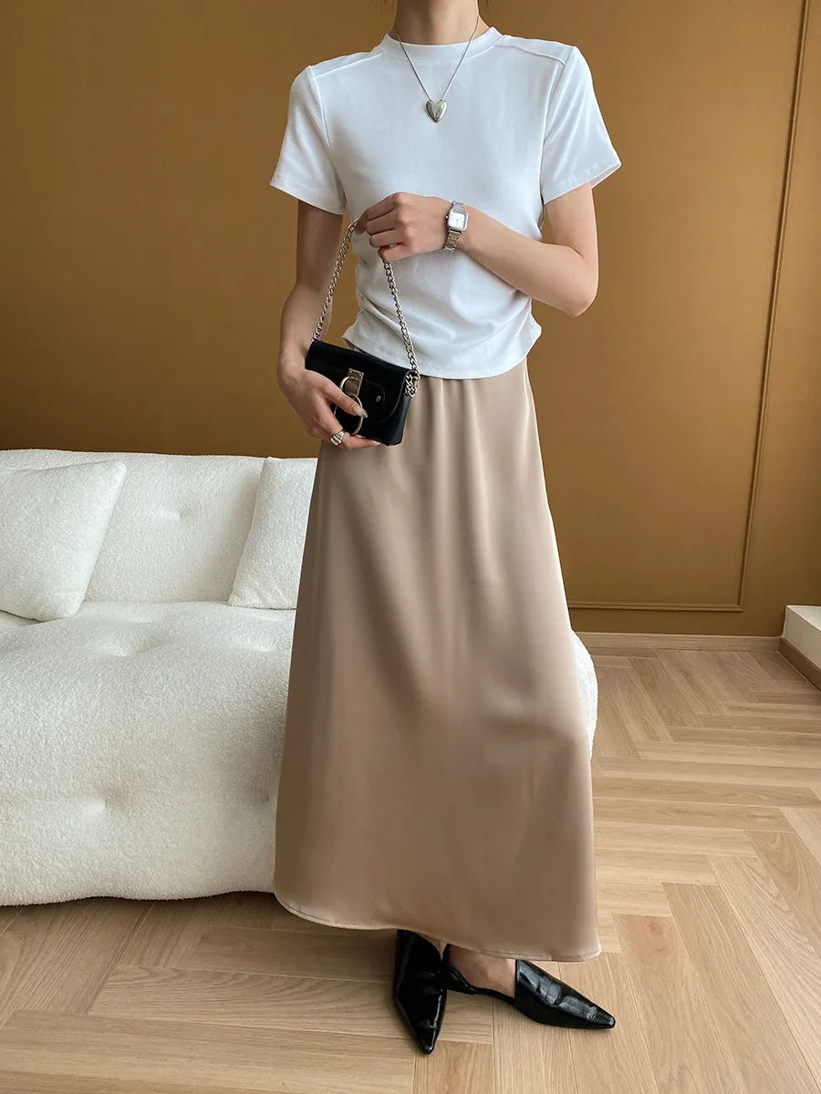 立體肩線!小圓領側皺收腰棉Tee 4色