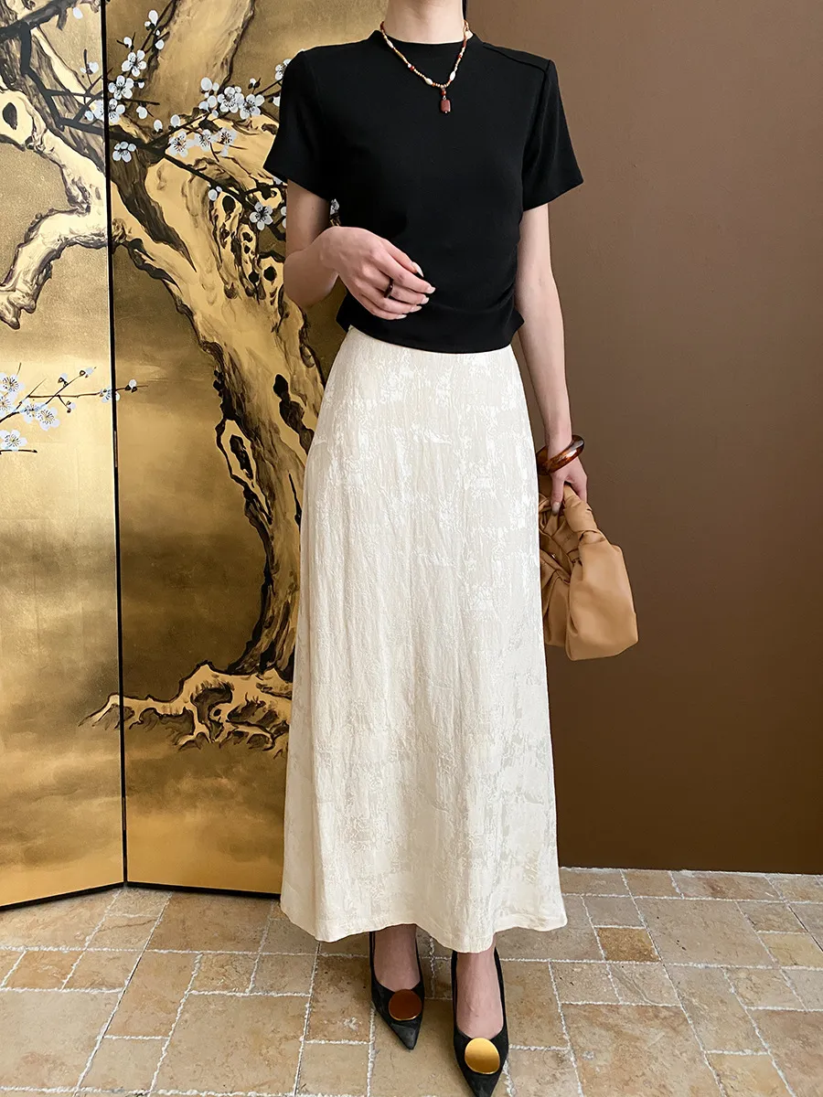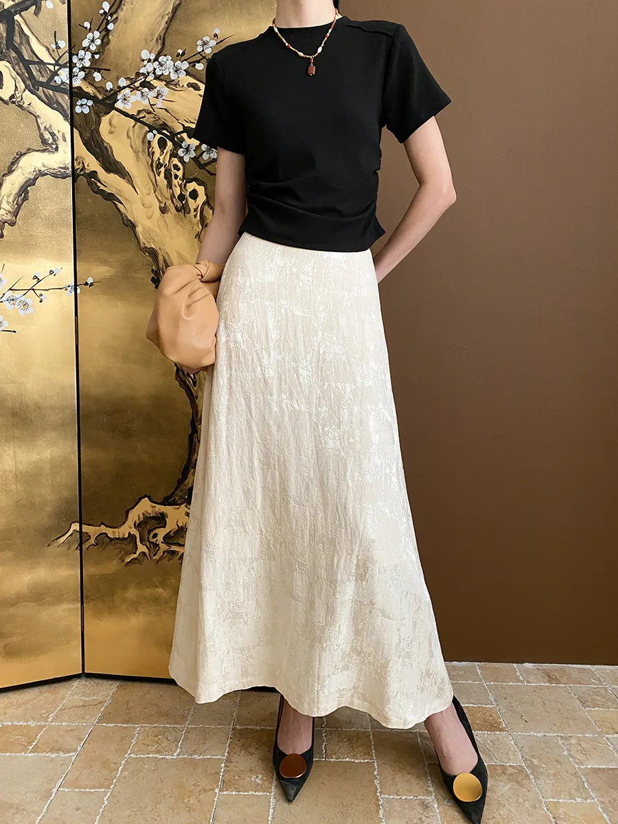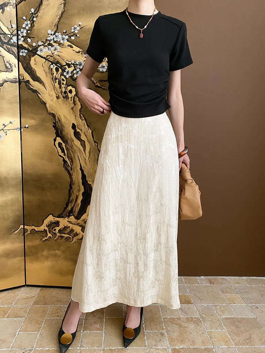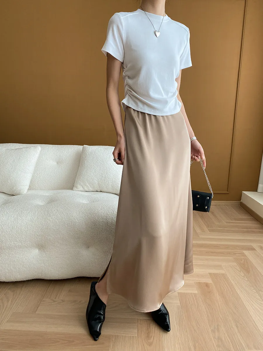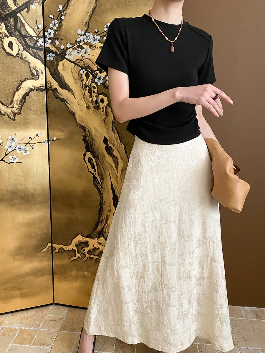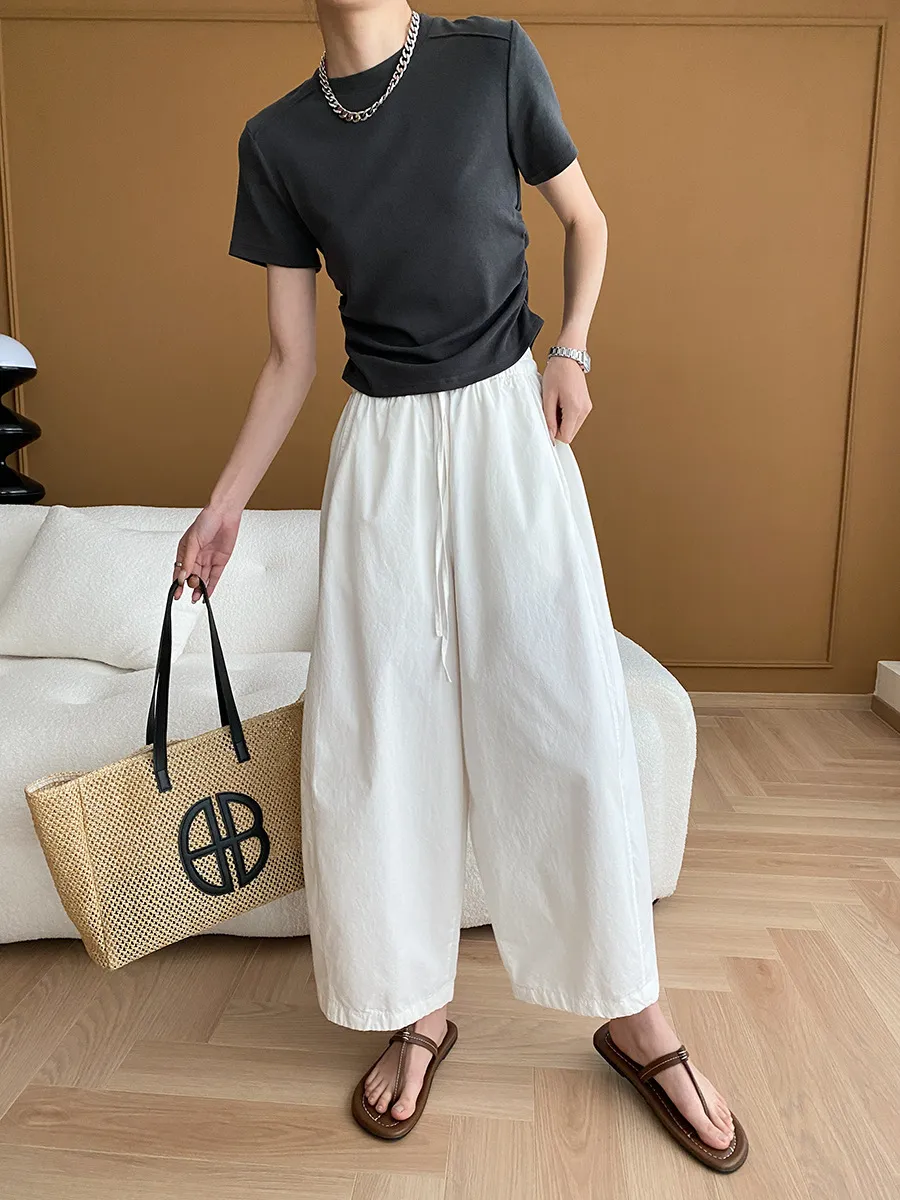 立體肩線!小圓領側皺收腰棉Tee 4色