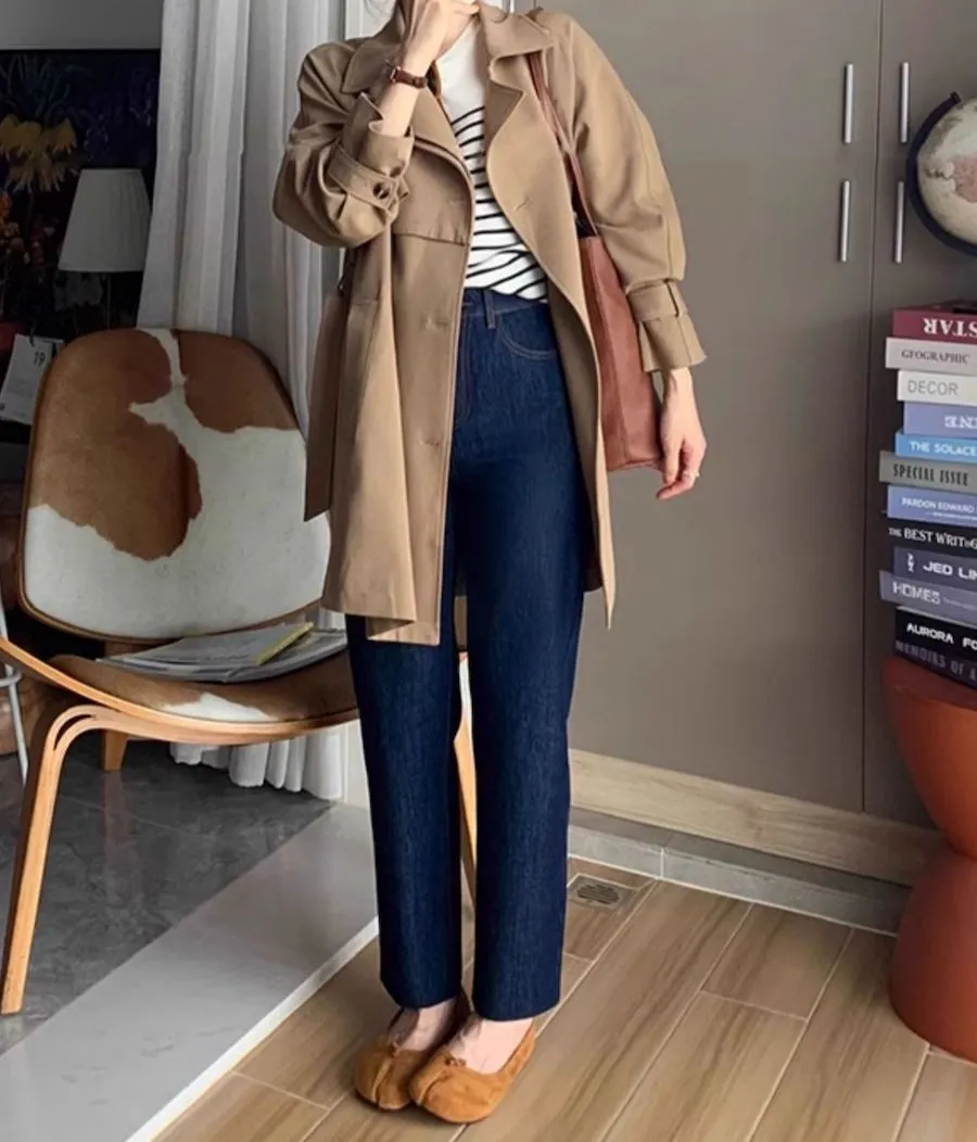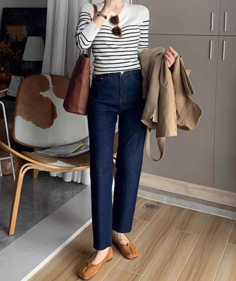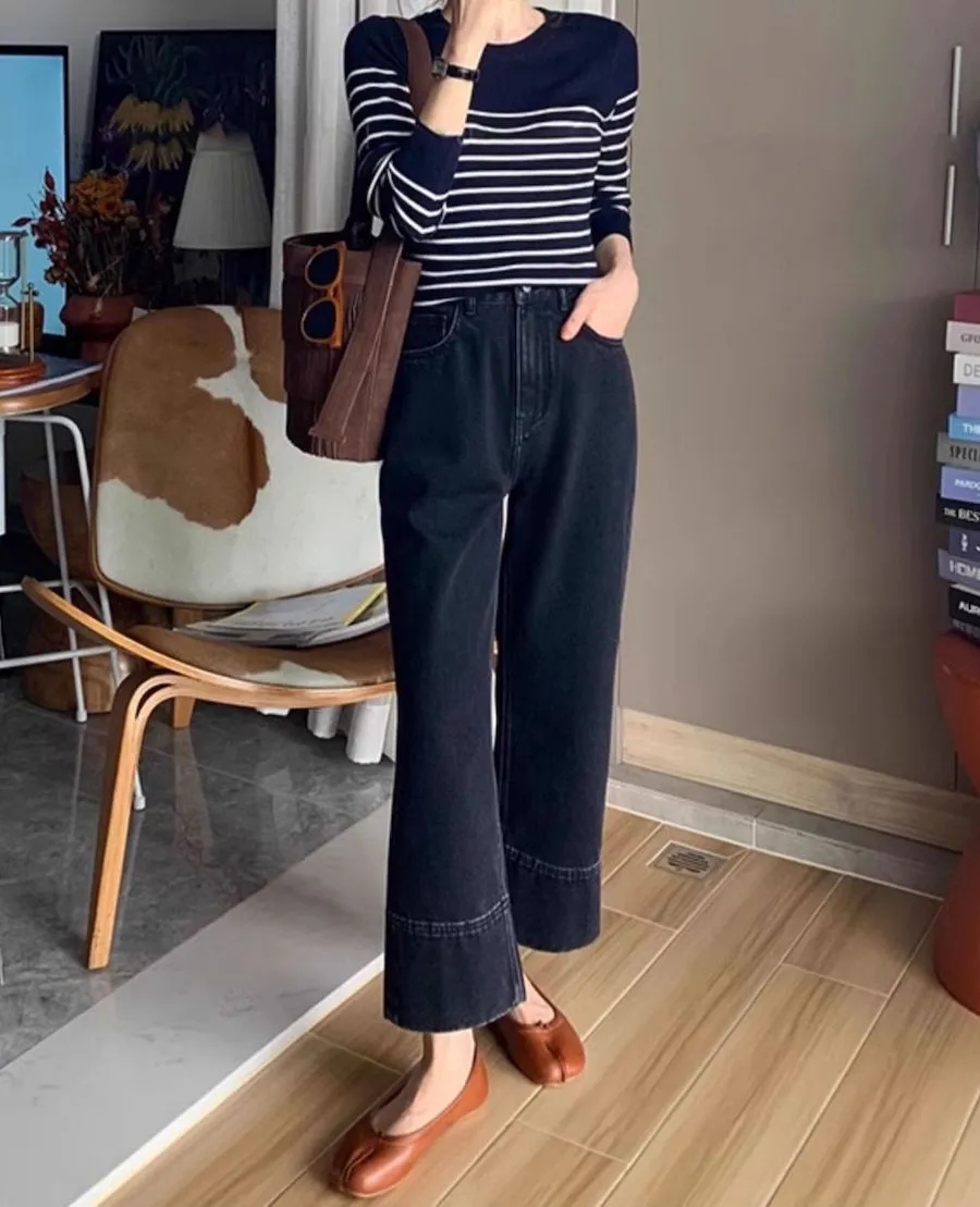 BF240310 時髦法棍小直筒牛仔褲 深藍色
