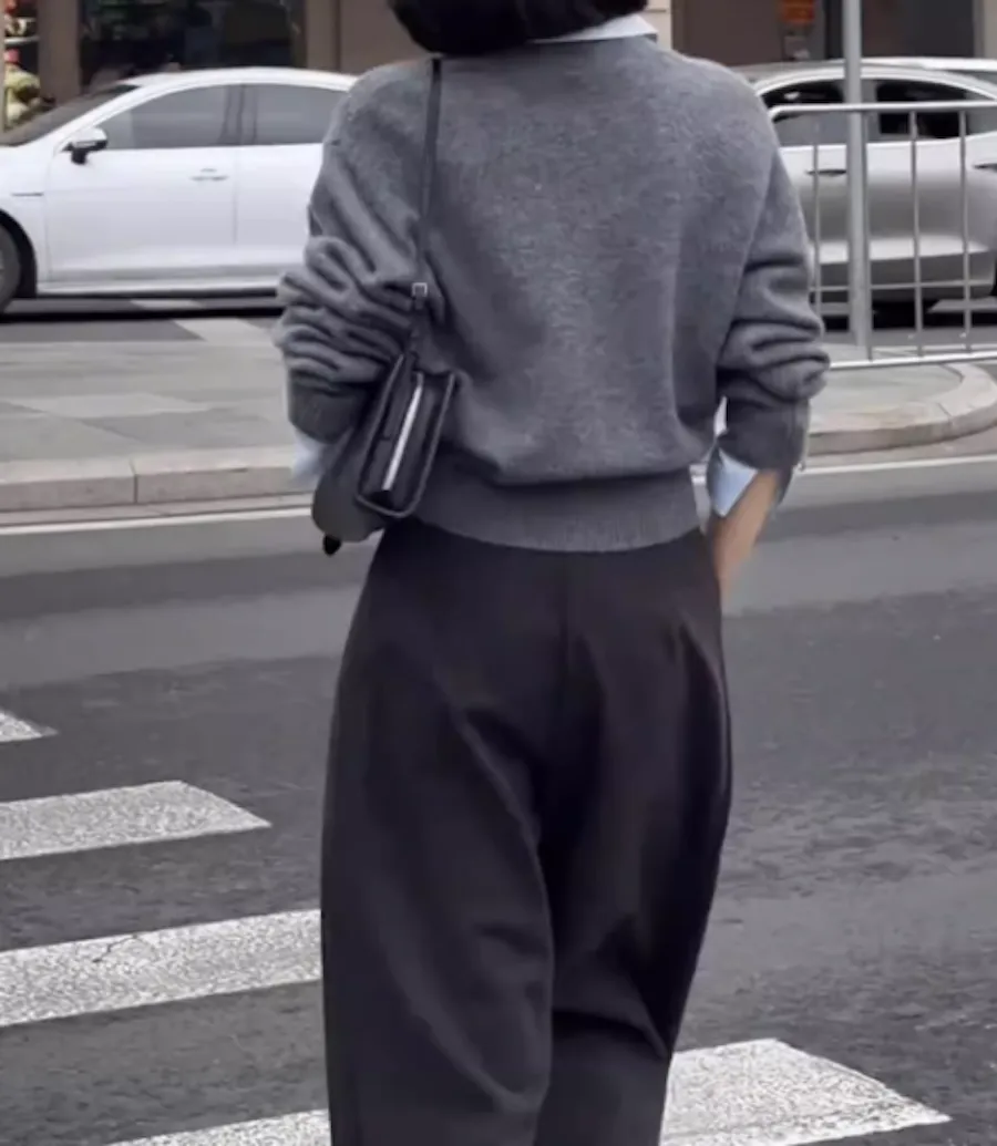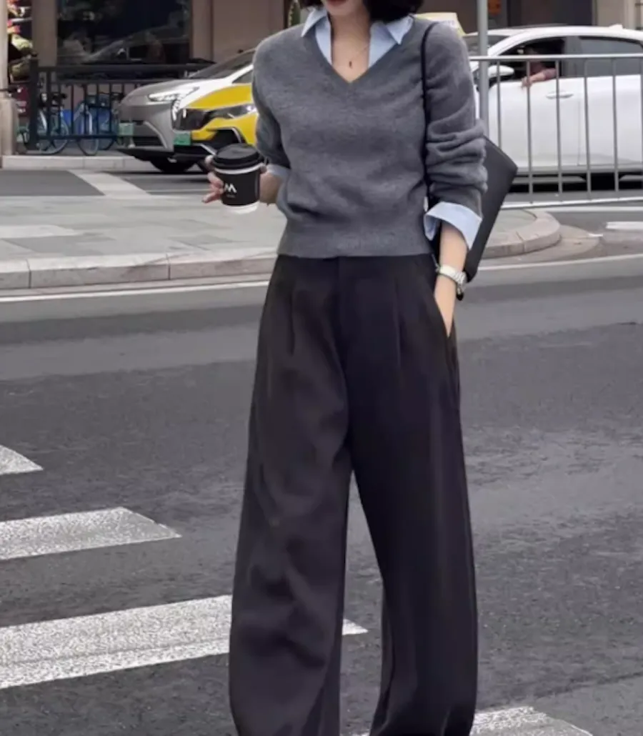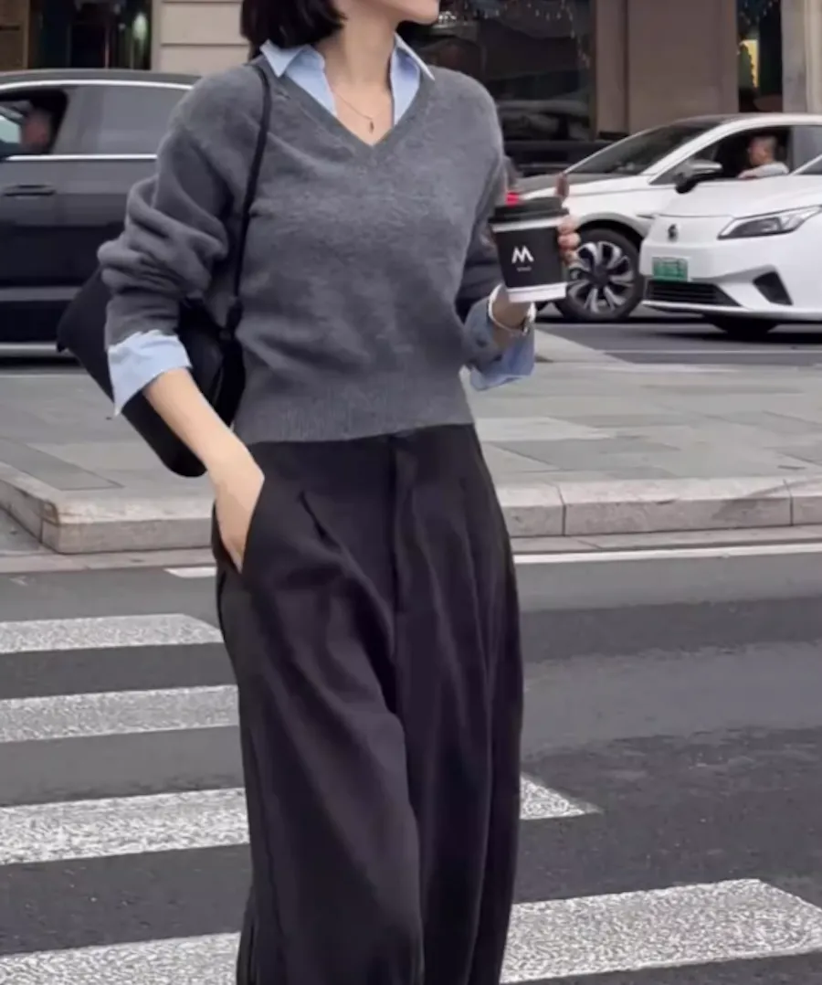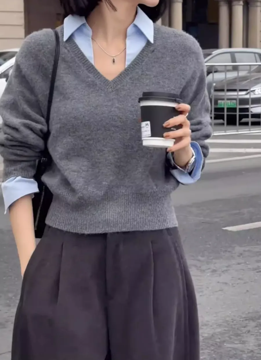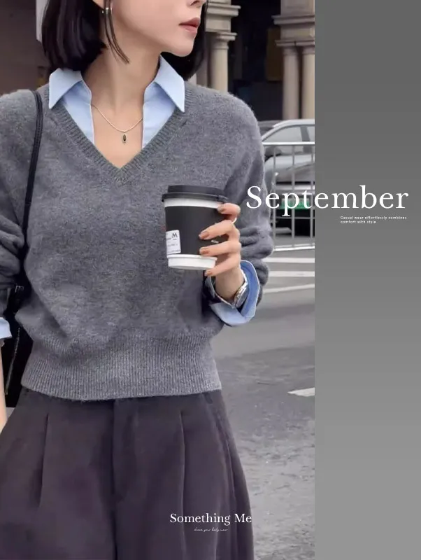 TF240926 別緻設計感假兩件襯衫領針織上衣