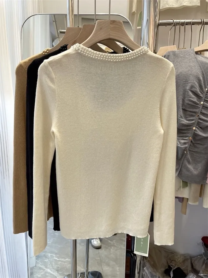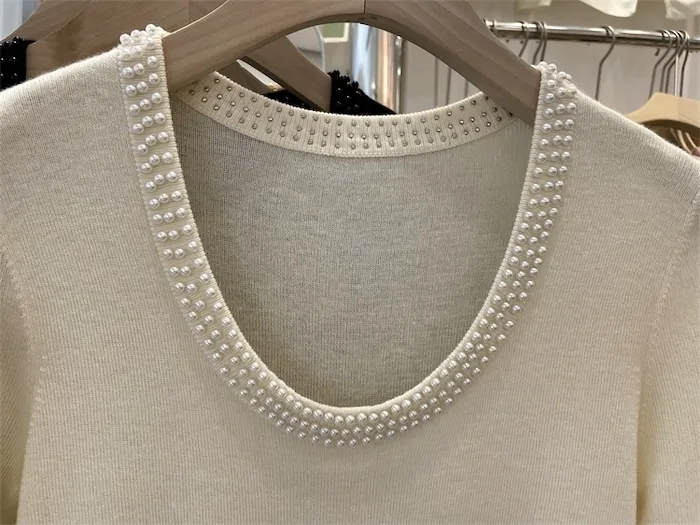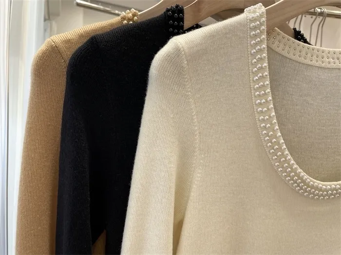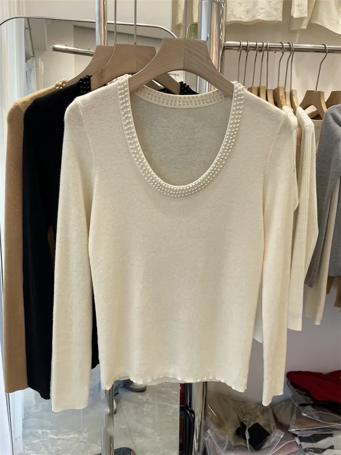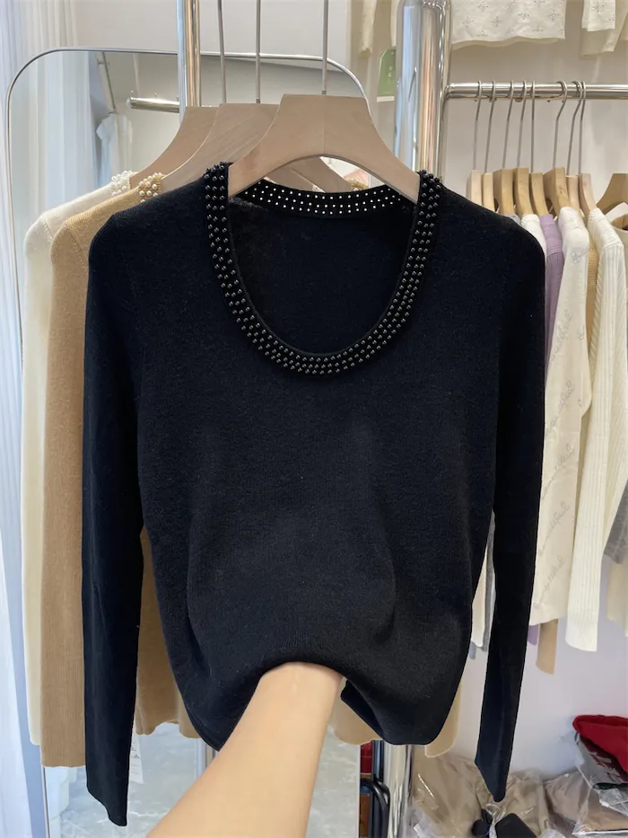 TF241101 璀璨釘珠.U領設計感顯瘦針織衫