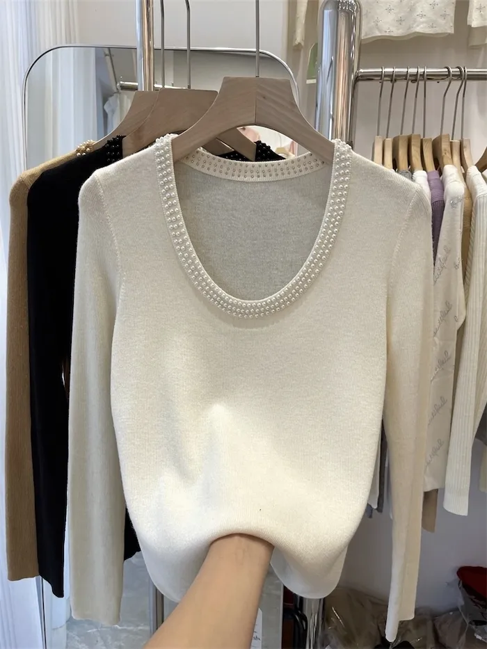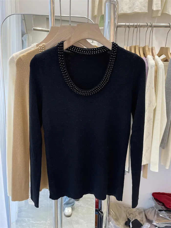 璀璨釘珠.U領設計感顯瘦針織衫 3色