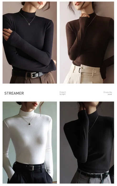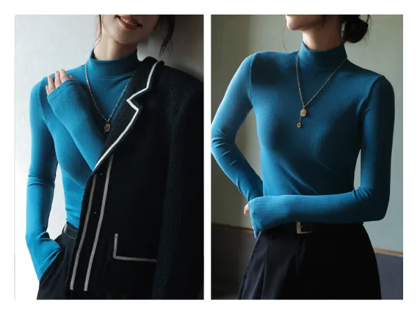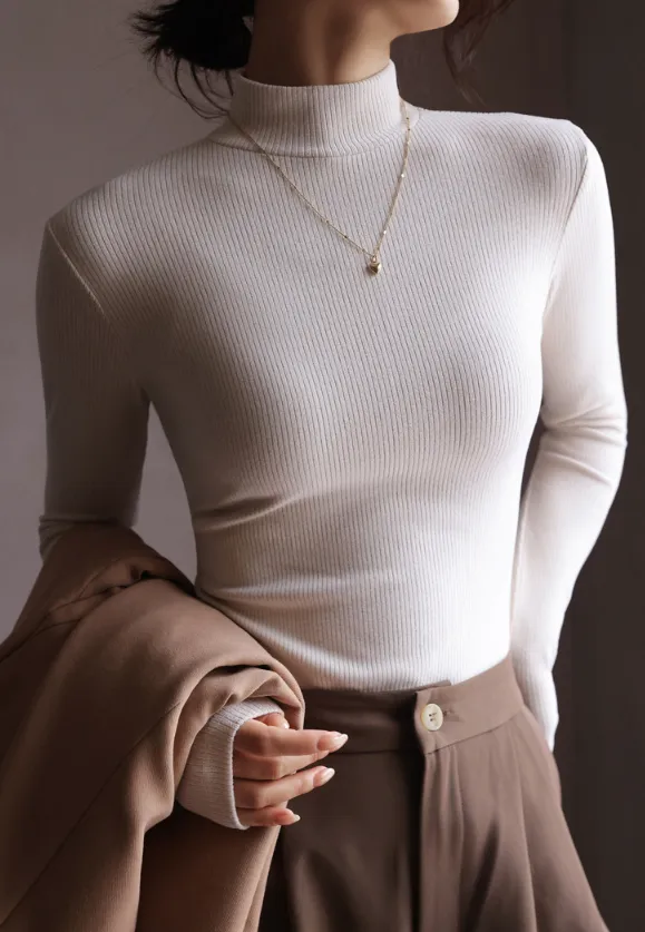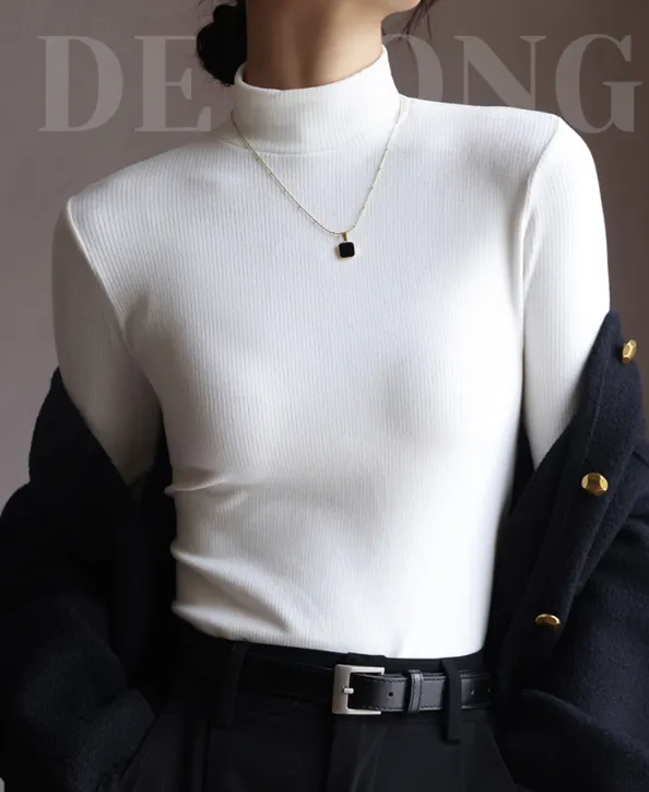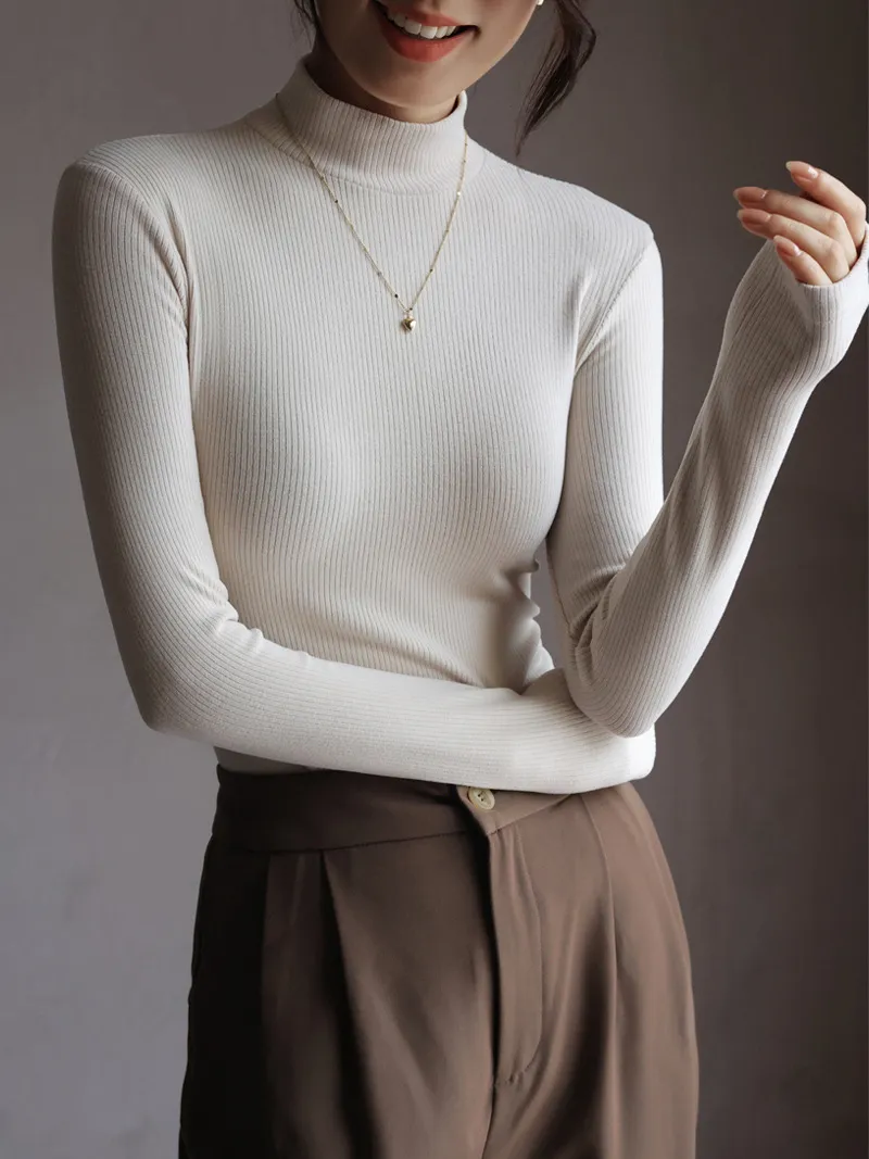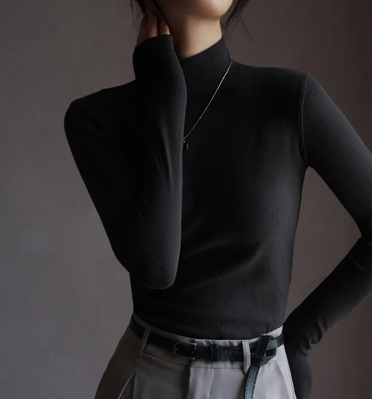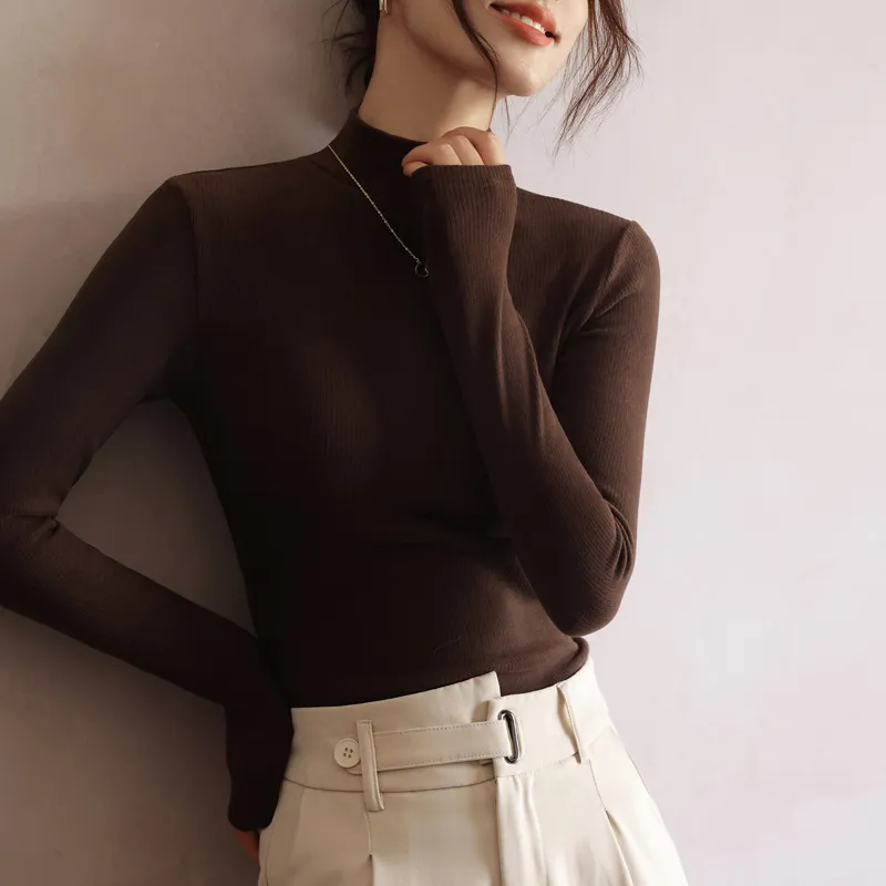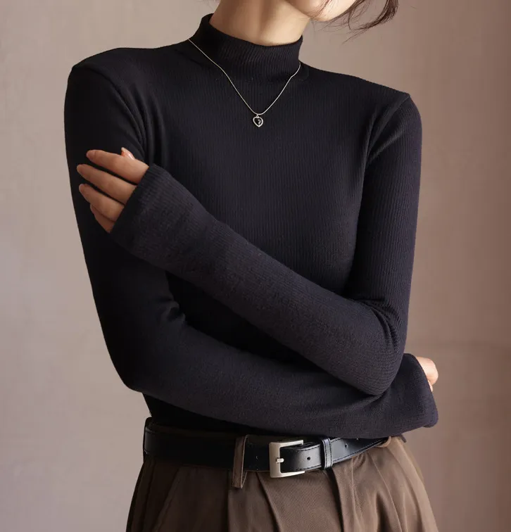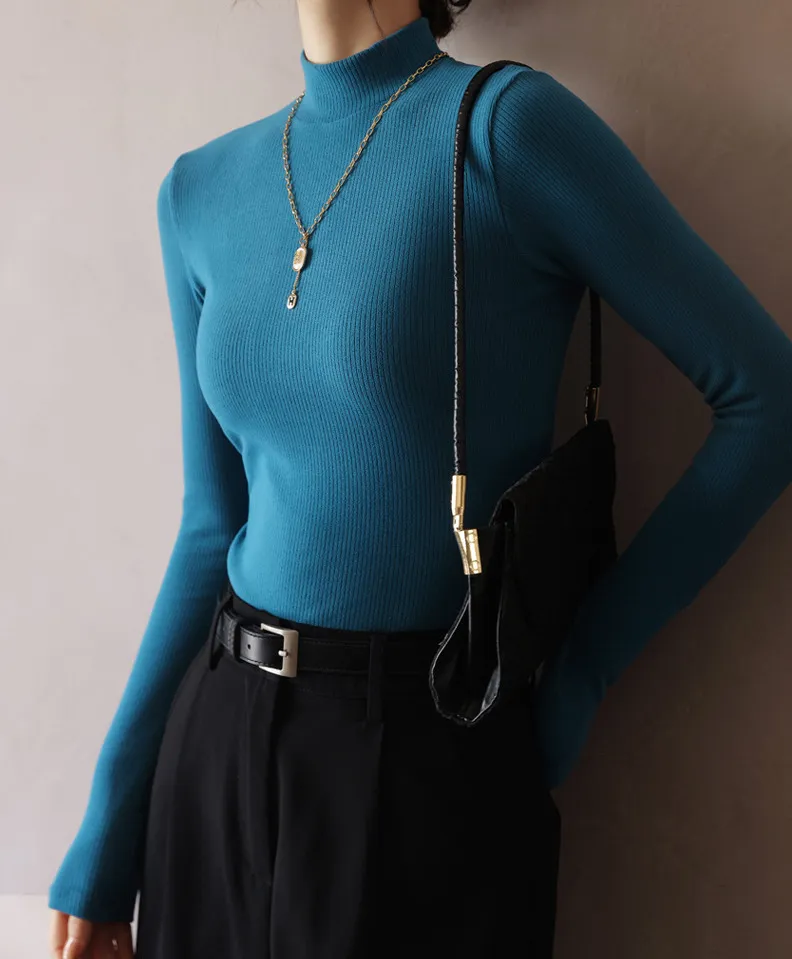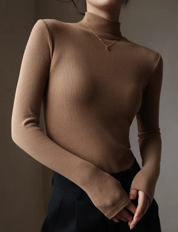 德絨柔暖.秋冬螺紋半高領修身上衣 7色