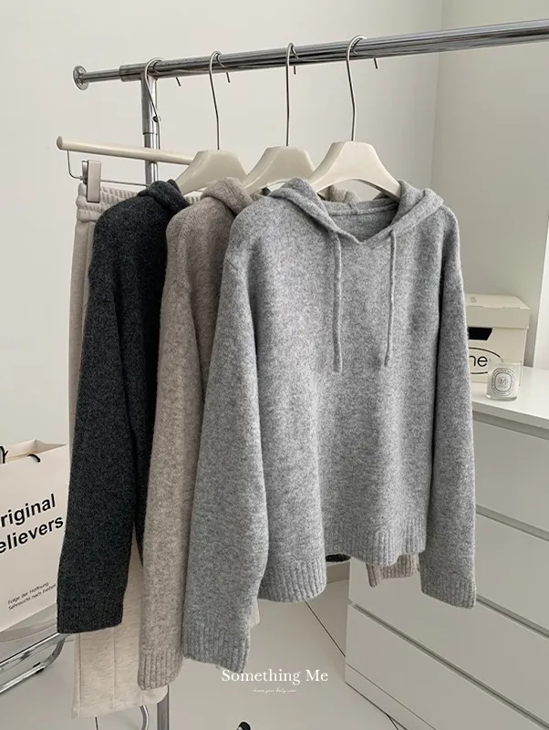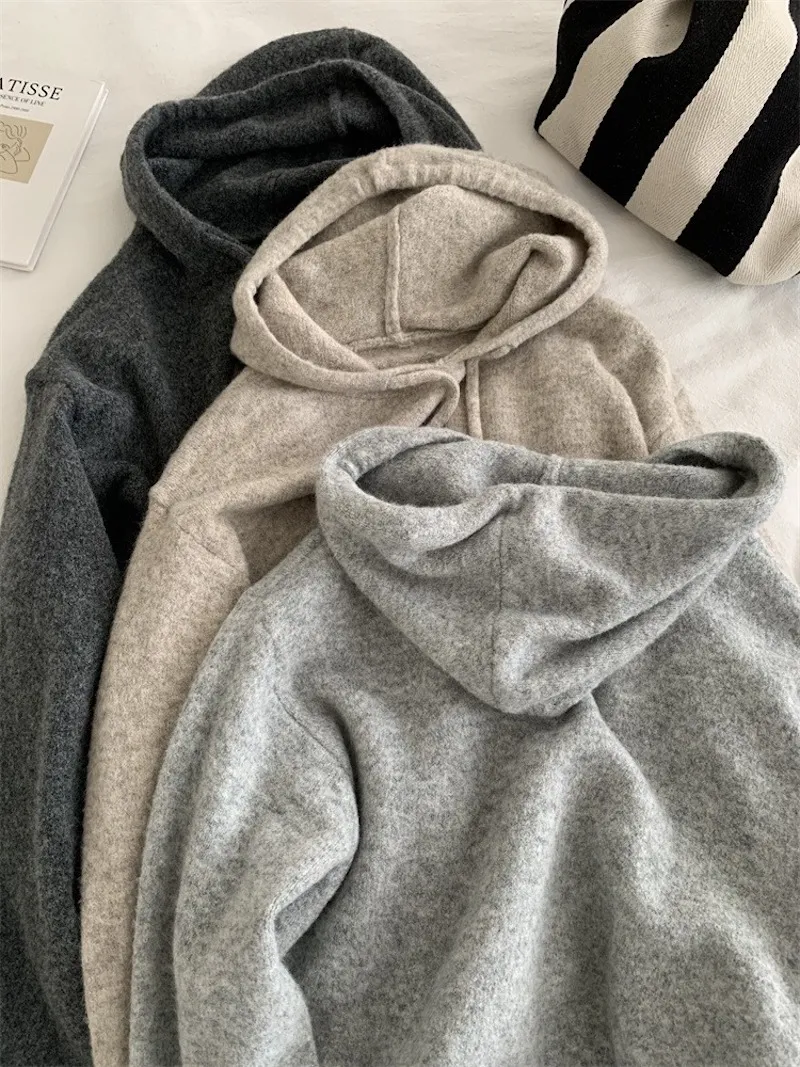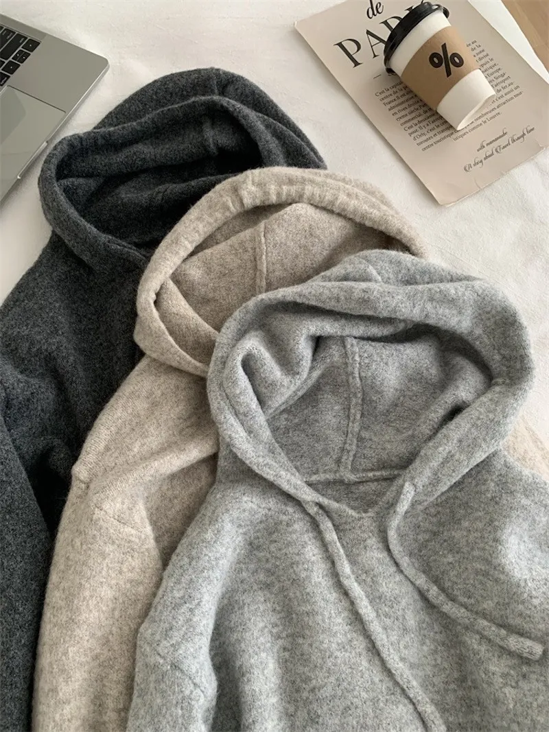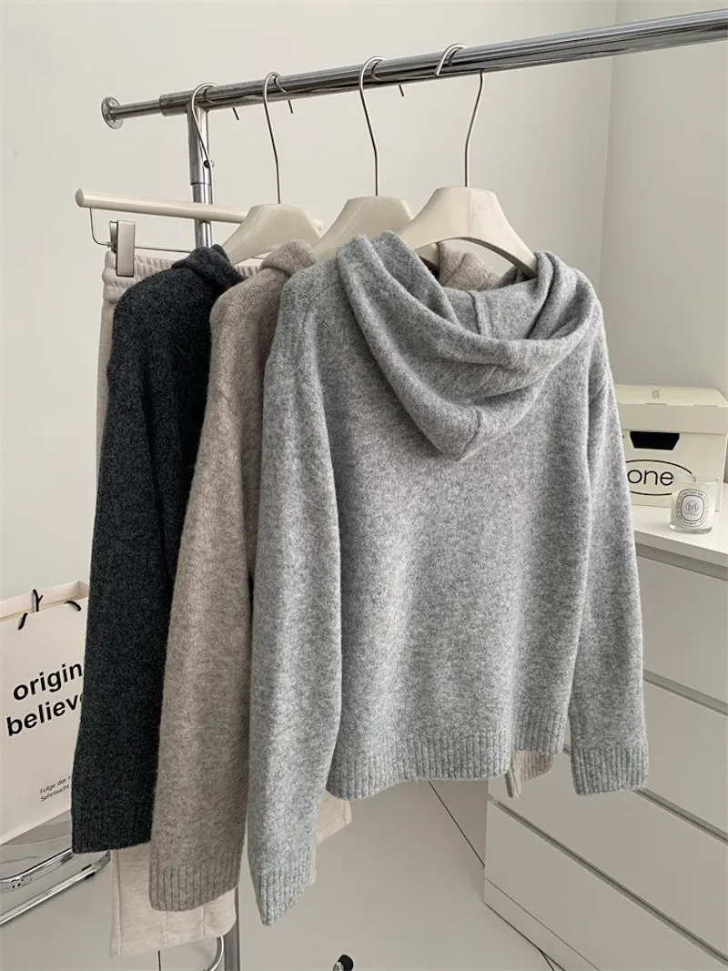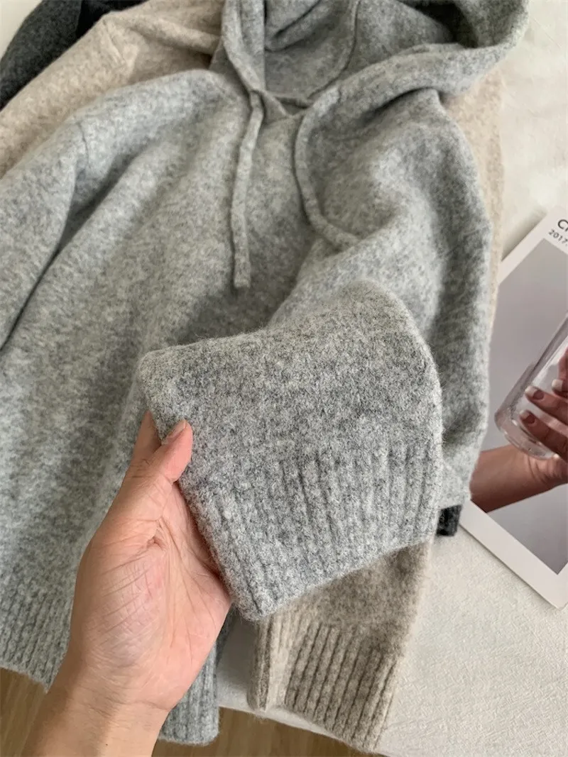 暖霧日常.慵懶隨心連帽針織毛衣 3色