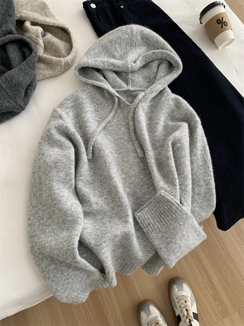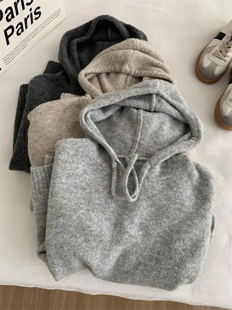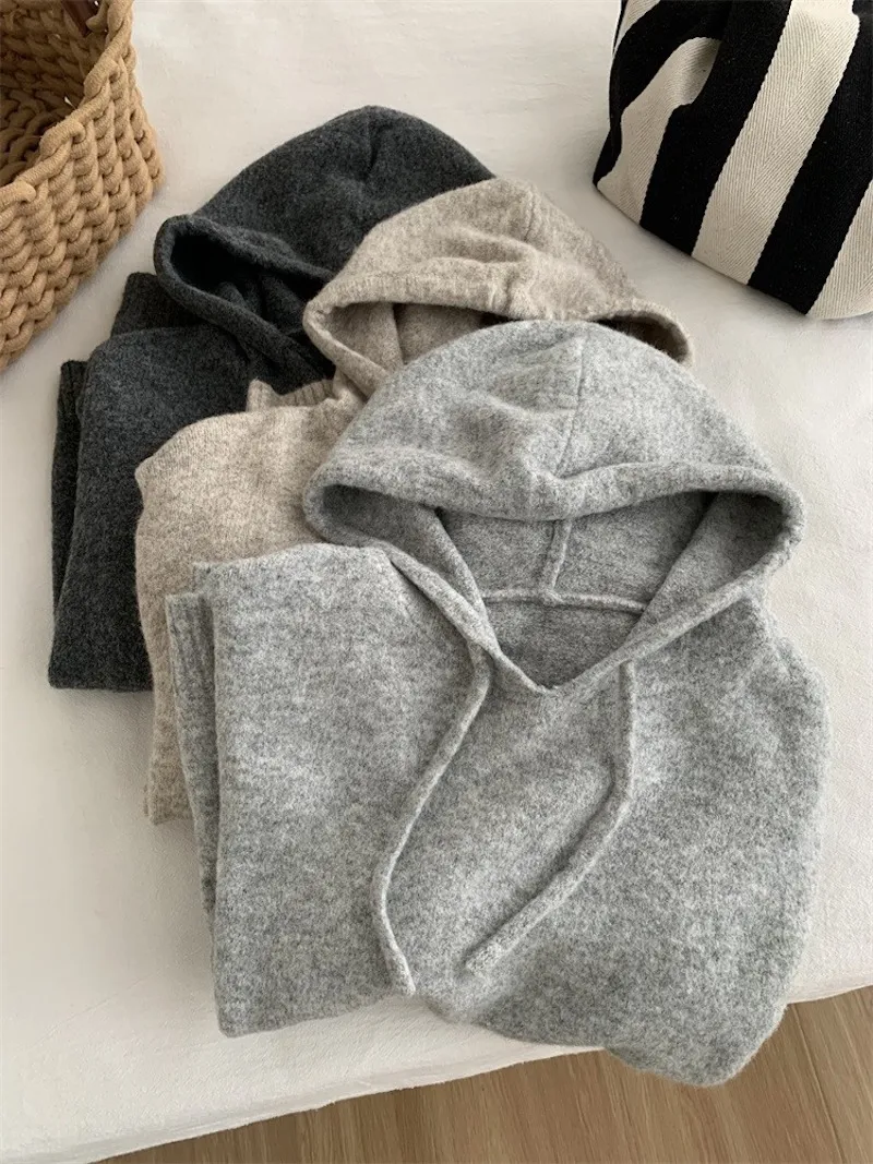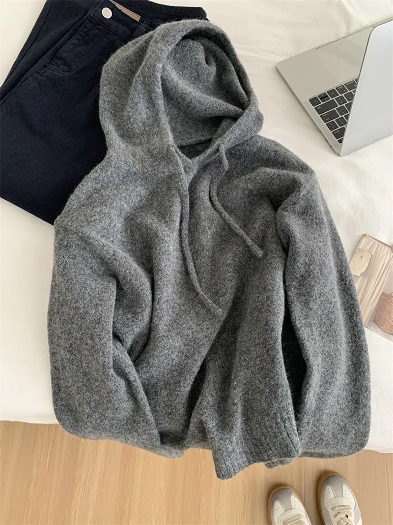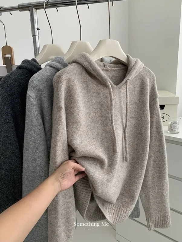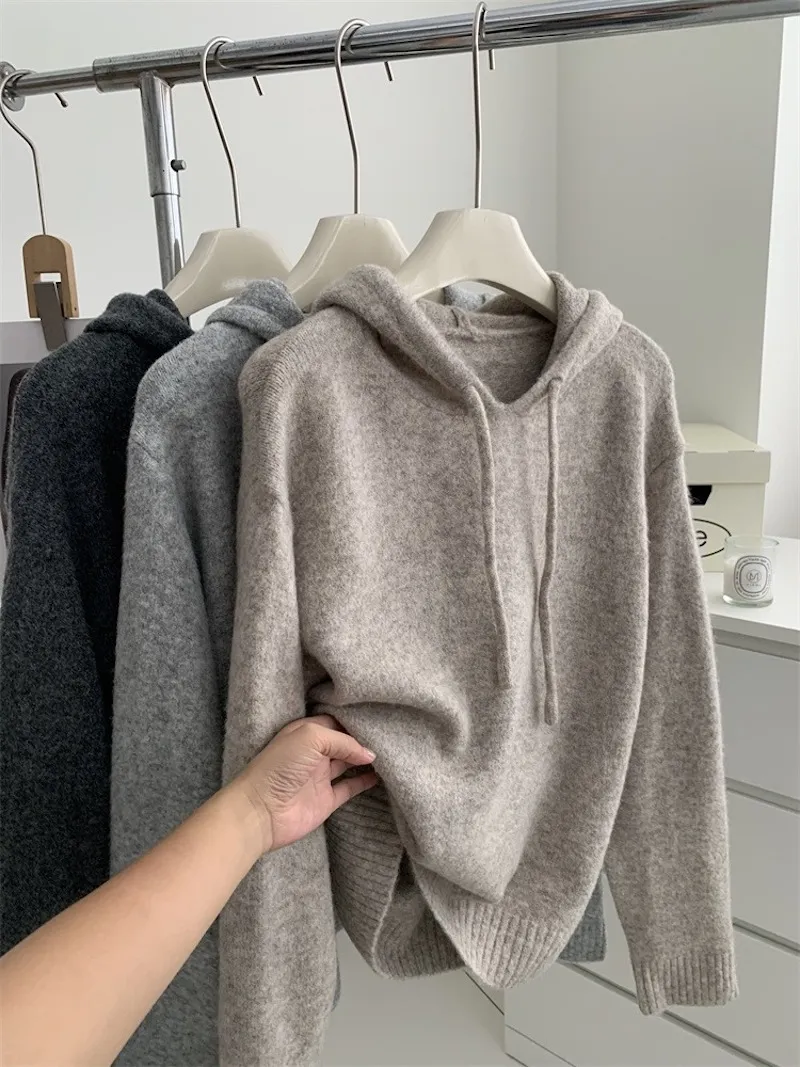 暖霧日常.慵懶隨心連帽針織毛衣 3色