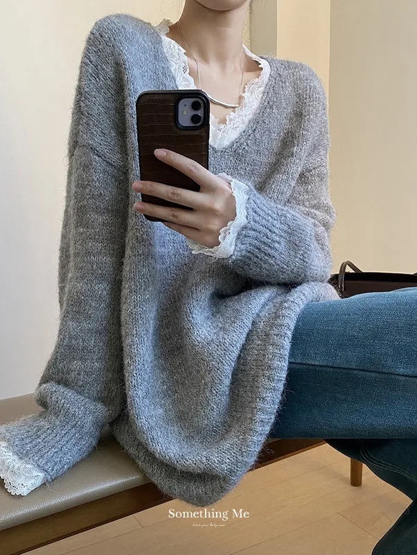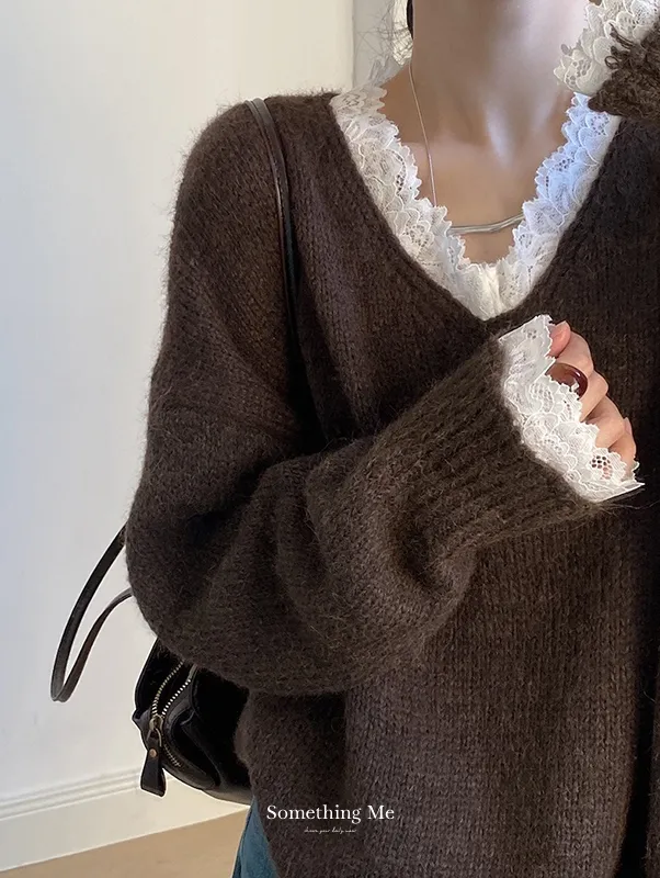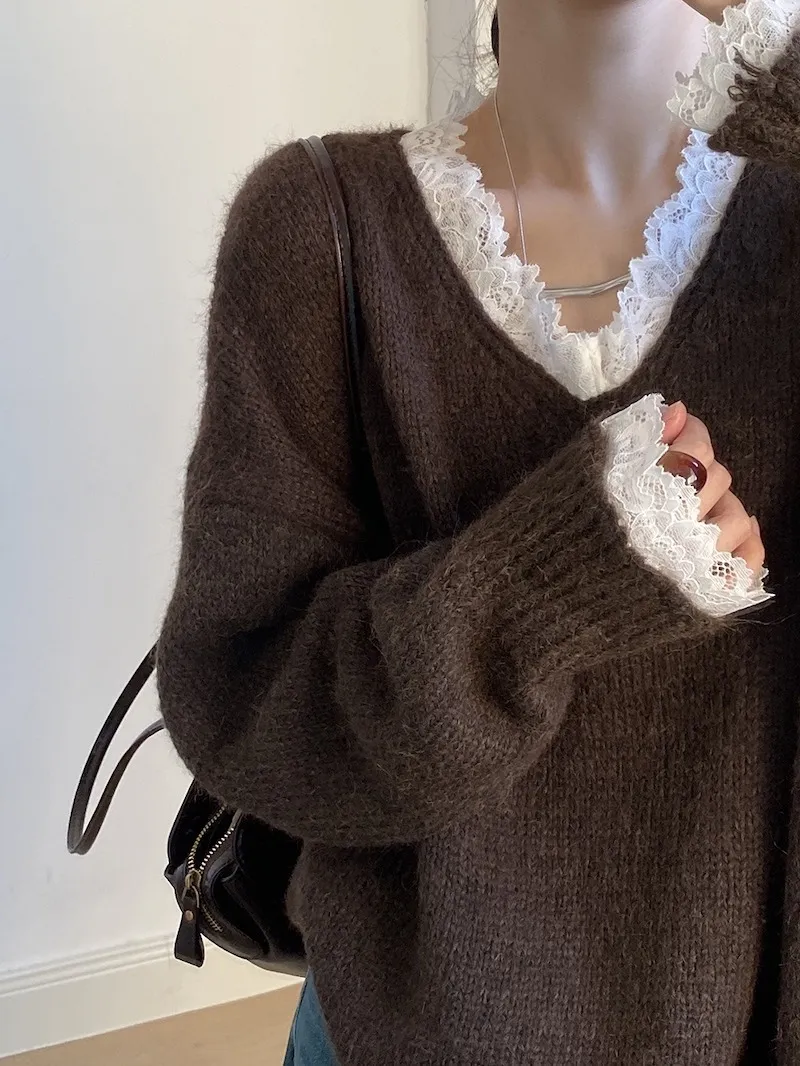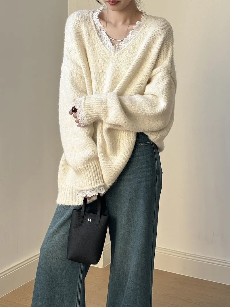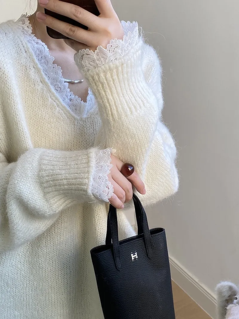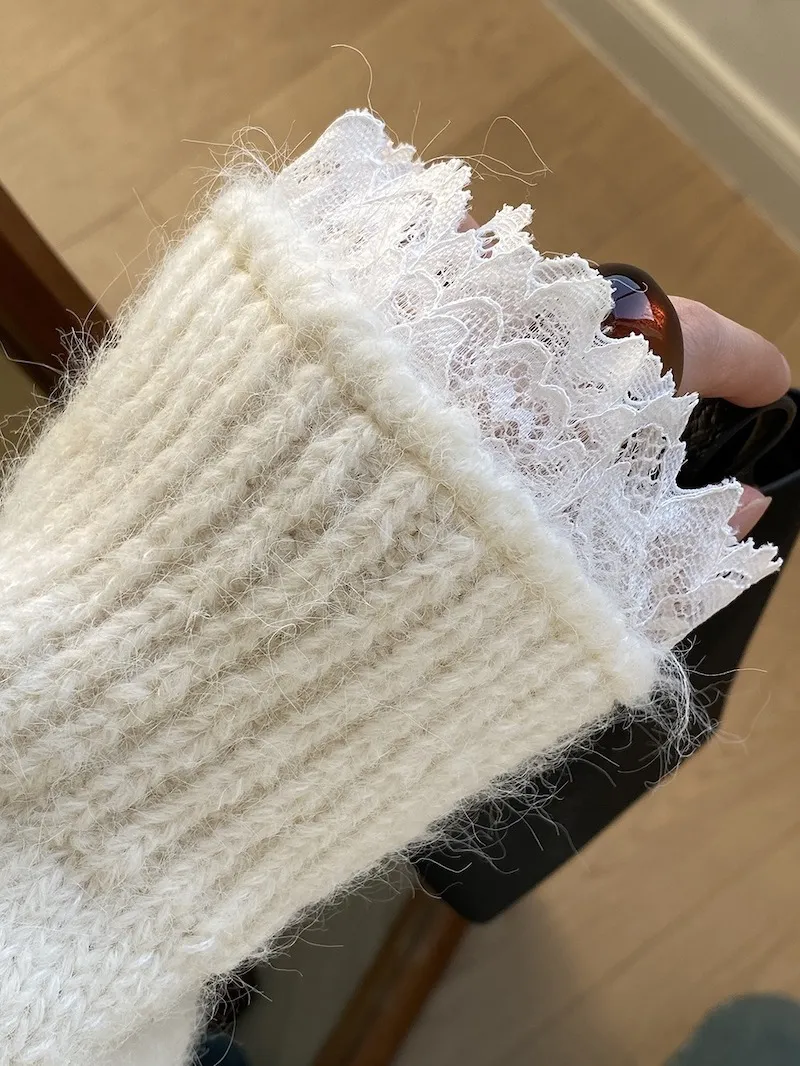 暖冬浪漫.蕾絲點綴軟糯針織毛衣