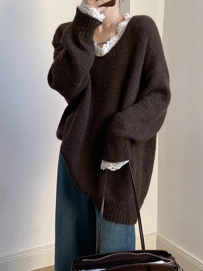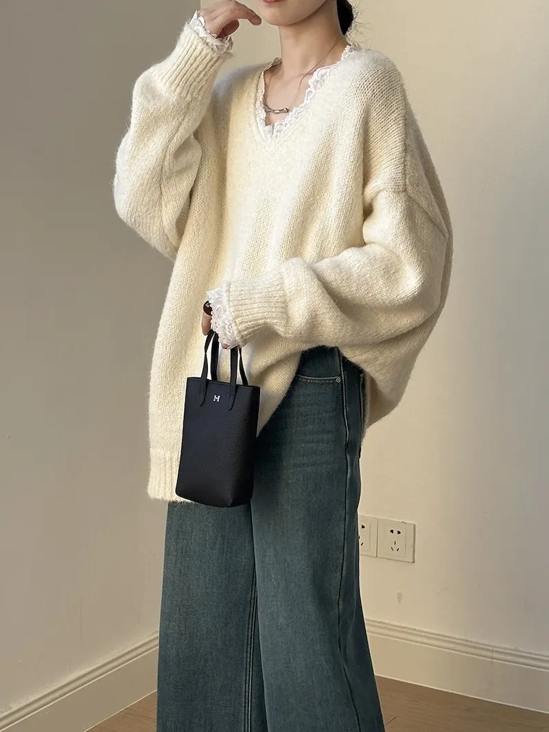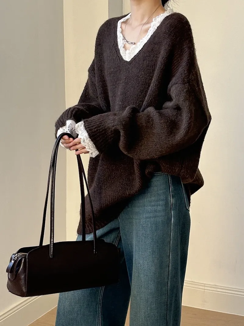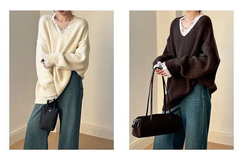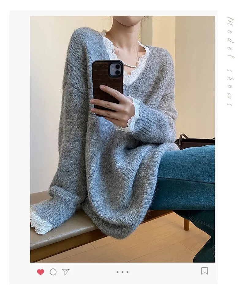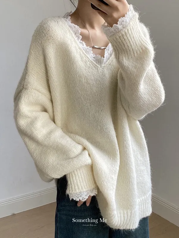 暖冬浪漫.蕾絲點綴軟糯針織毛衣