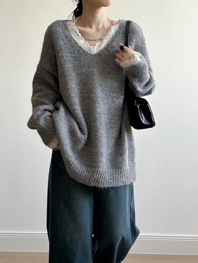 暖冬浪漫.蕾絲點綴軟糯針織毛衣 3色