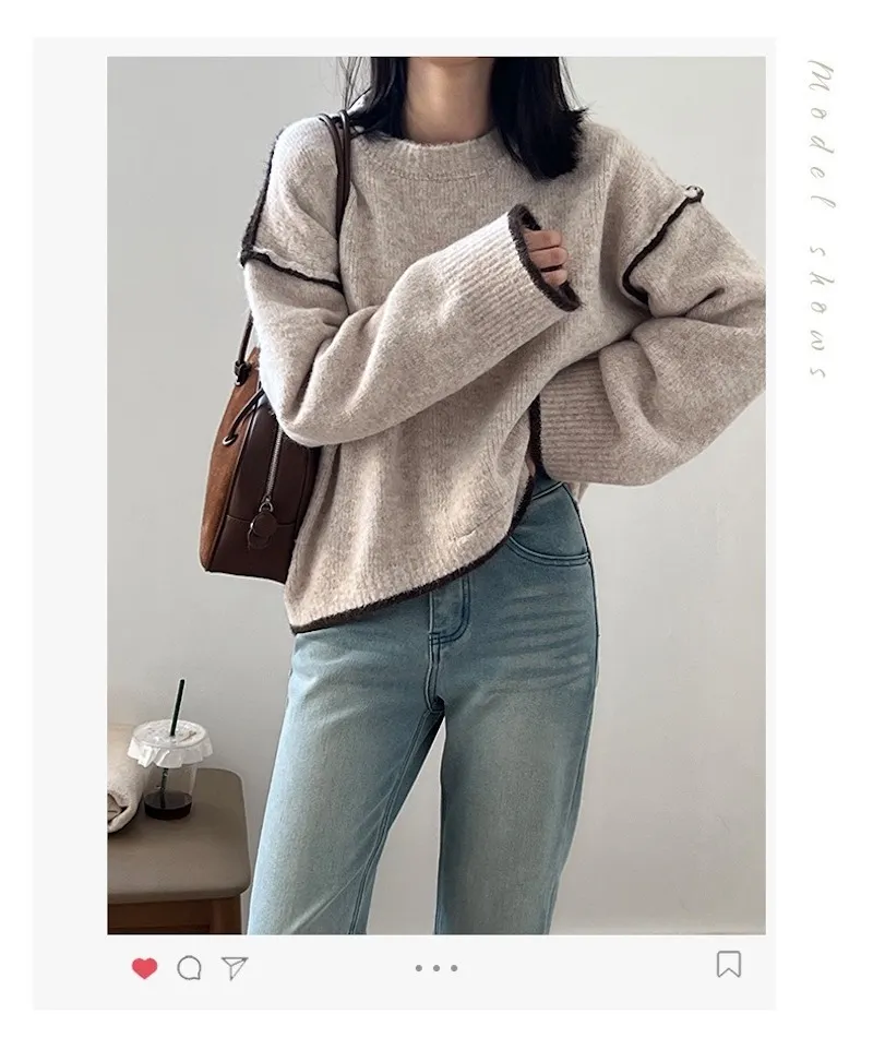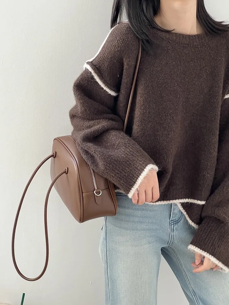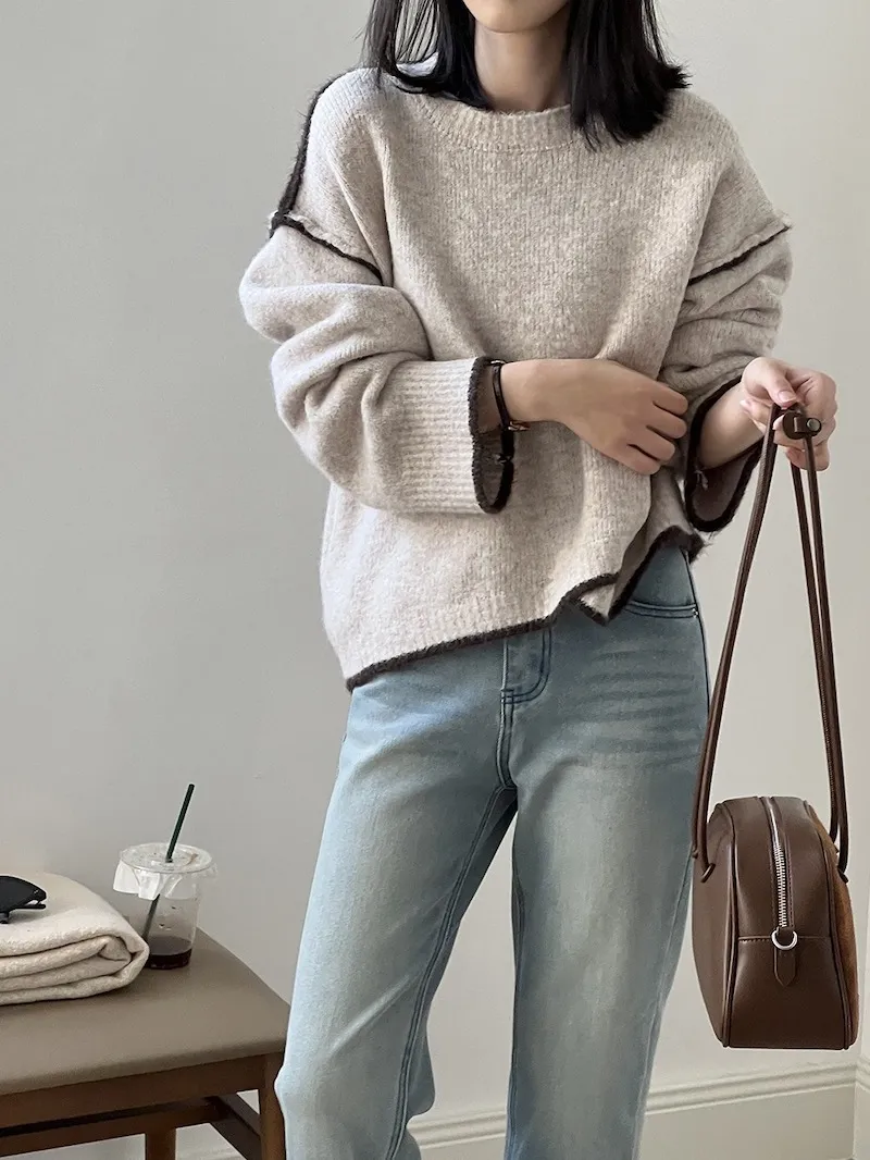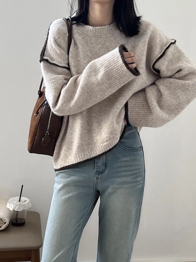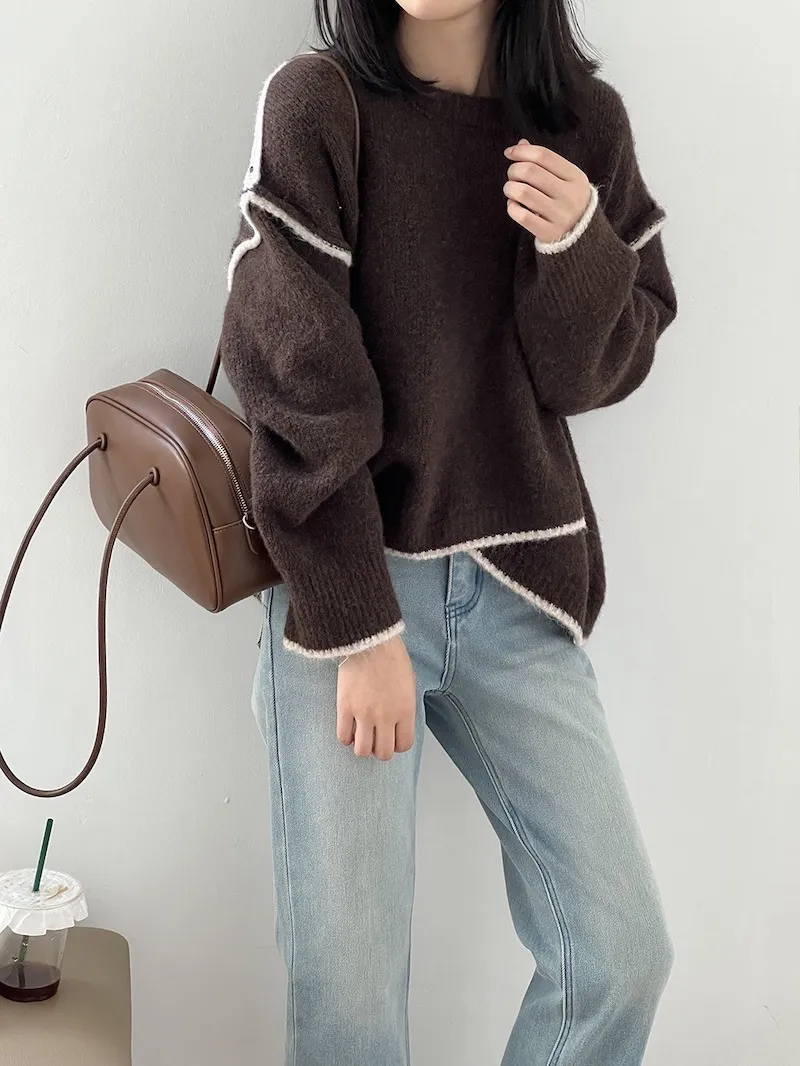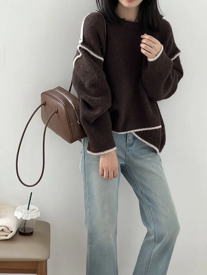 溫柔日常.不規則撞色落肩針織毛衣 3色