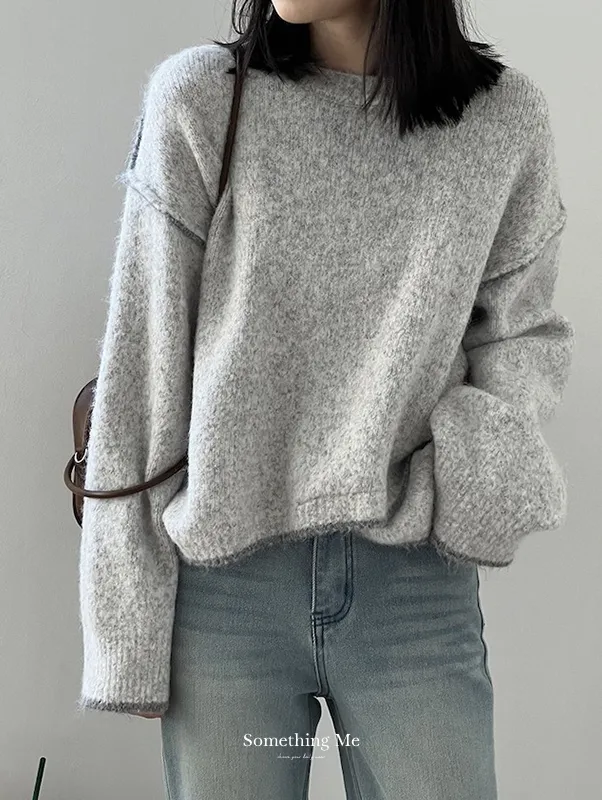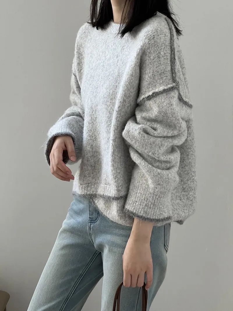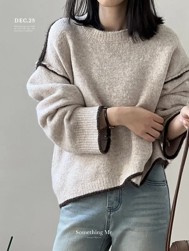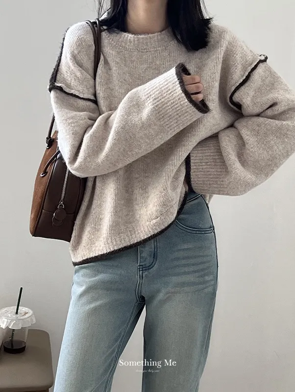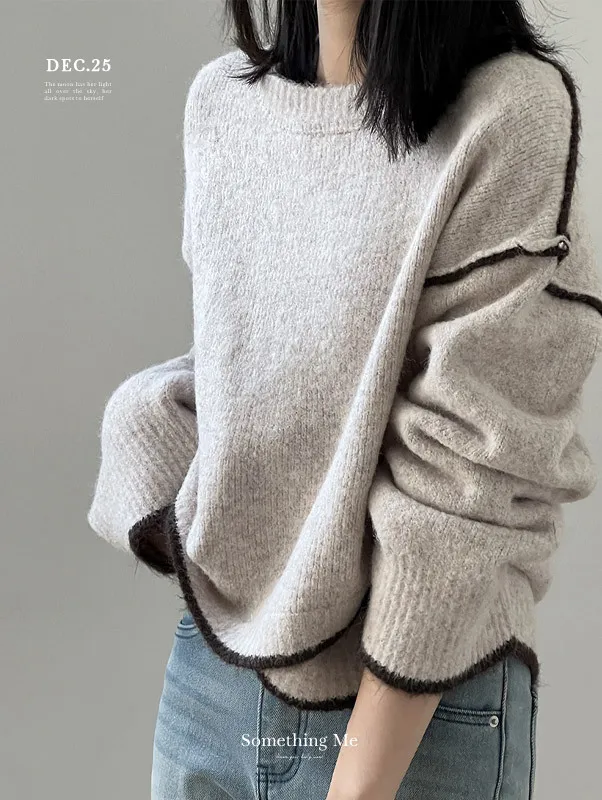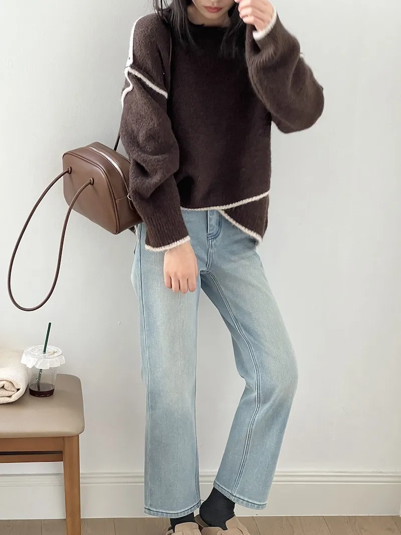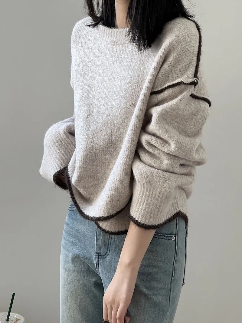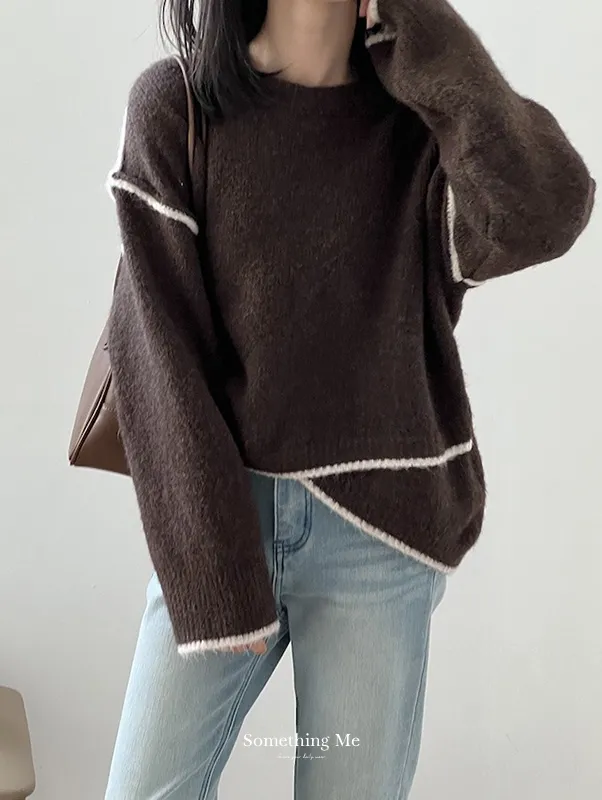 溫柔日常.不規則撞色落肩針織毛衣 3色