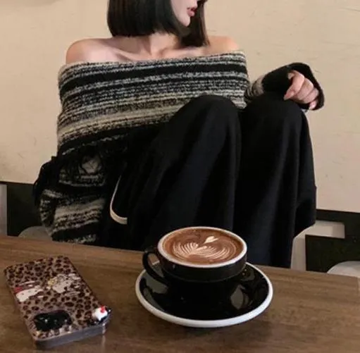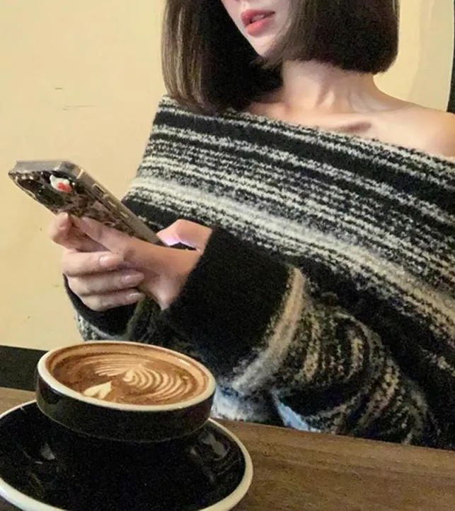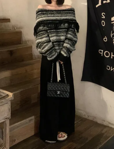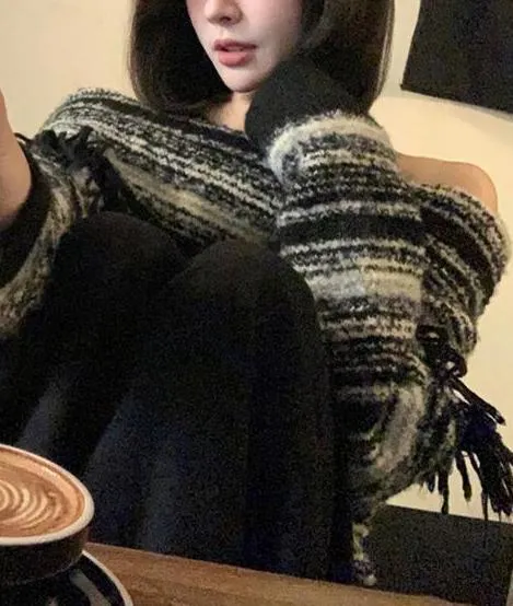 TF241229 都會漸層.大翻領漸層撞色毛衣