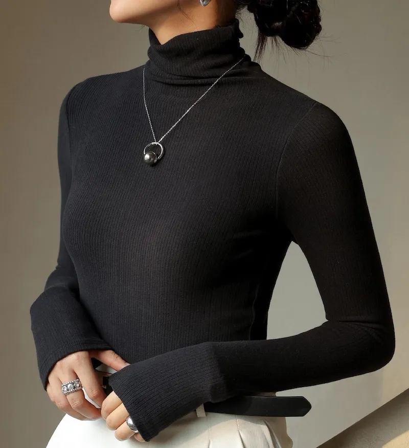 細緻的坑條紋理完美勾勒曲線高領設計優雅又保暖