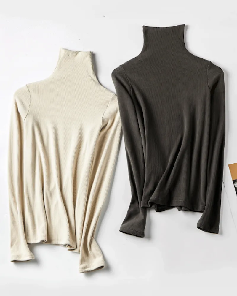 德絨柔暖.堆堆領羅紋修身上衣 6色