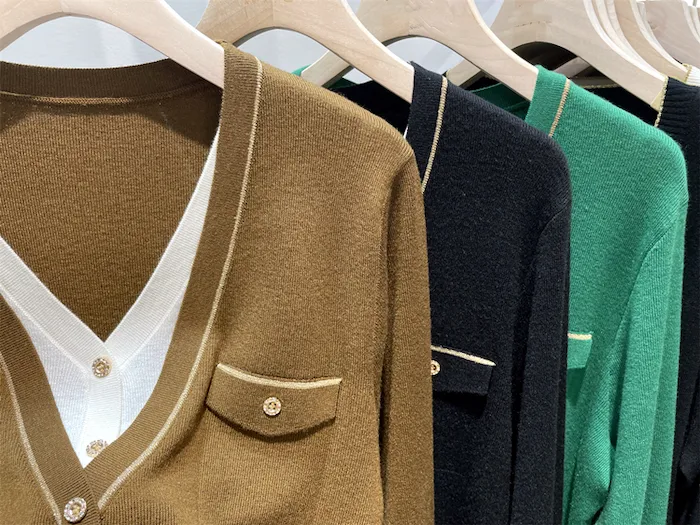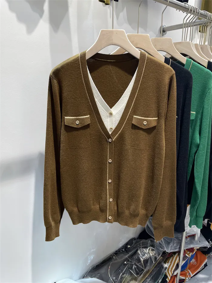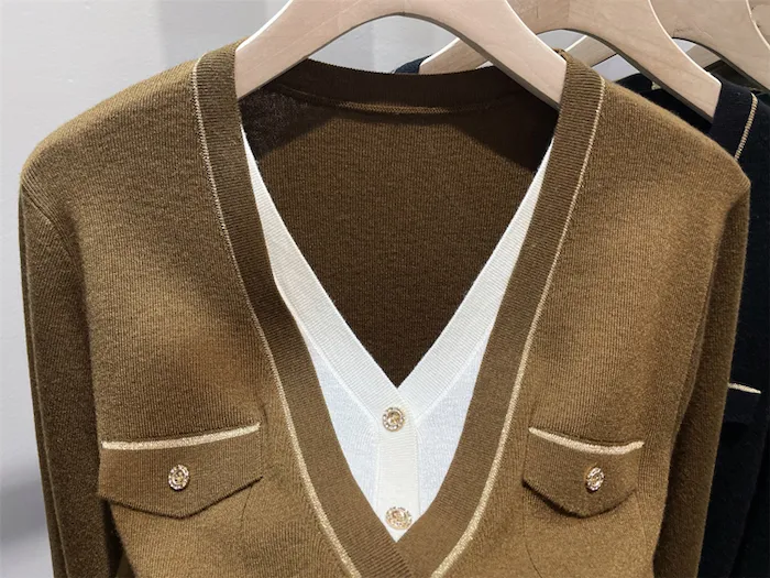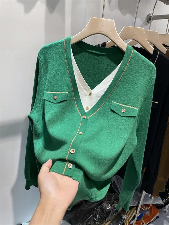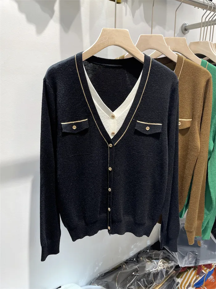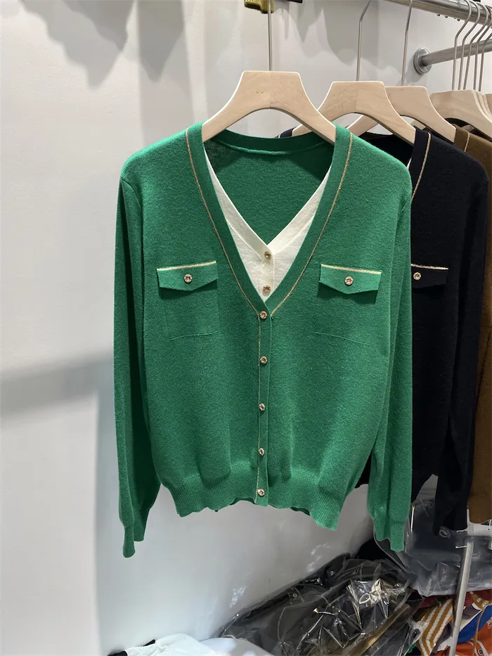 香榭大道.優雅假兩件V領冰絲針織衫 3色