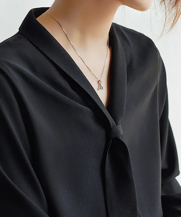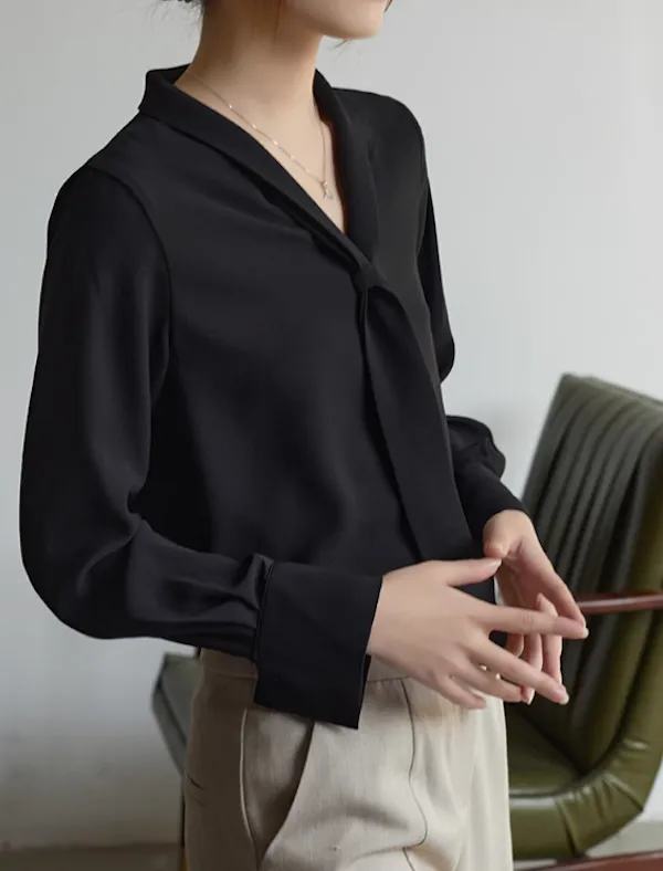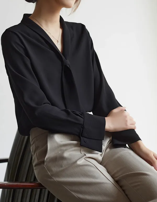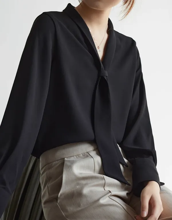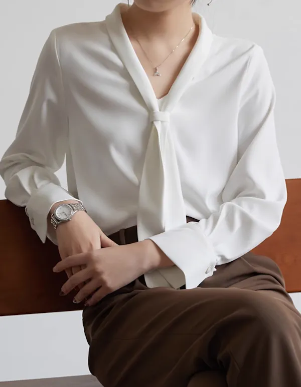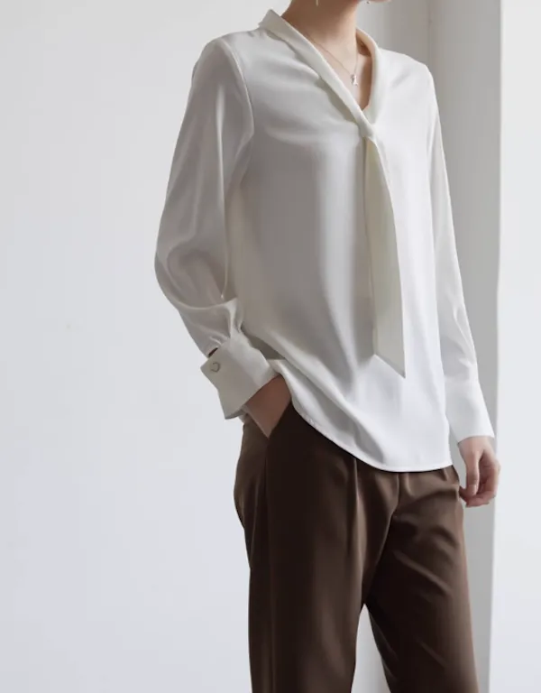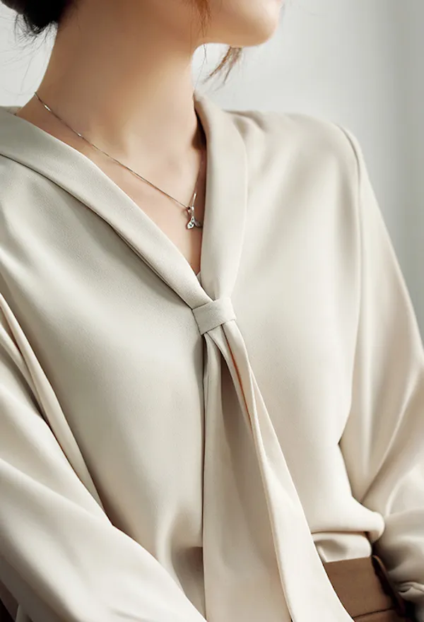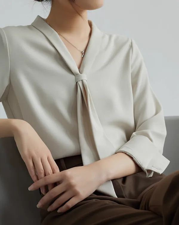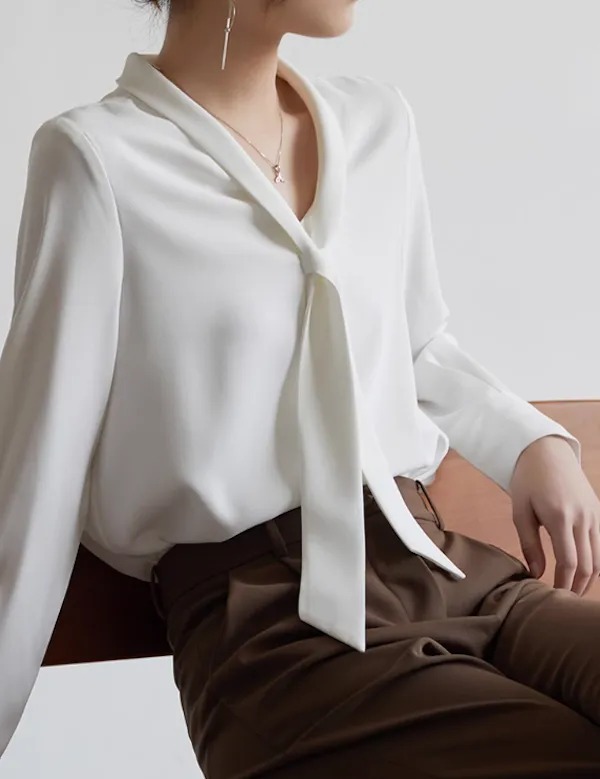 咖啡時光.輕奢飄帶V領氣質雪紡襯衫 3色