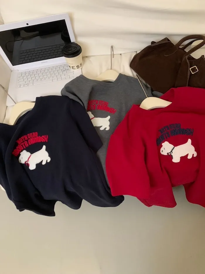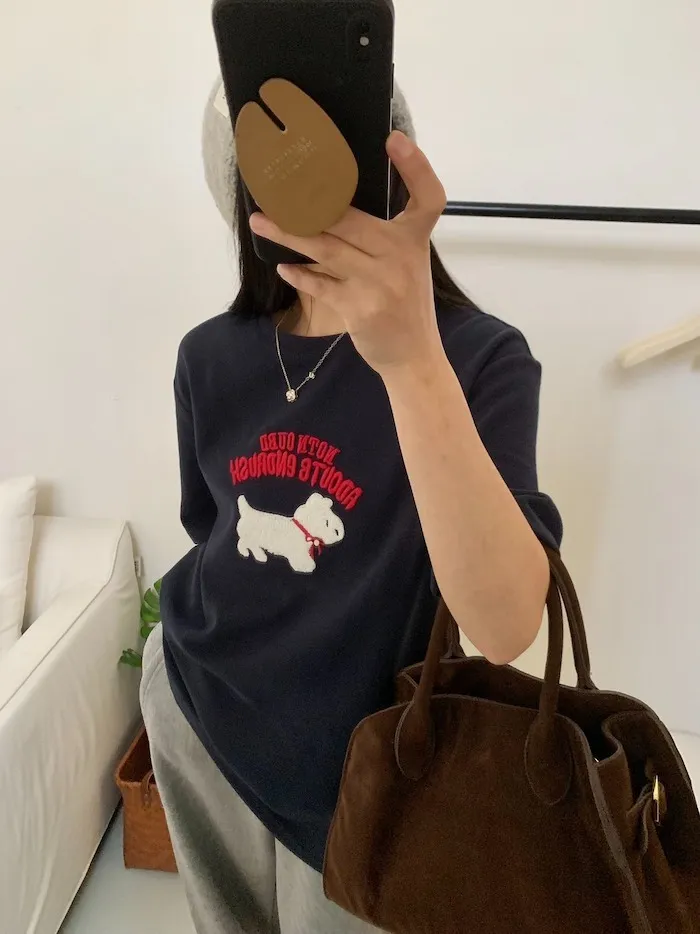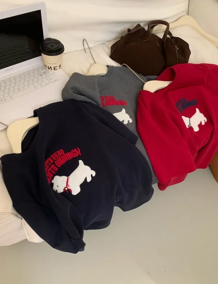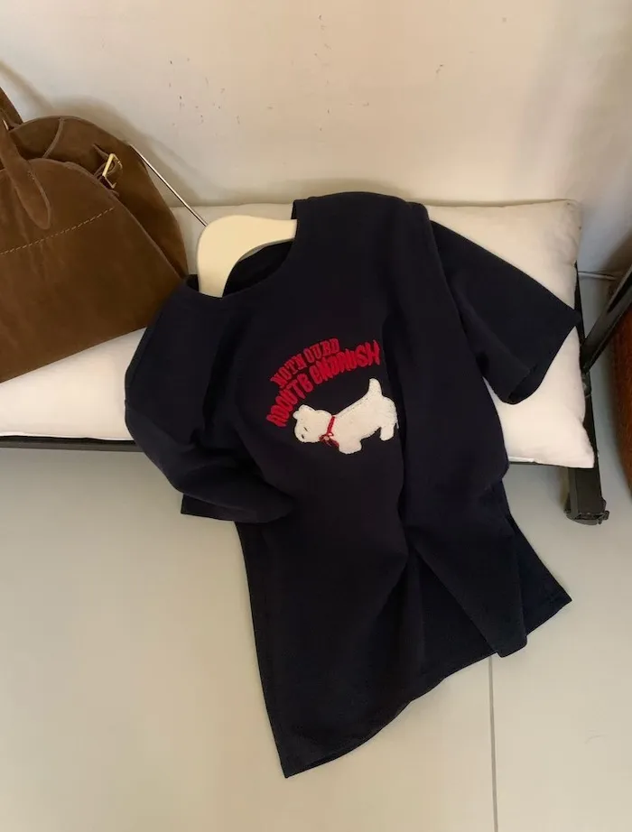 可愛的小狗刺繡像是偷偷躲在衣服上的小驚喜
