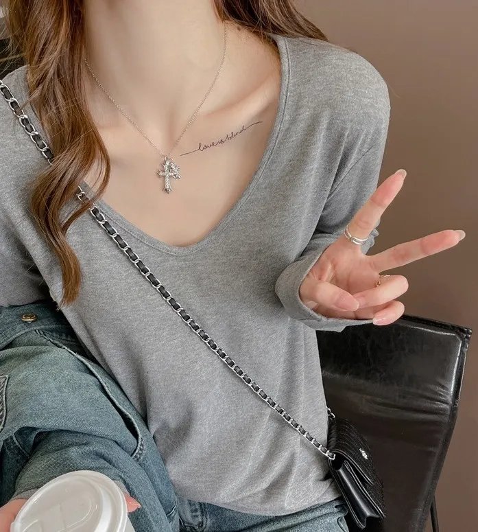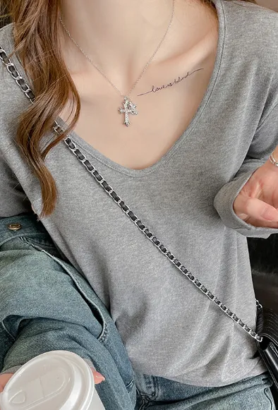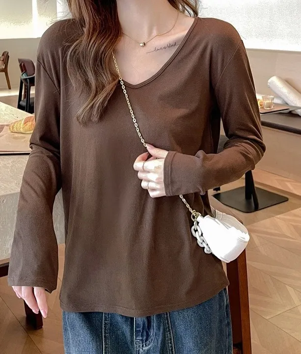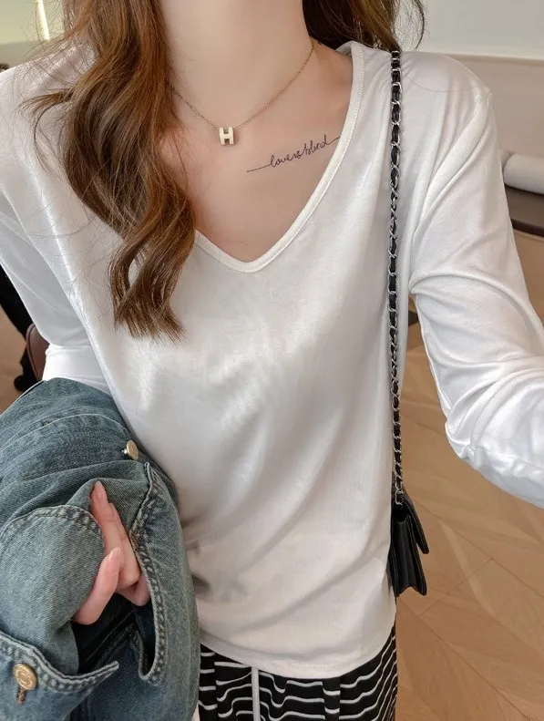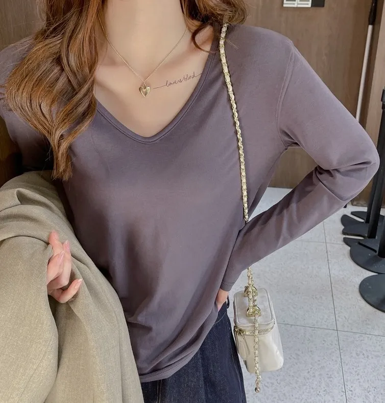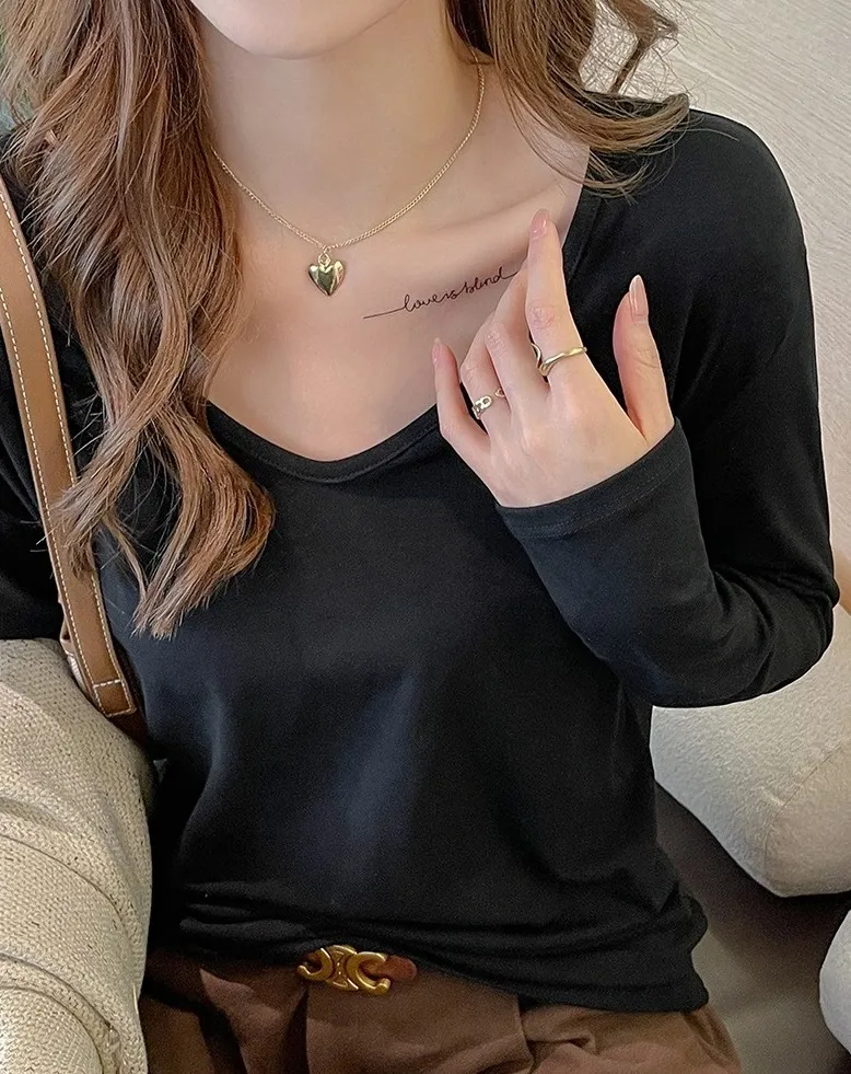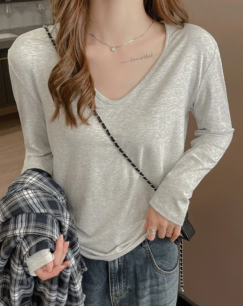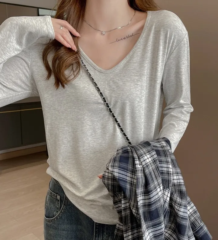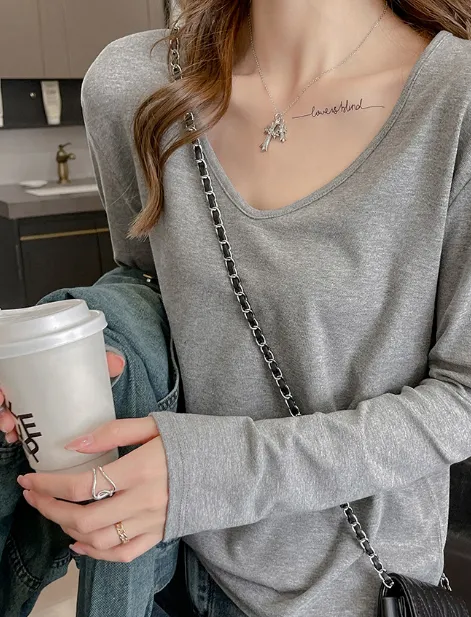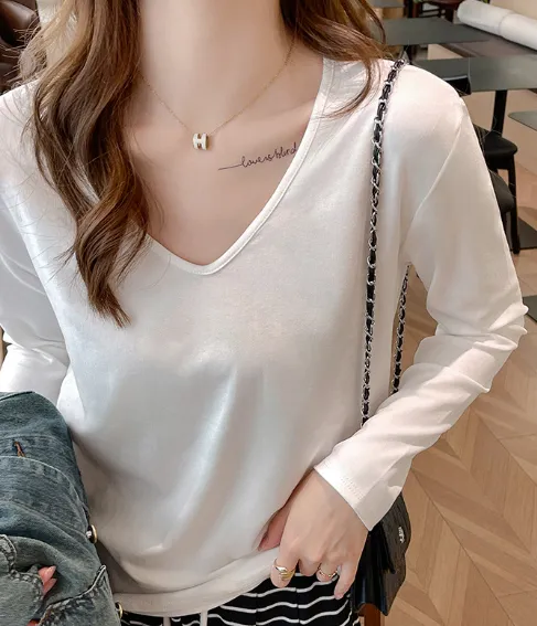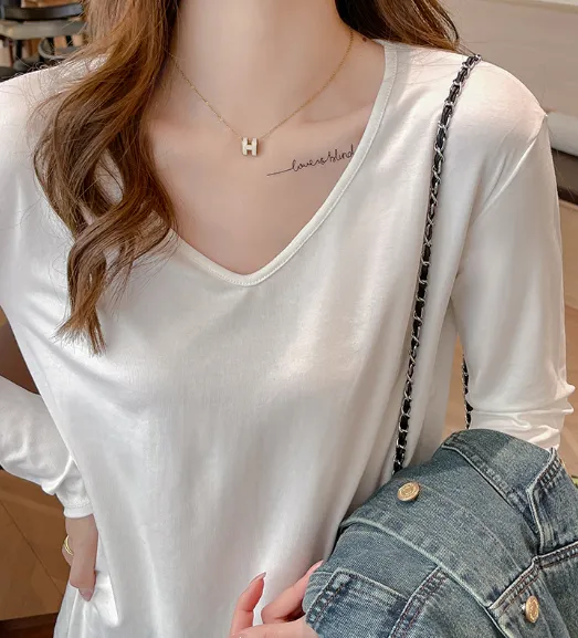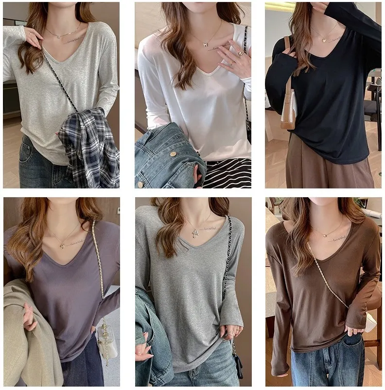 勾勒線條.莫代爾V領柔軟長袖Tee 6色