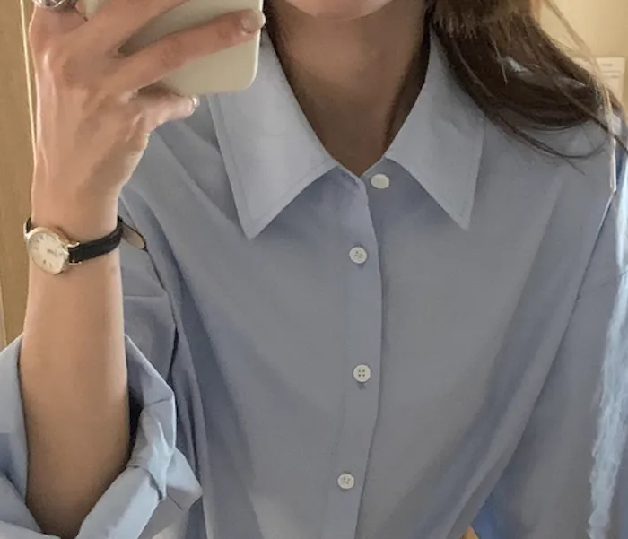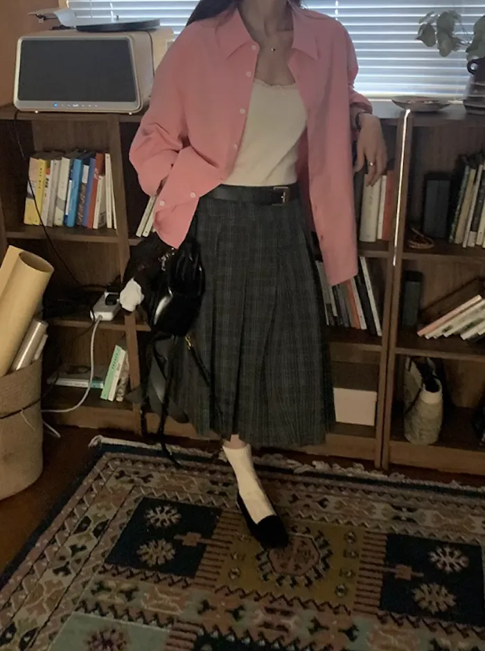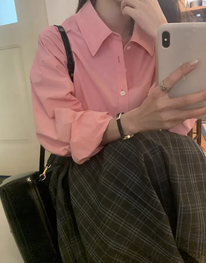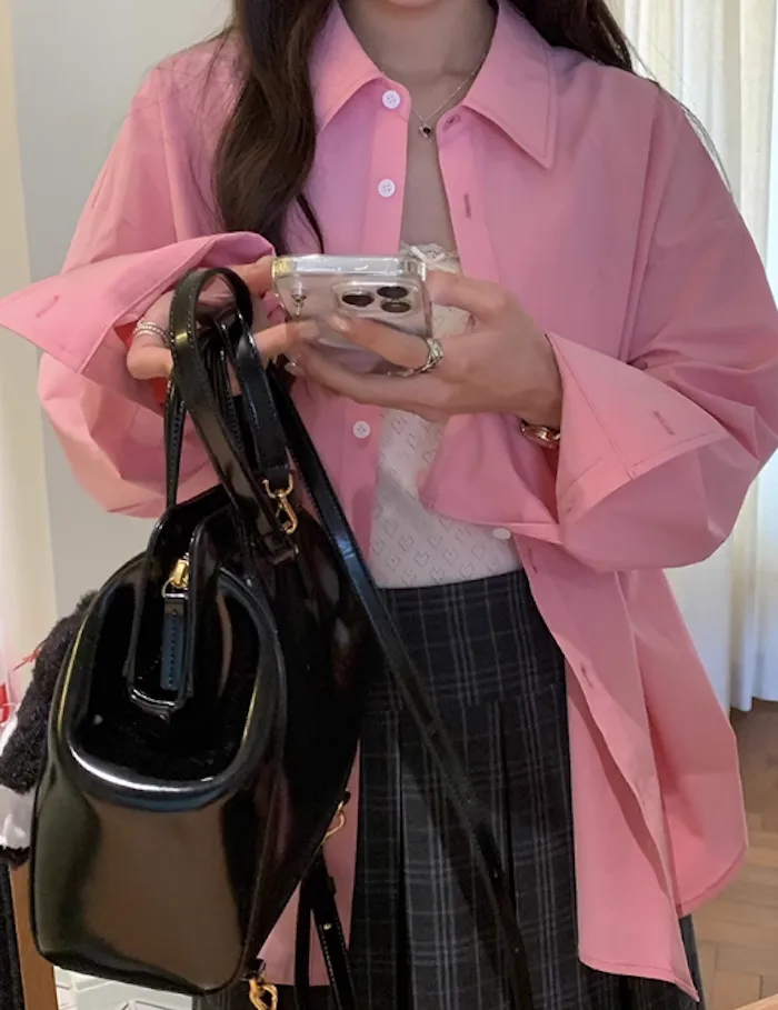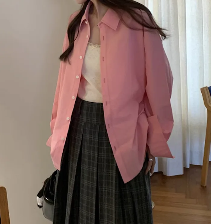 長袖襯衫甜而不膩,提升整體造型溫柔感