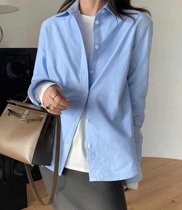 晴空漫步 輕盈正肩長袖襯衫 3色