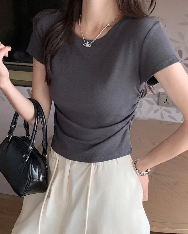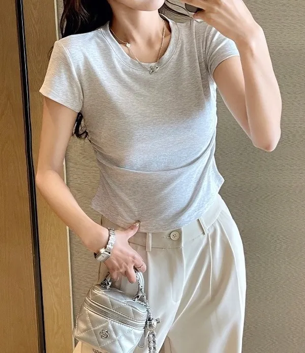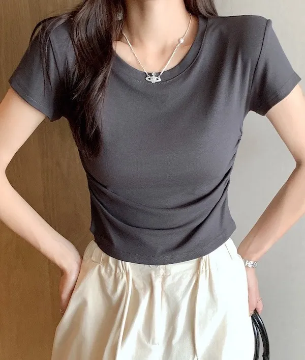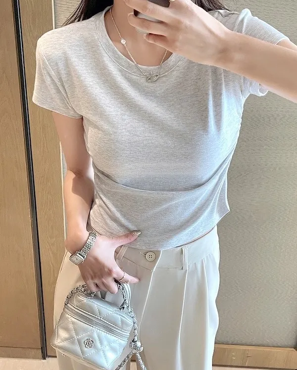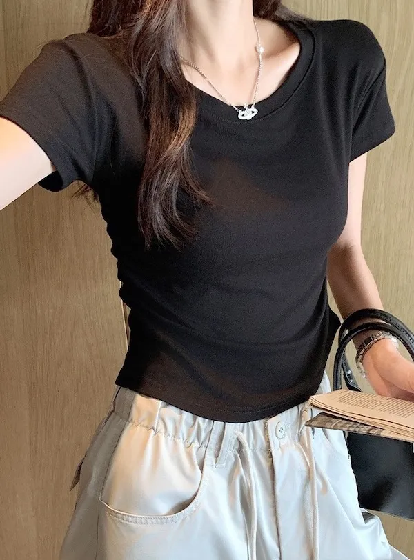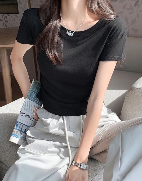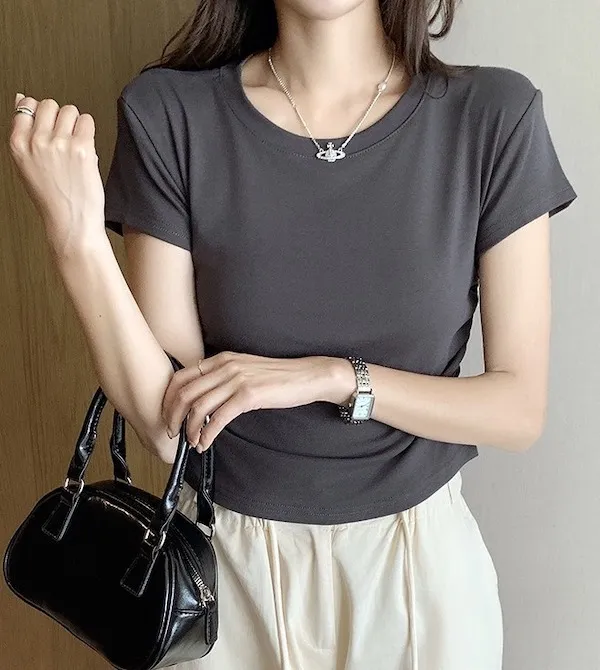 圓領剪裁很經典,短袖長度剛好不會太緊