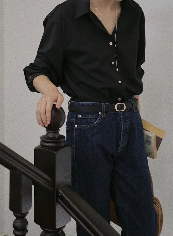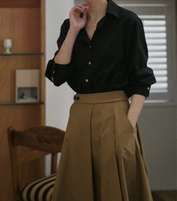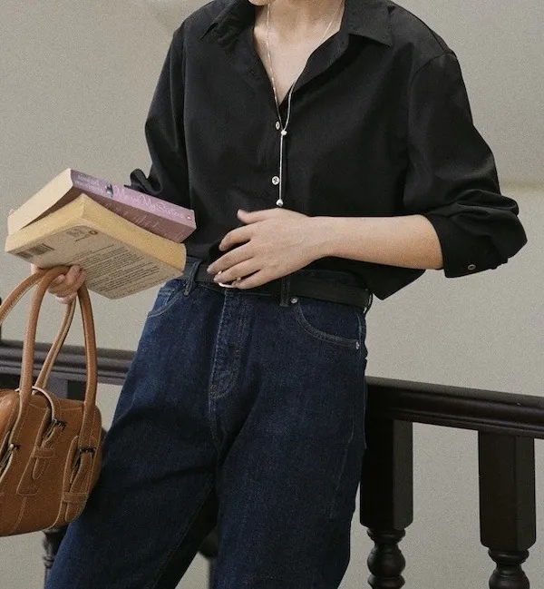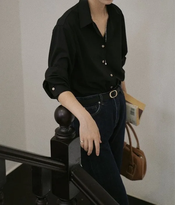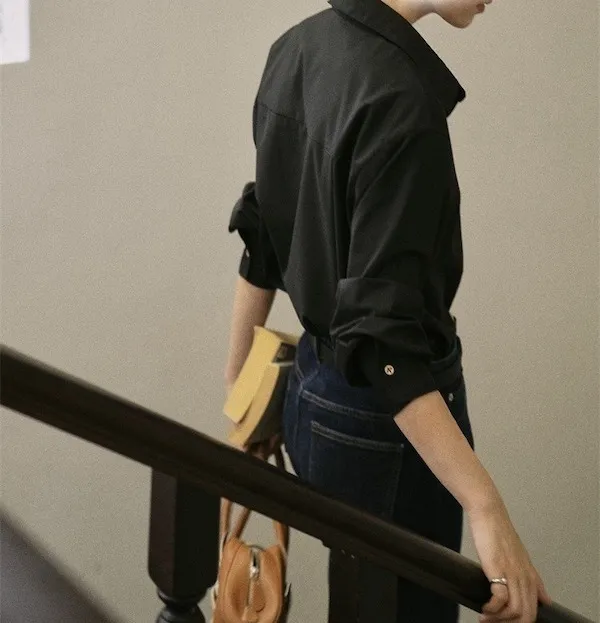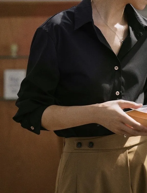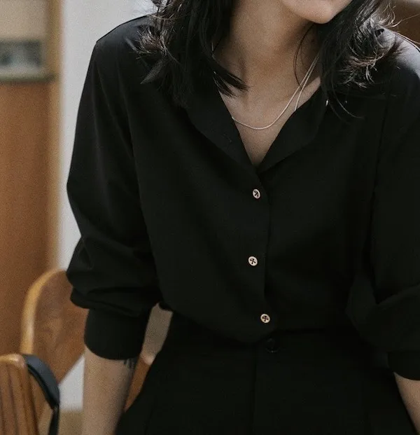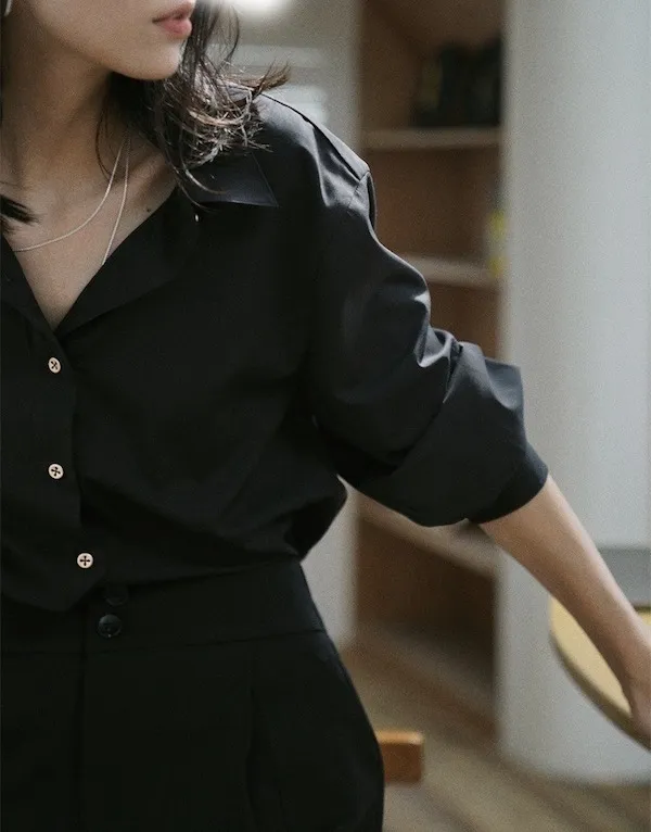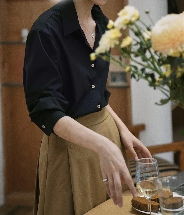 午夜星語 法式復古黑襯衫