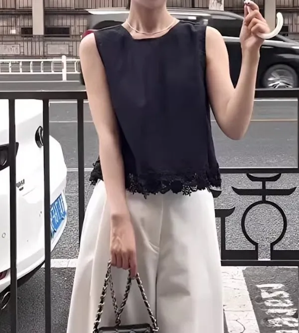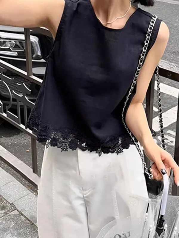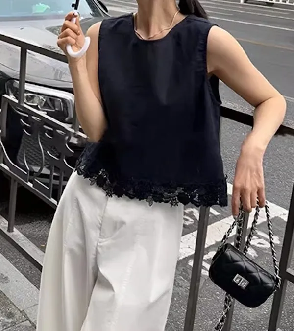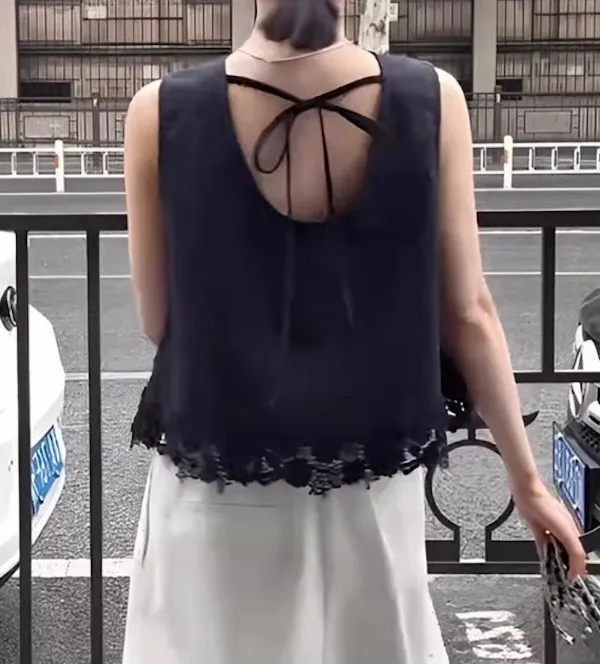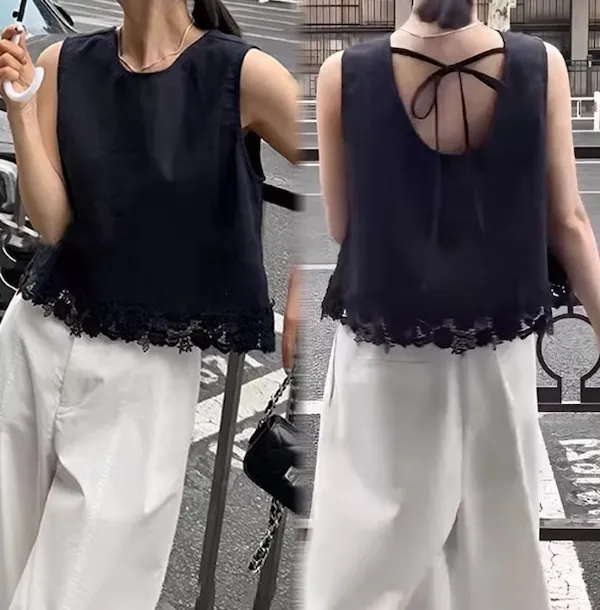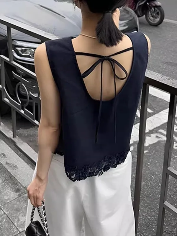 浪漫蕾絲 後背綁帶優雅背心上衣