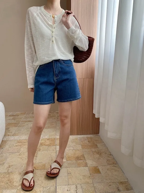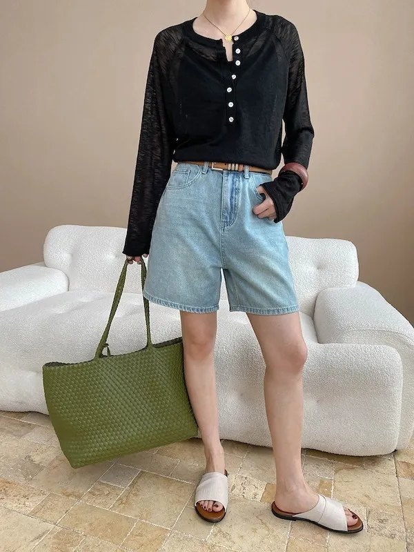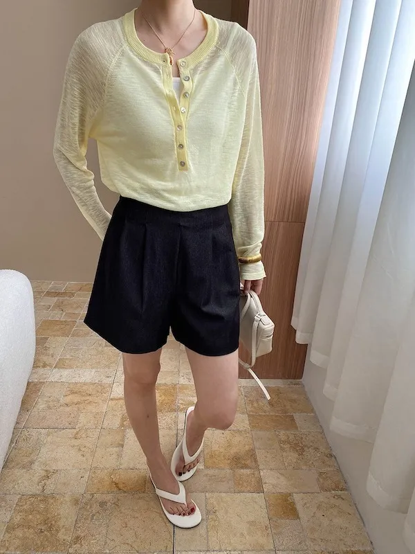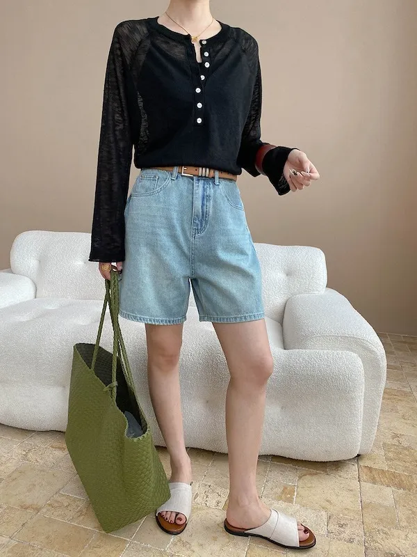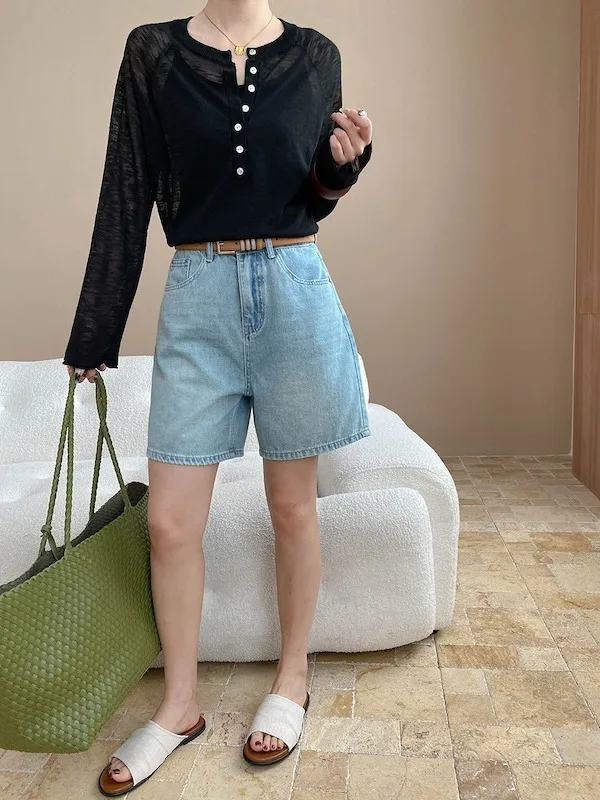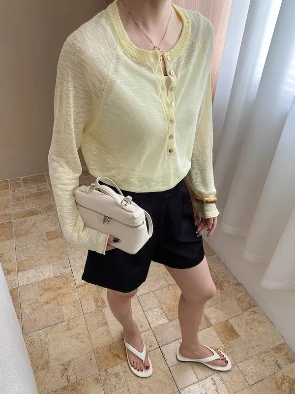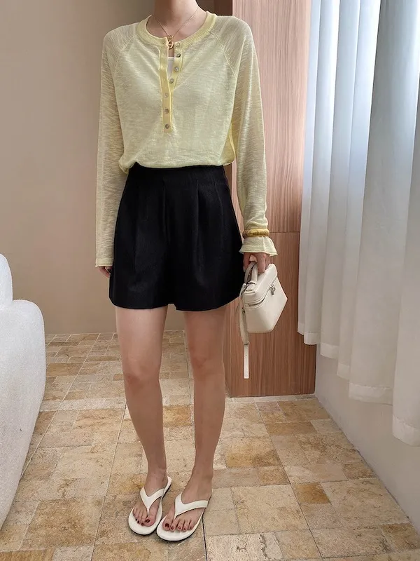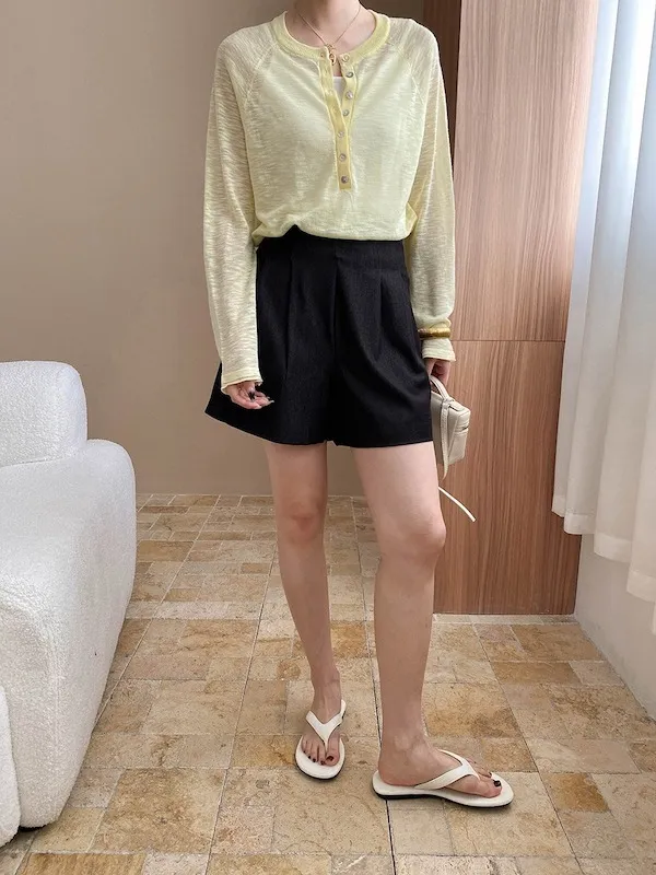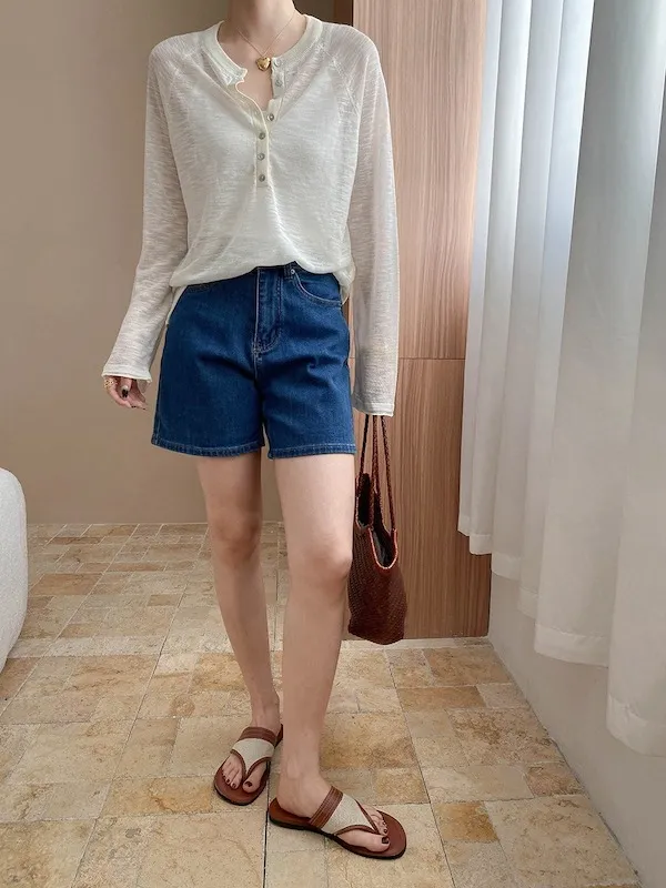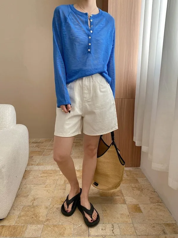 輕氧隨性 冰絲亨利領薄長袖針織衫 5色