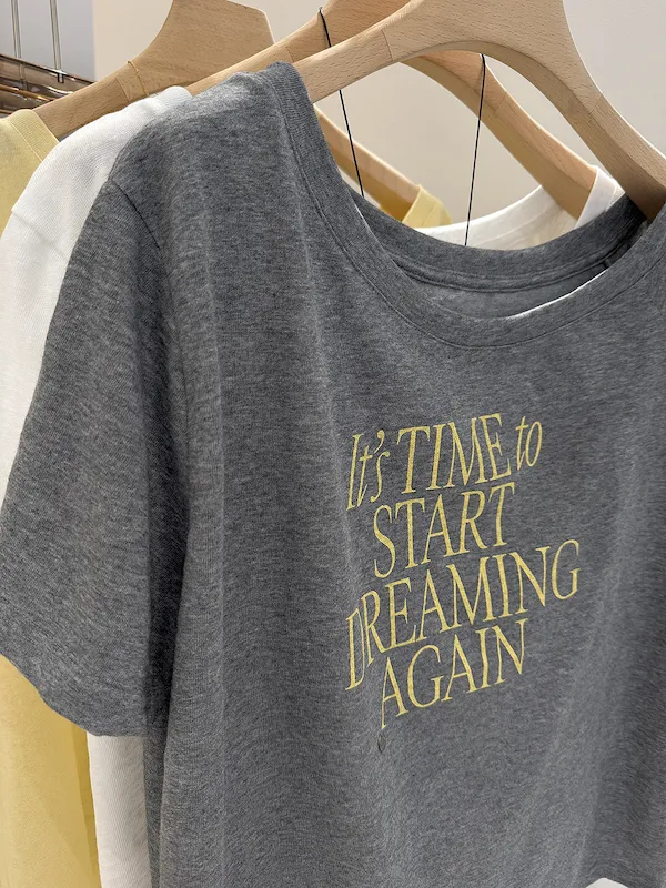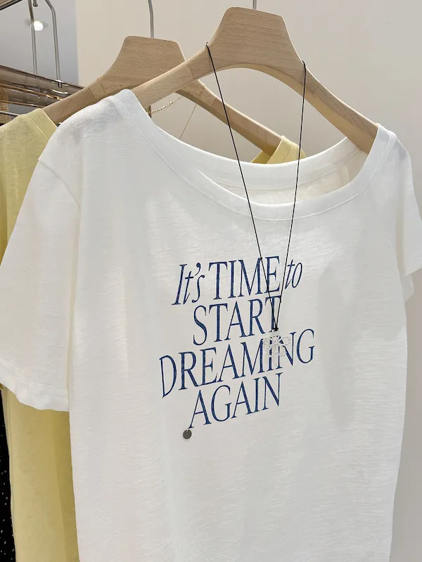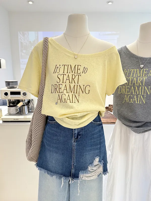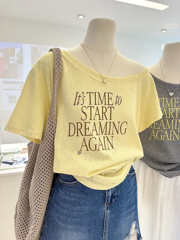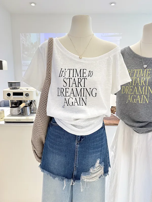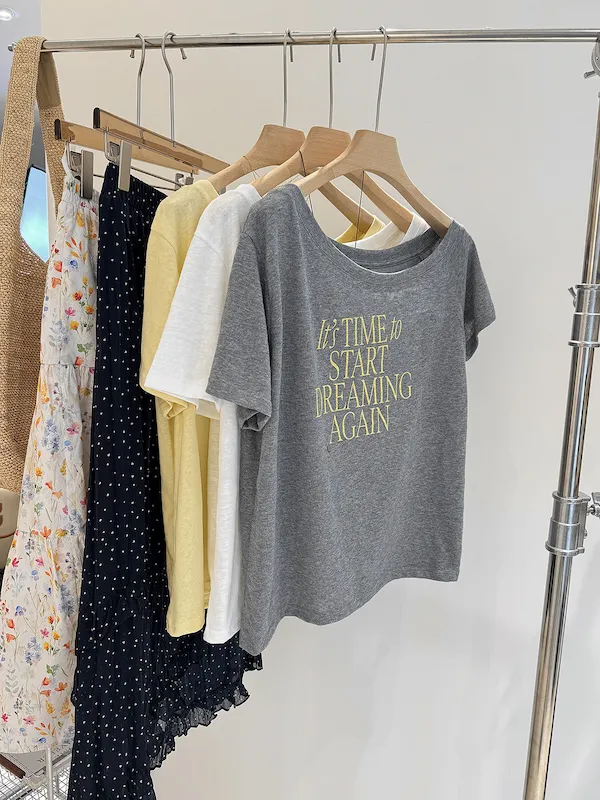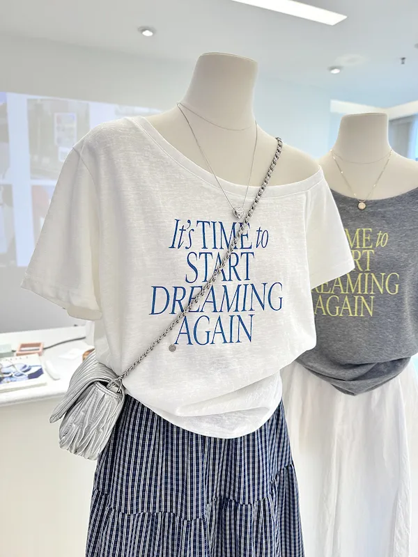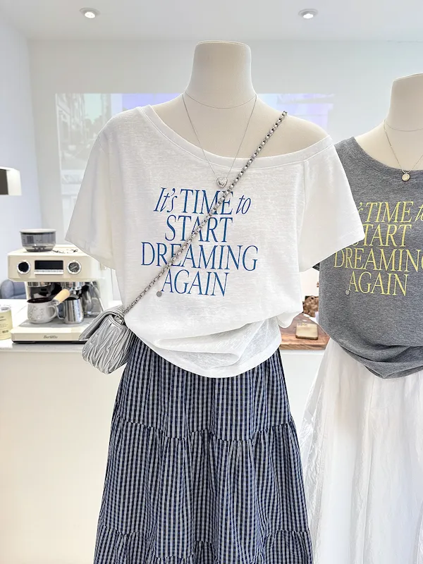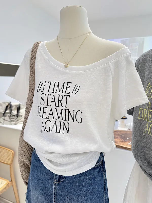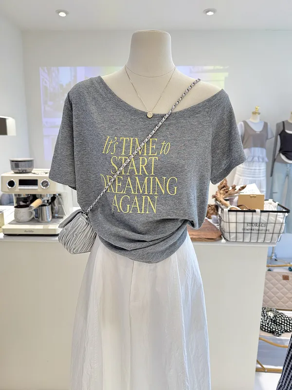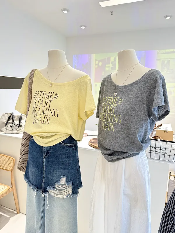 溫柔晨光 斜肩字母印花設計感短袖T恤 4色