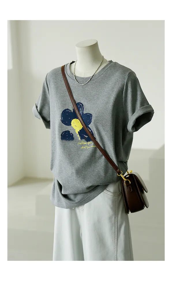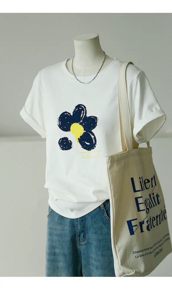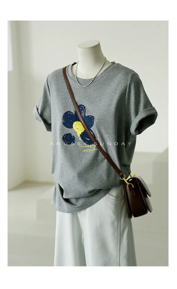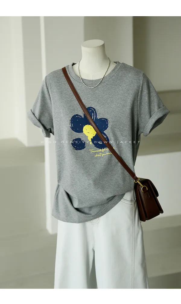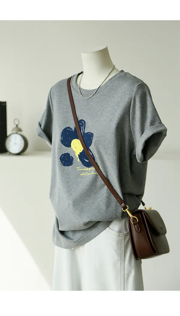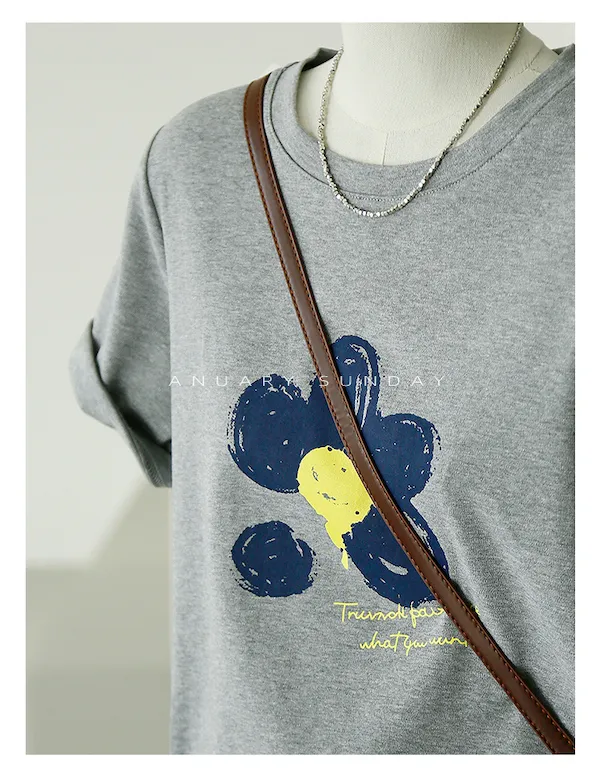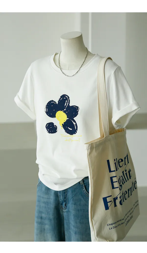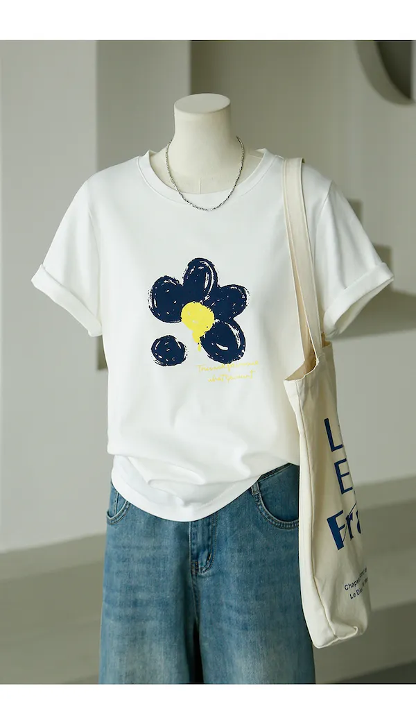 藍莓花園 印花圓領寬鬆短袖上衣 2色
