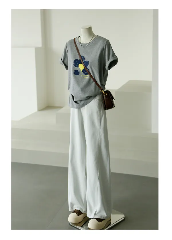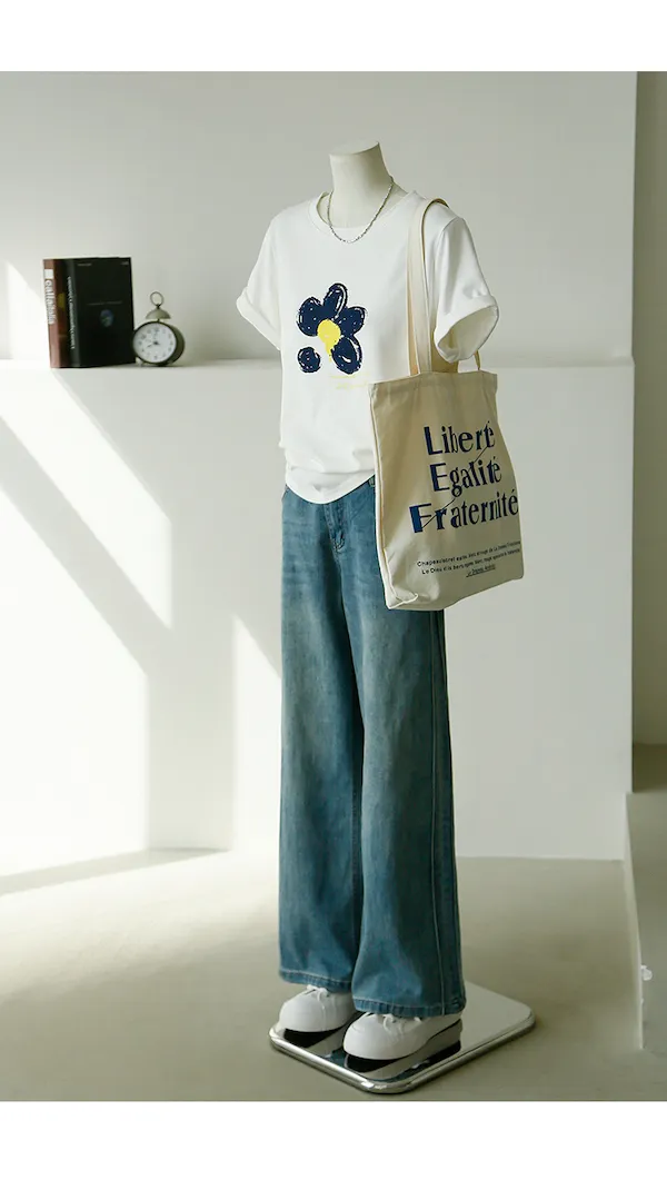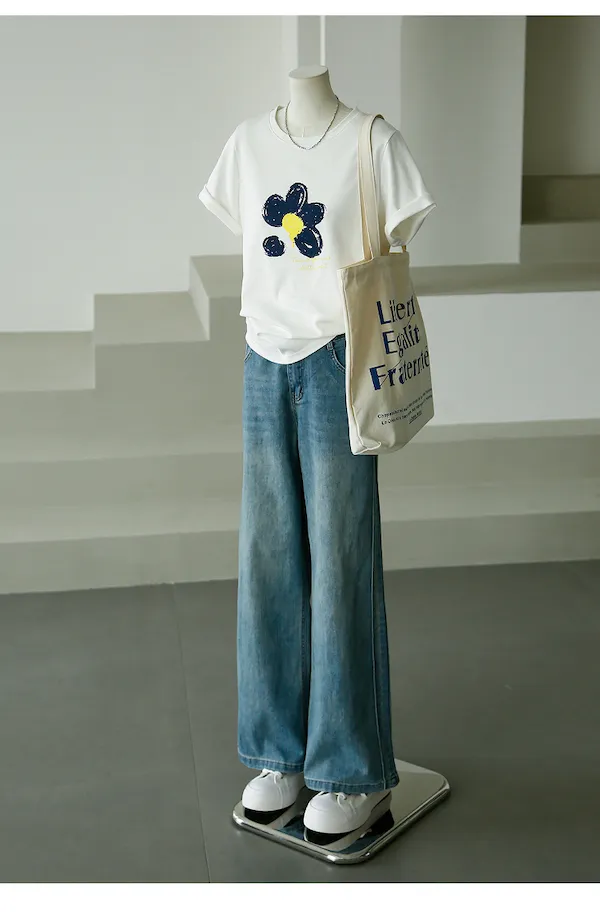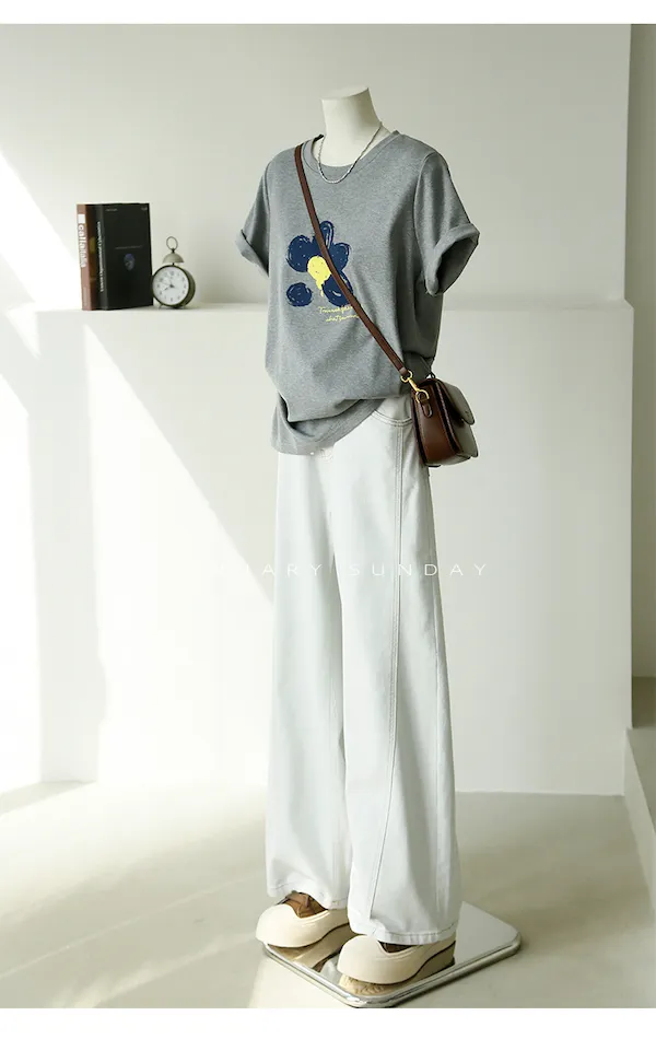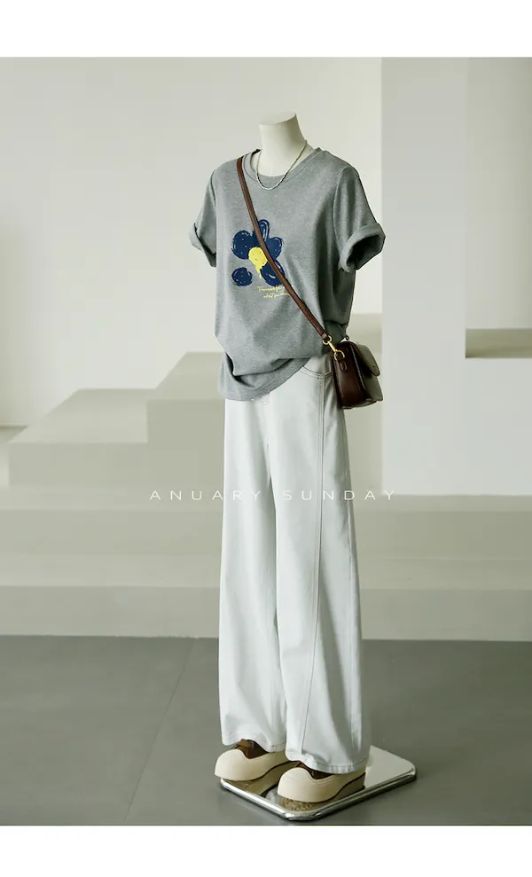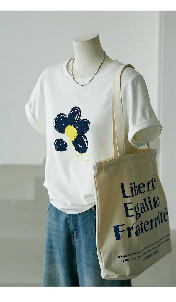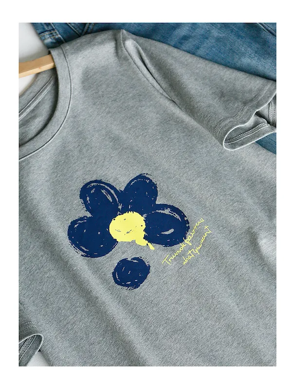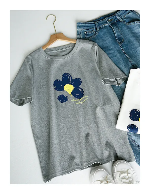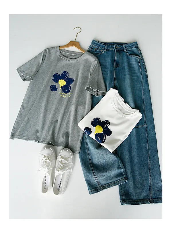 藍莓花園 印花圓領寬鬆短袖上衣 2色