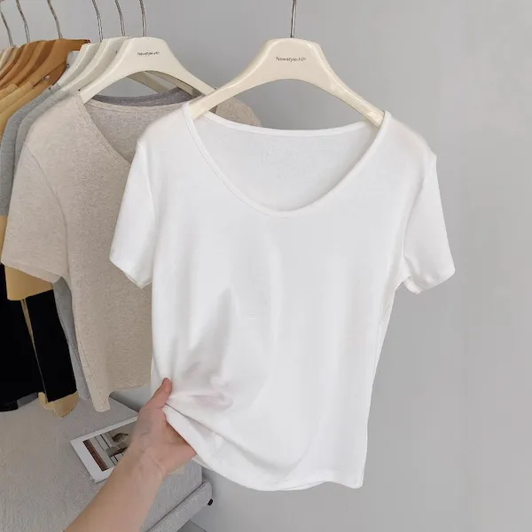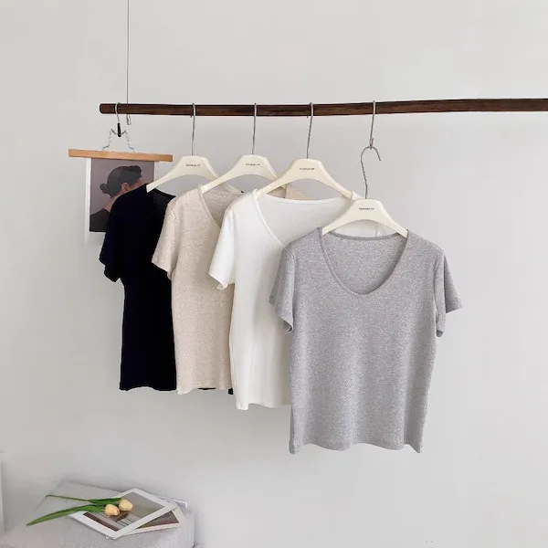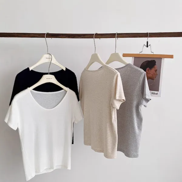 清雅細緻針織亞麻V領透氣短Tee 4色