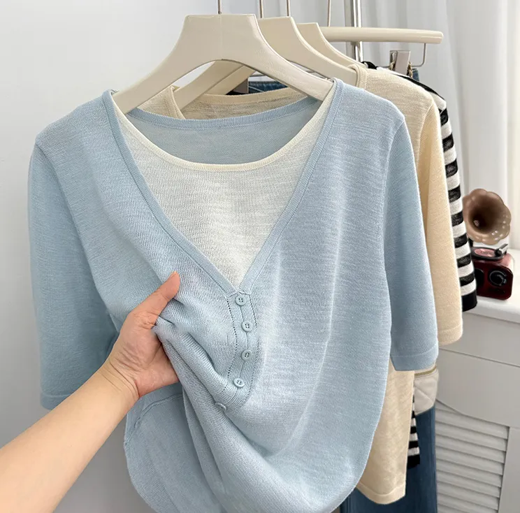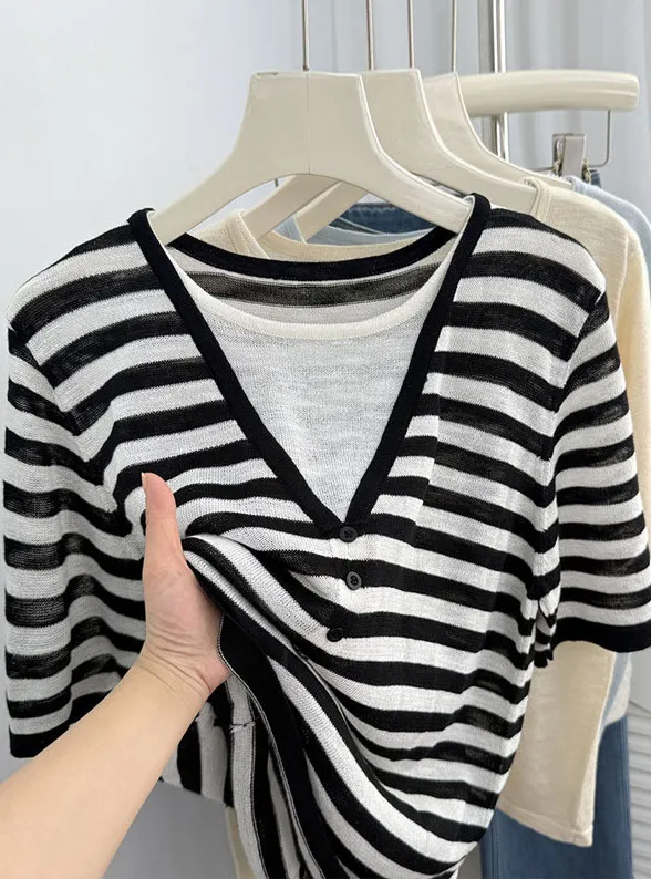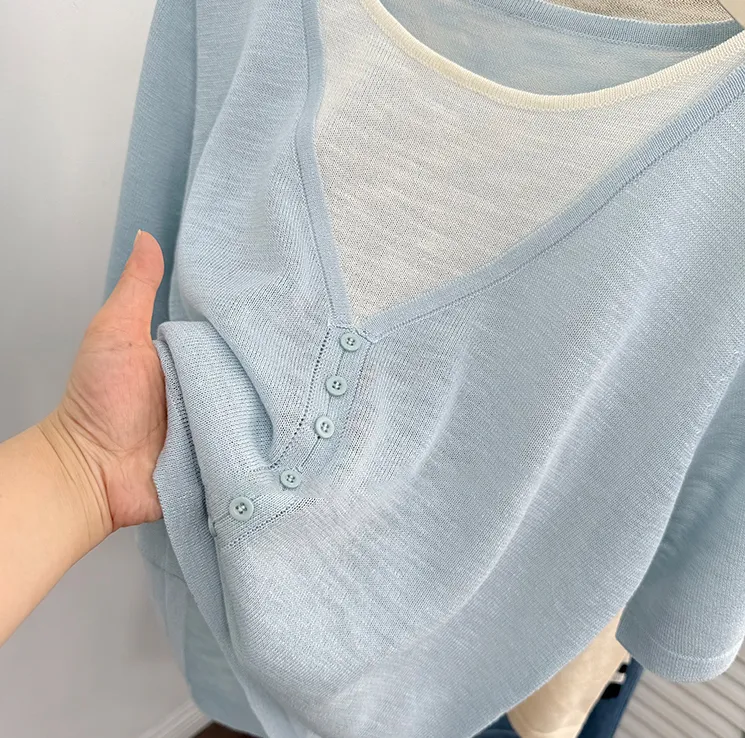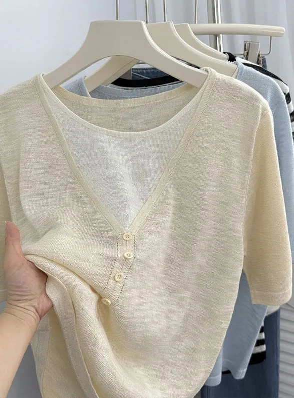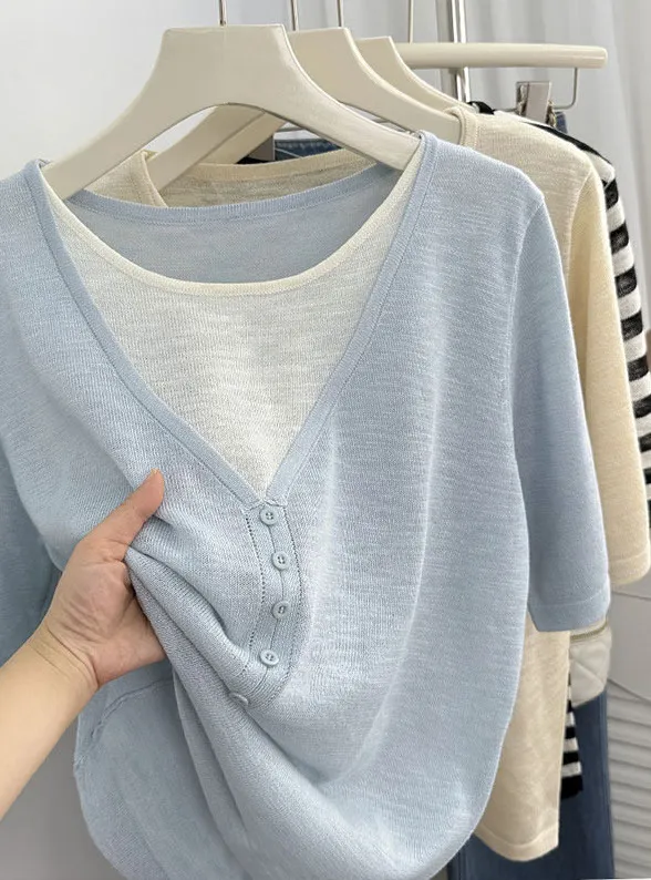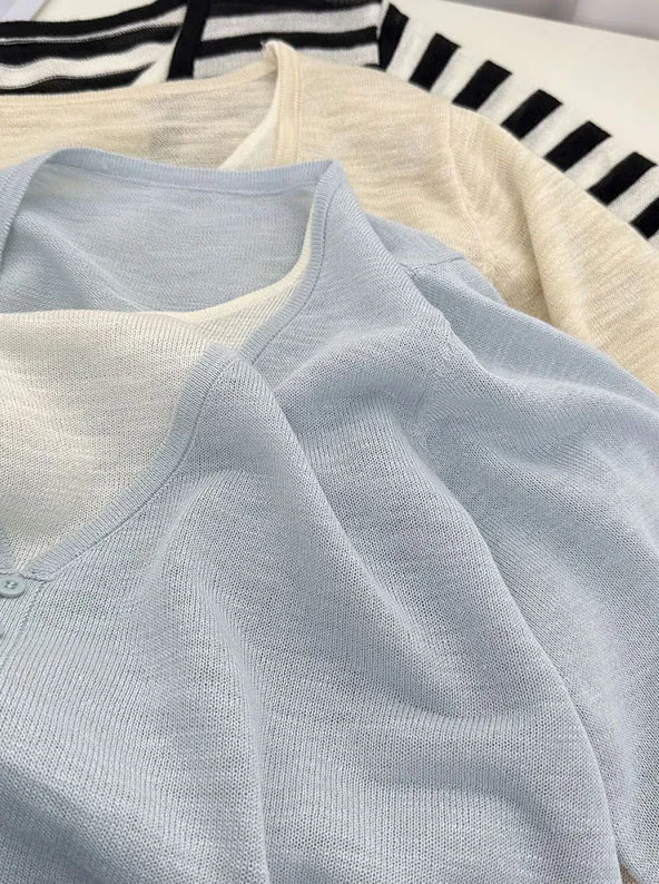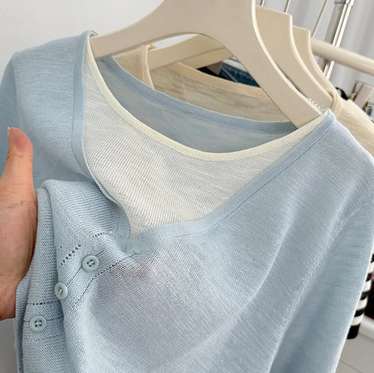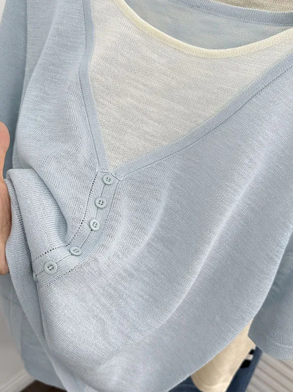 慵懶午後 竹節質感假兩件針織上衣 3色