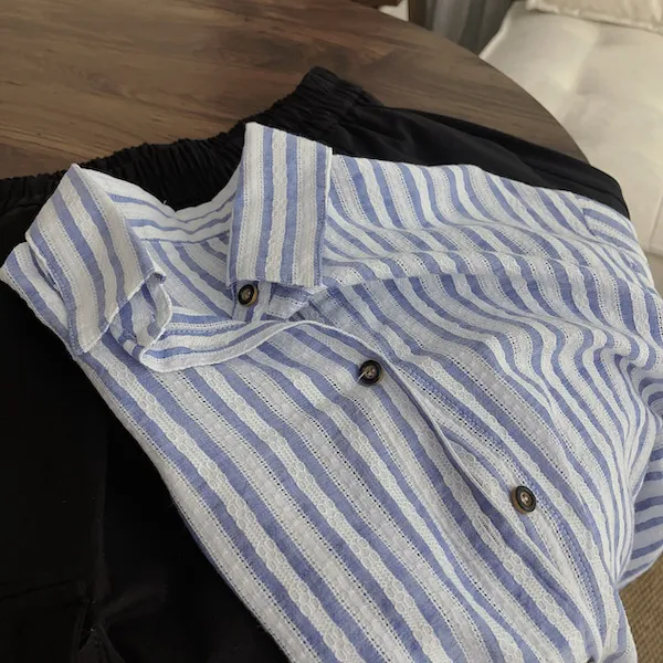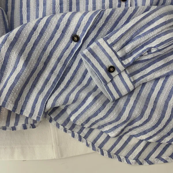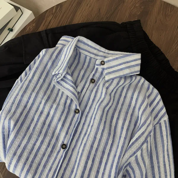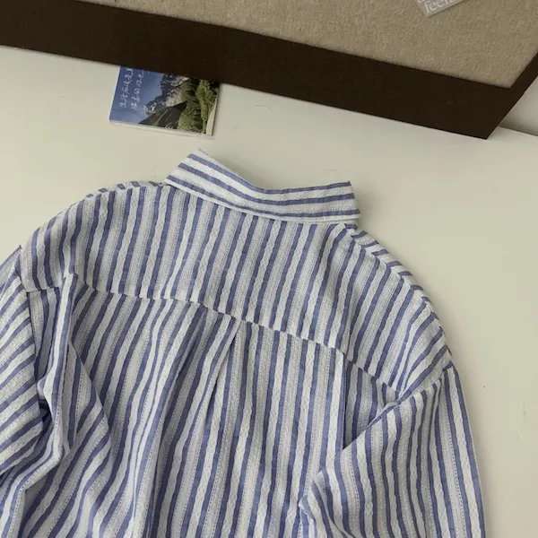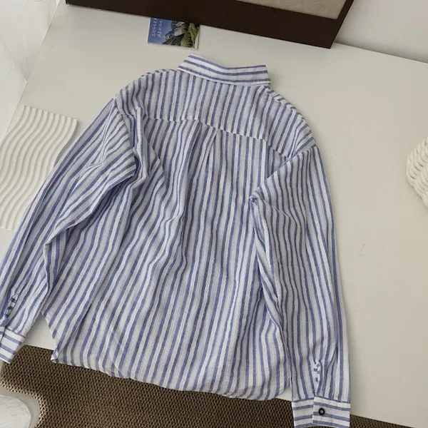 海風呢喃韓版條紋長袖襯衫