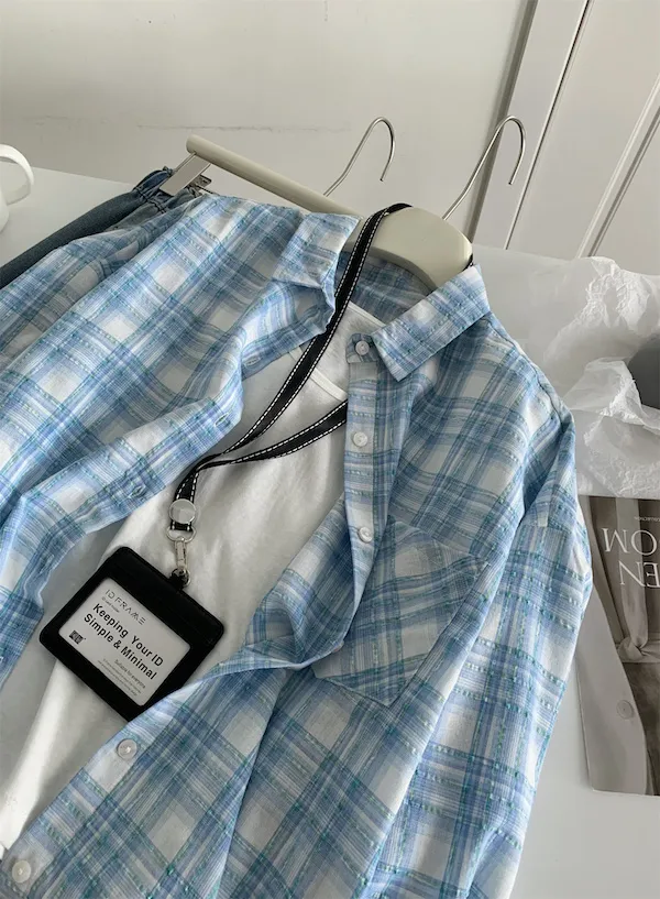 淺藍色調看起來很清新,格紋設計帶點復古味道但不會老氣