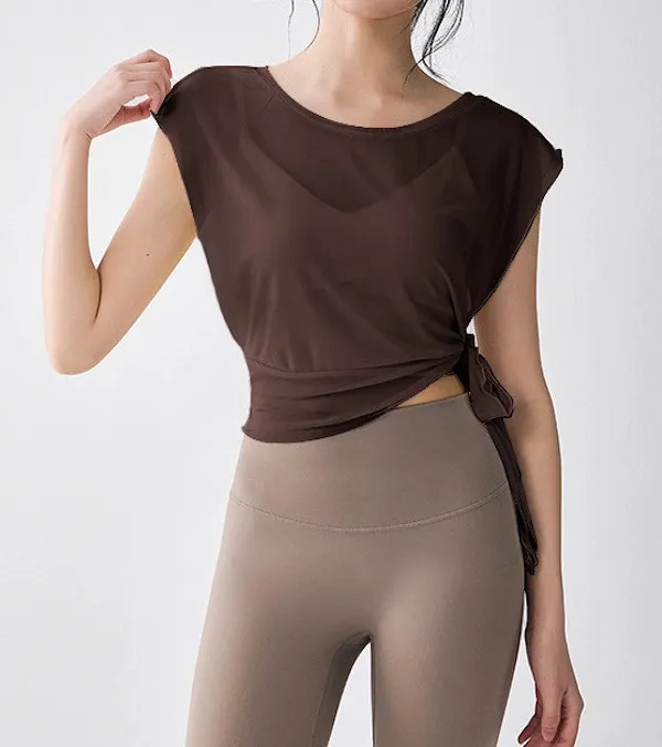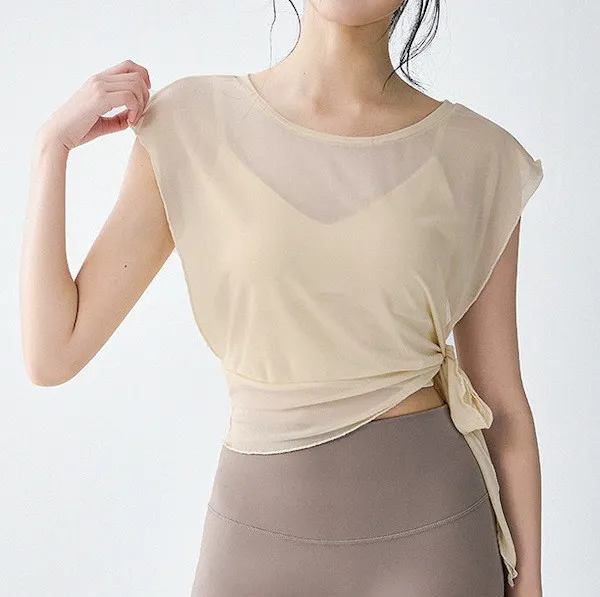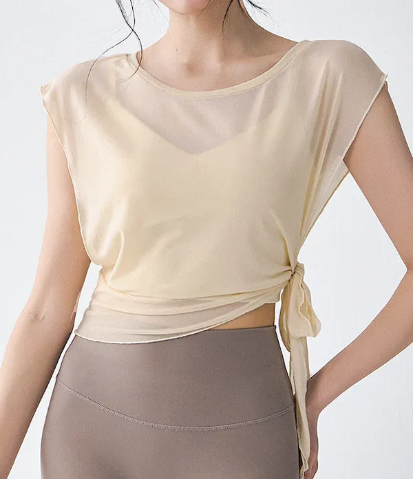 夢幻網紗瑜伽運動BraTop套組(背心+短袖外罩) 6色