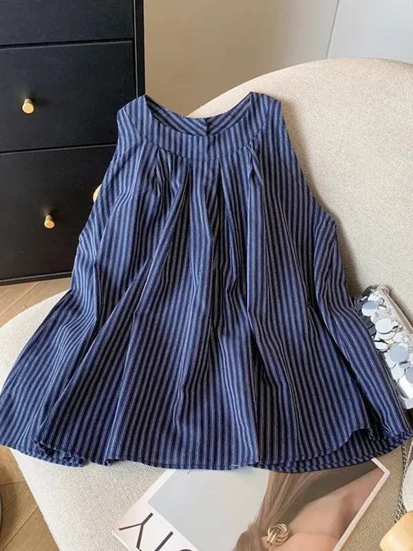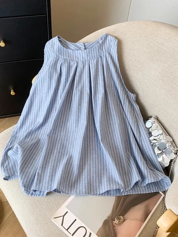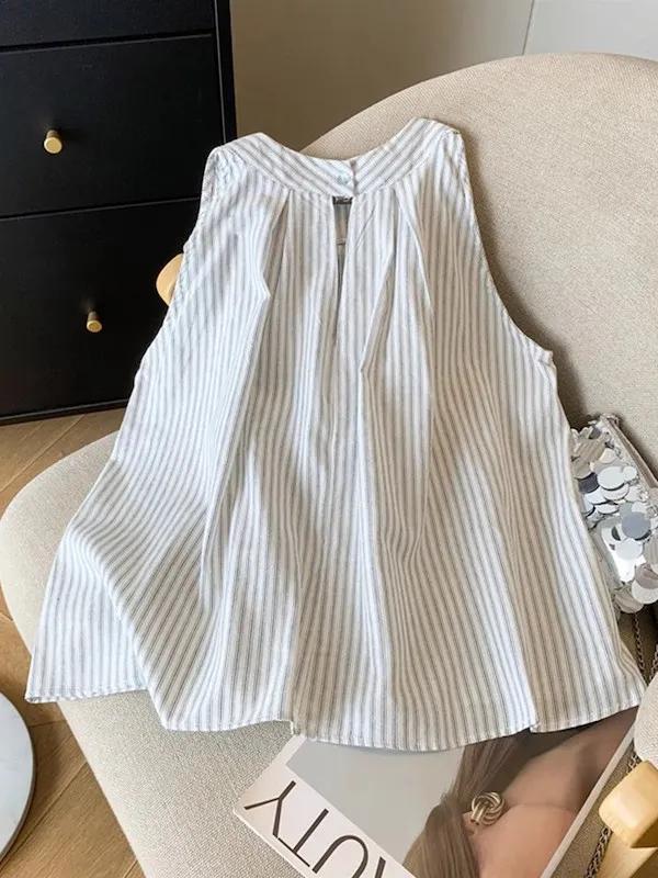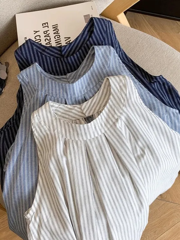 萊茵河畔 法式條紋掛脖背心上衣 3色