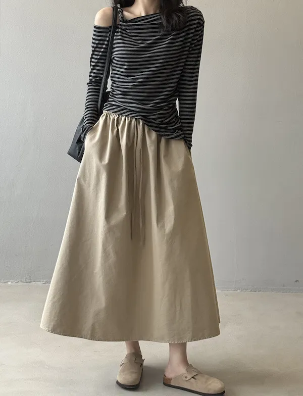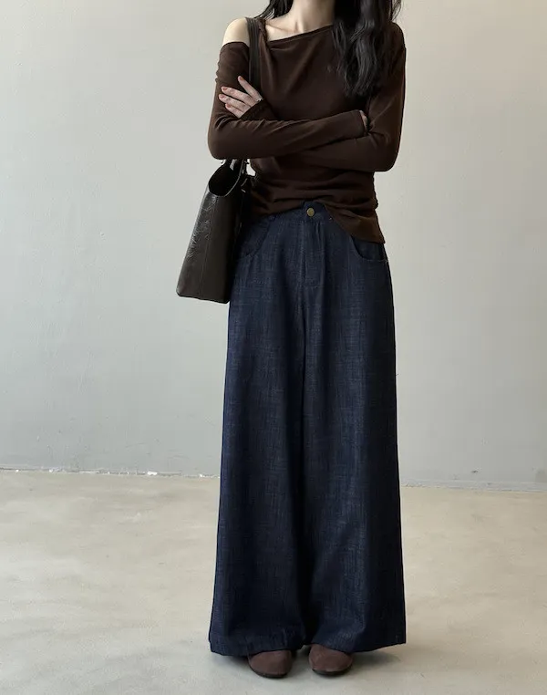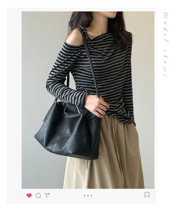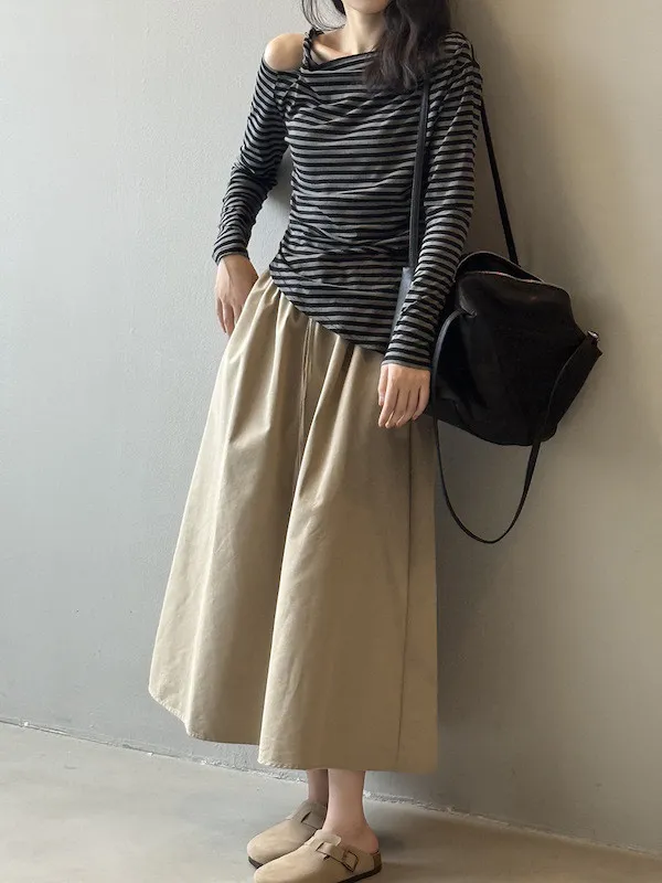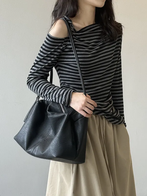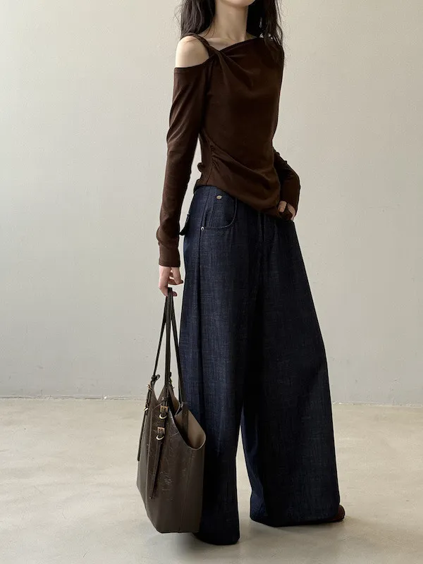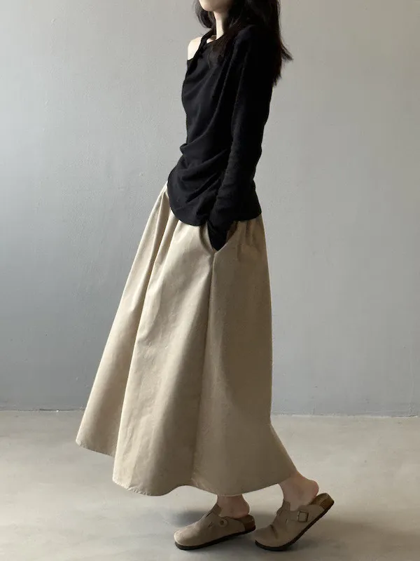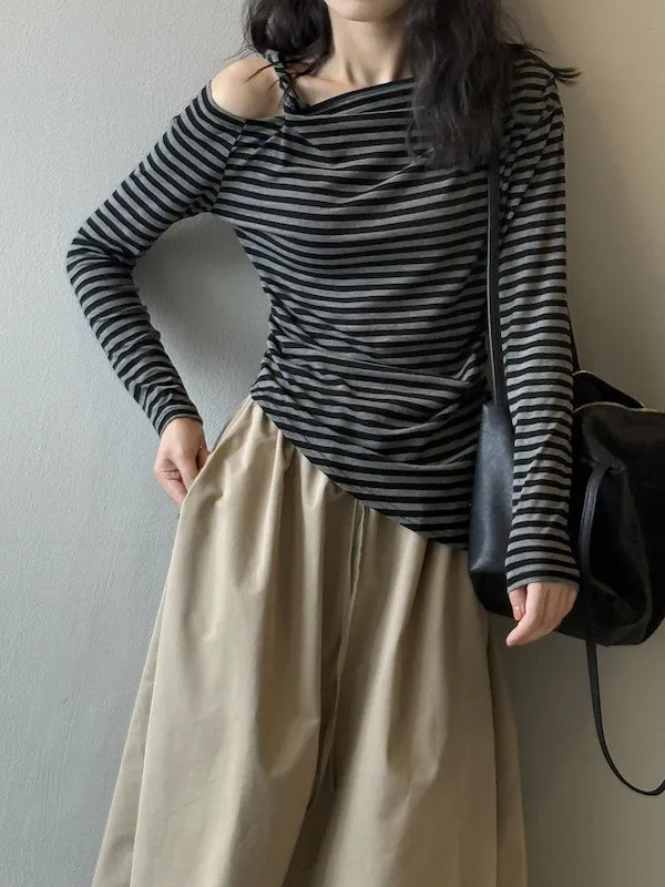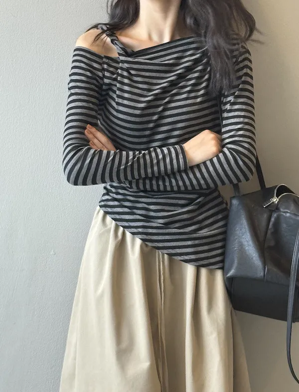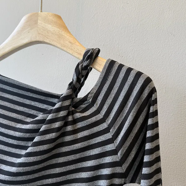 藝術隨想 斜肩扭結不規則長袖上衣 4色