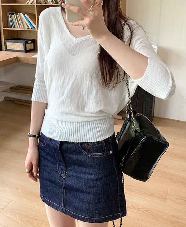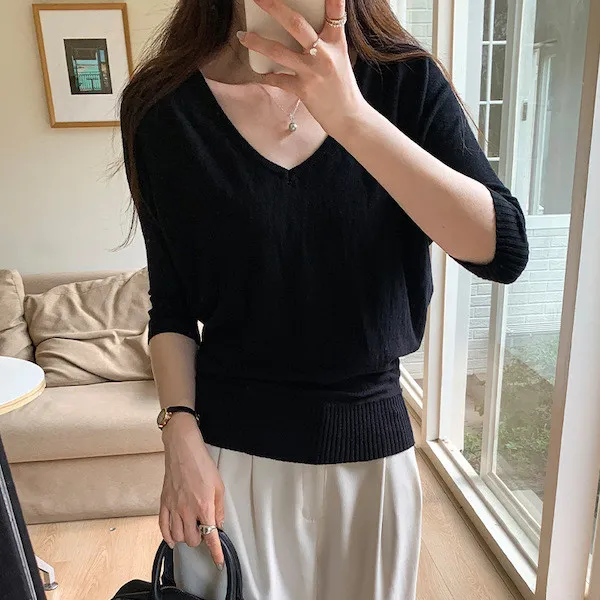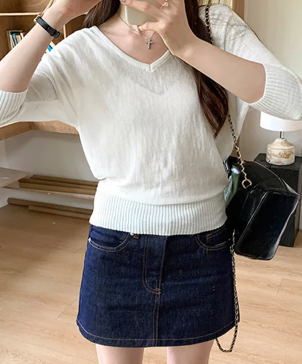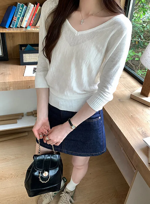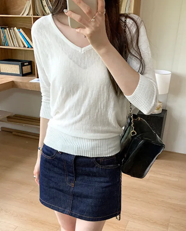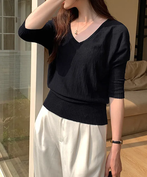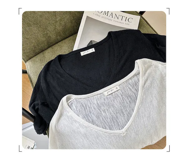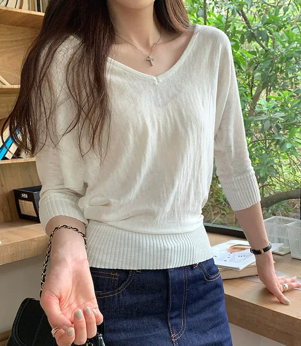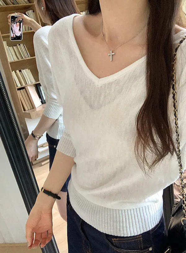 優雅微光 慵懶大V領輕薄針織上衣 2色