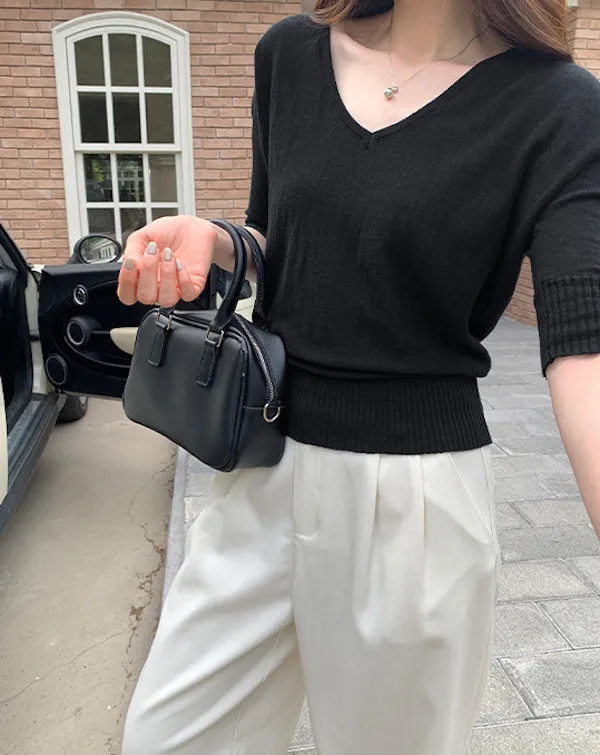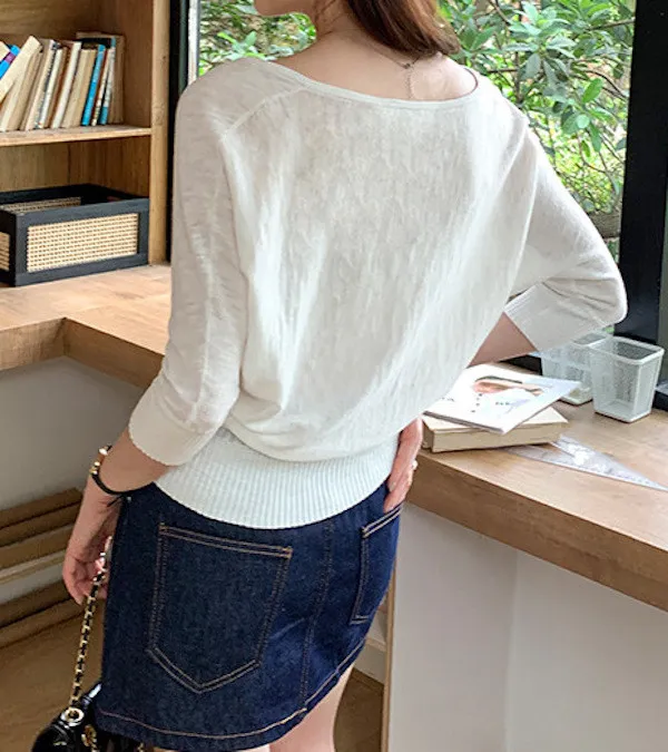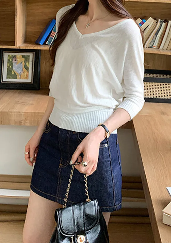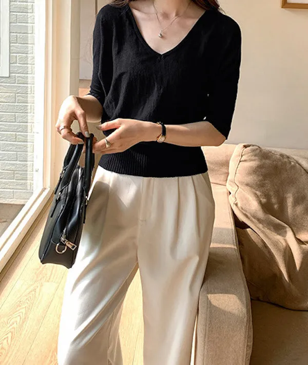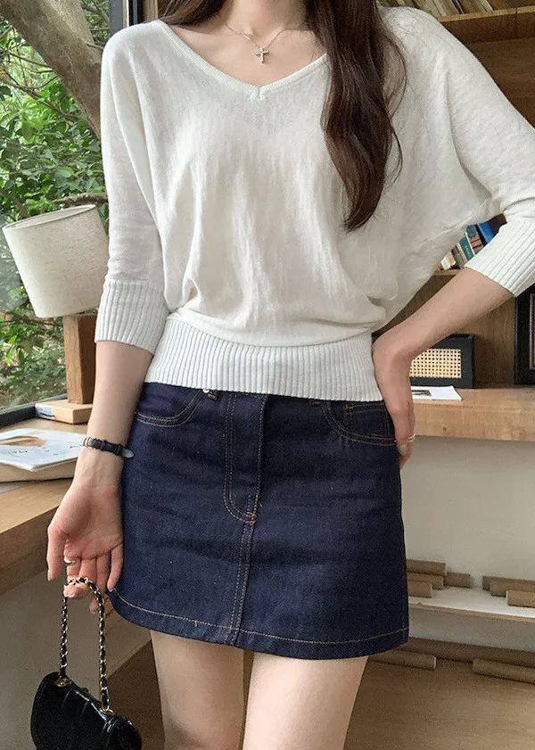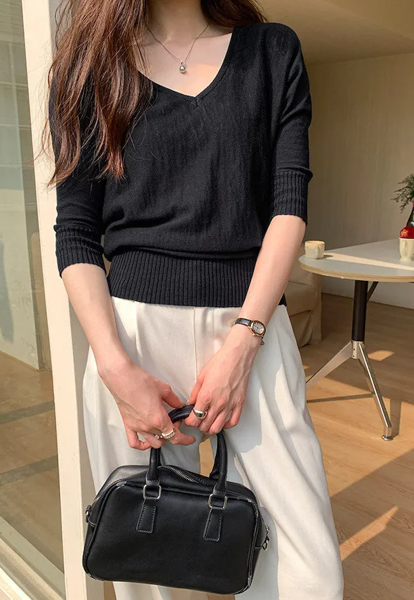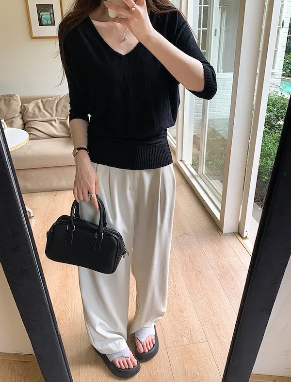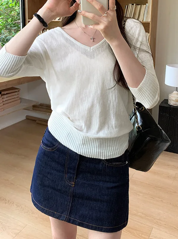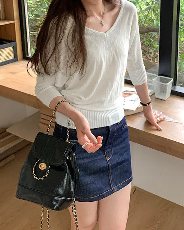 優雅微光 慵懶大V領輕薄針織上衣 2色