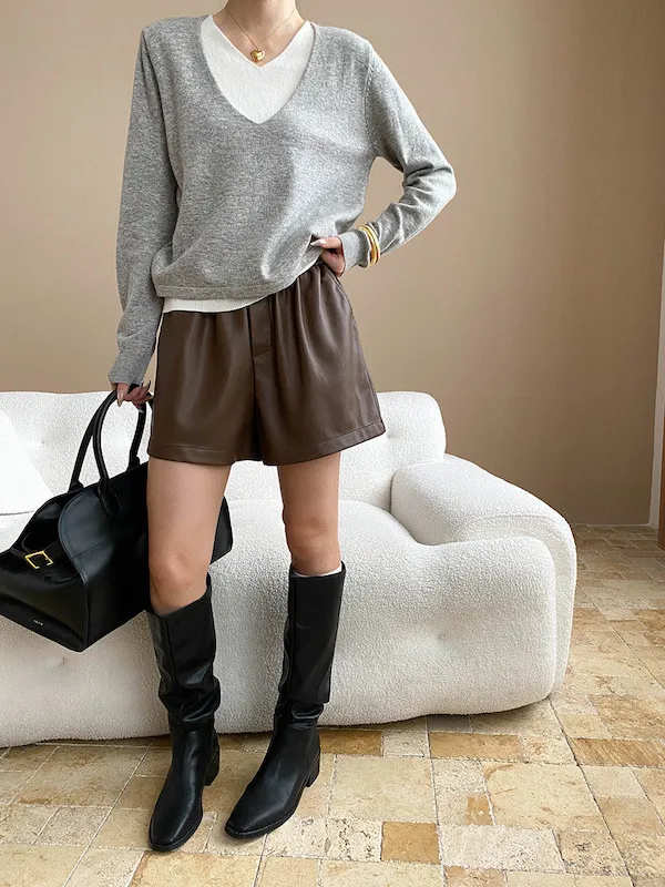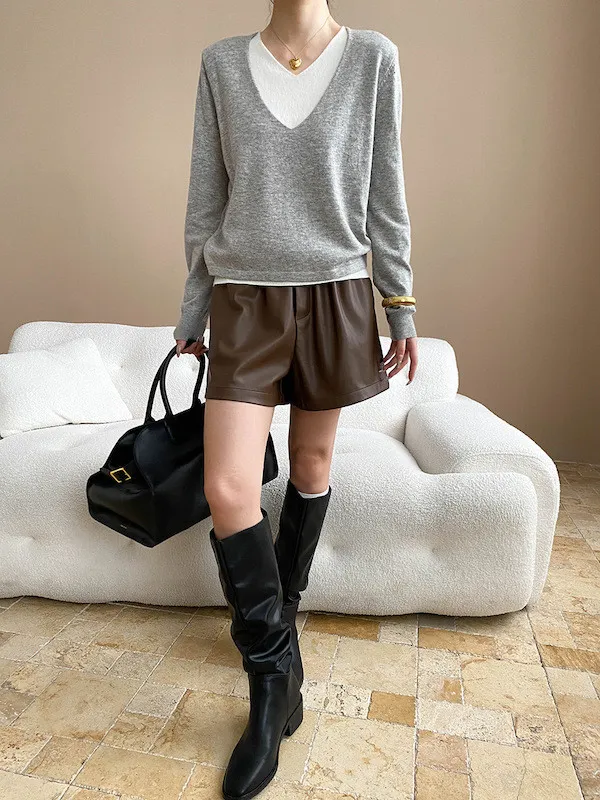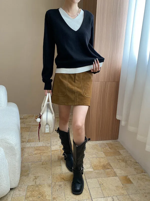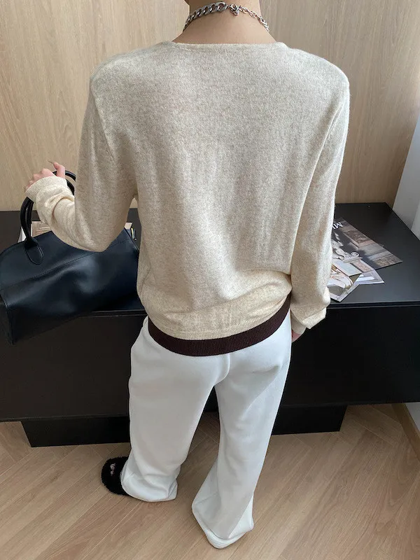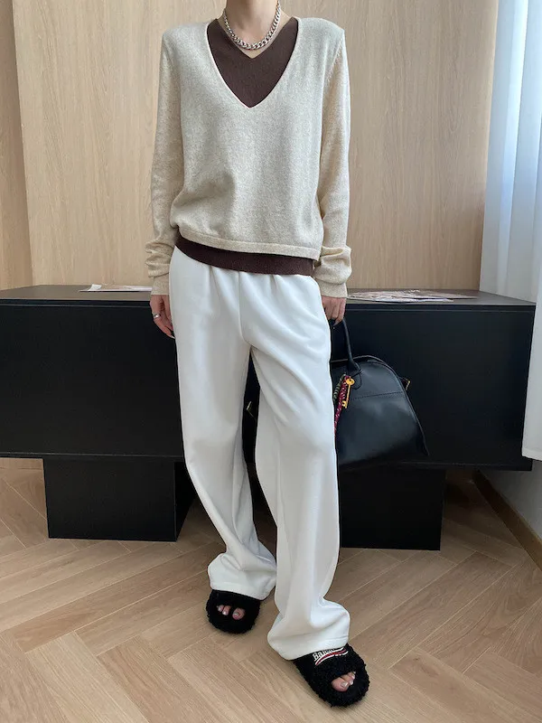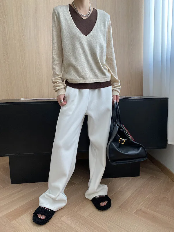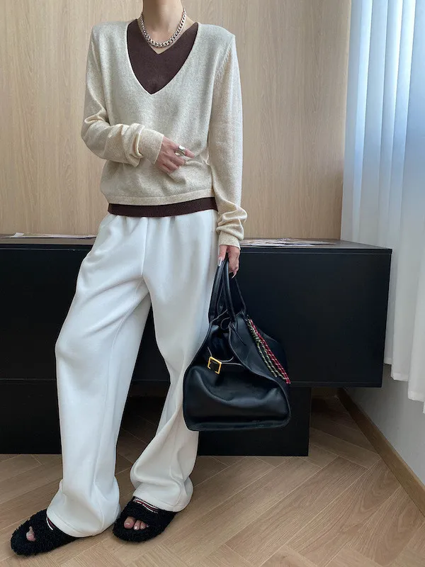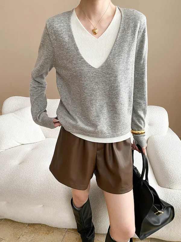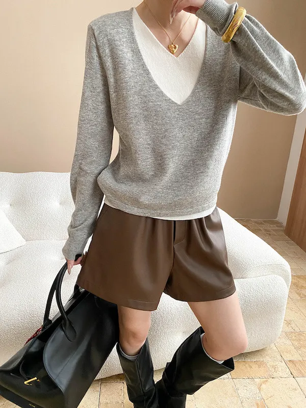 晨昏時光 假兩件撞色V軟糯領針織衫 3色
