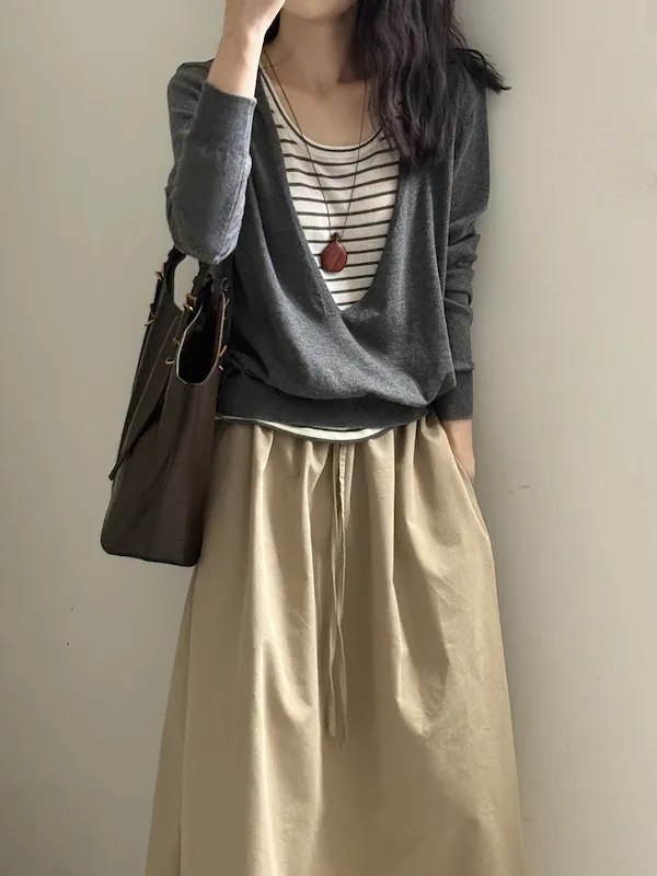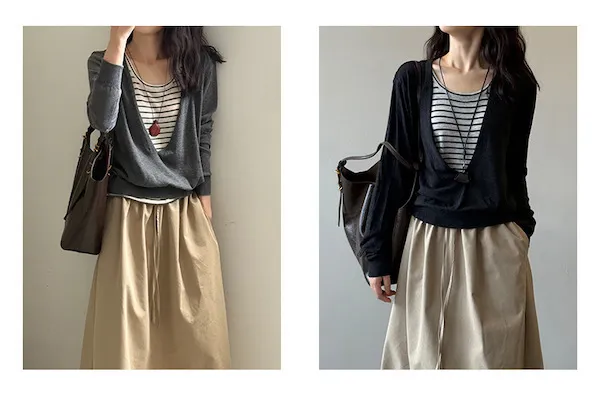 V領針織衫的剪裁很有設計感