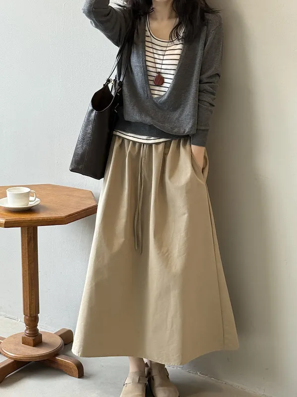 法式慵懶 V領針織背心兩件套(外罩+內搭背心) 2色