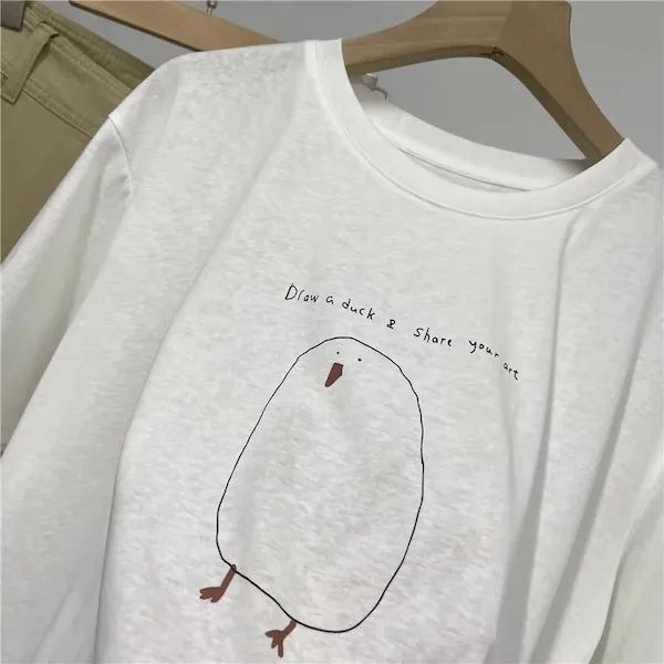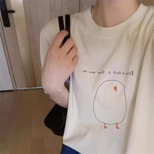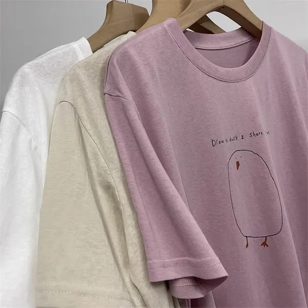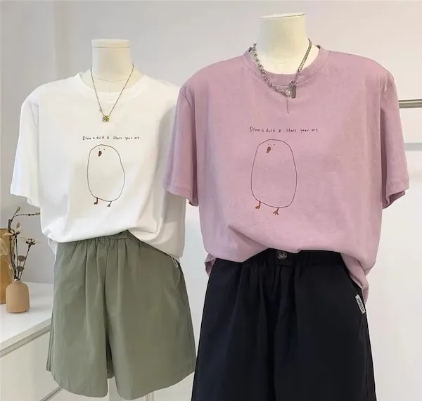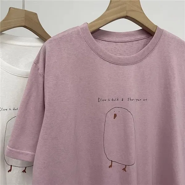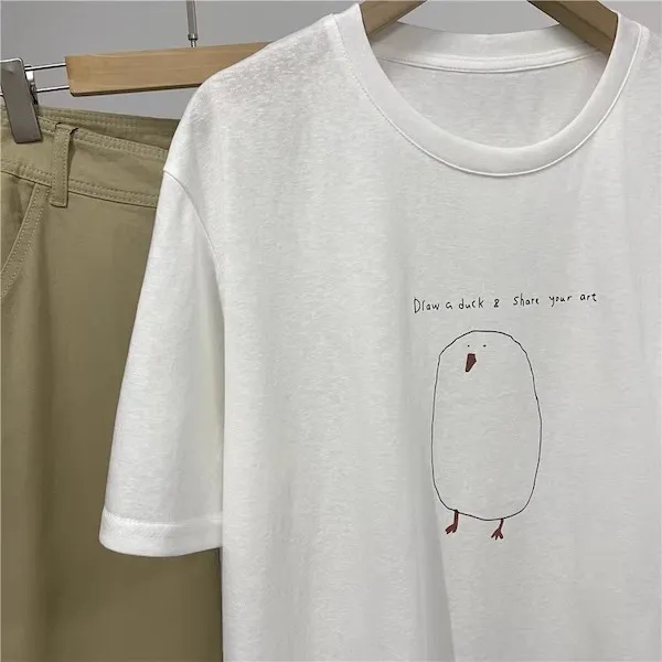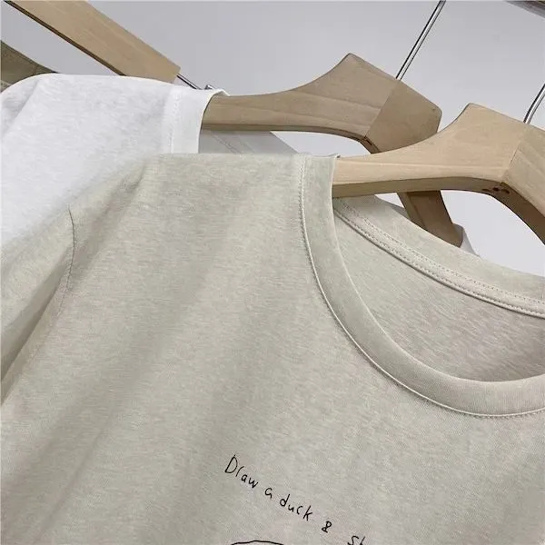 呆萌感小雞印花雪花棉短袖上衣 3色