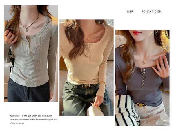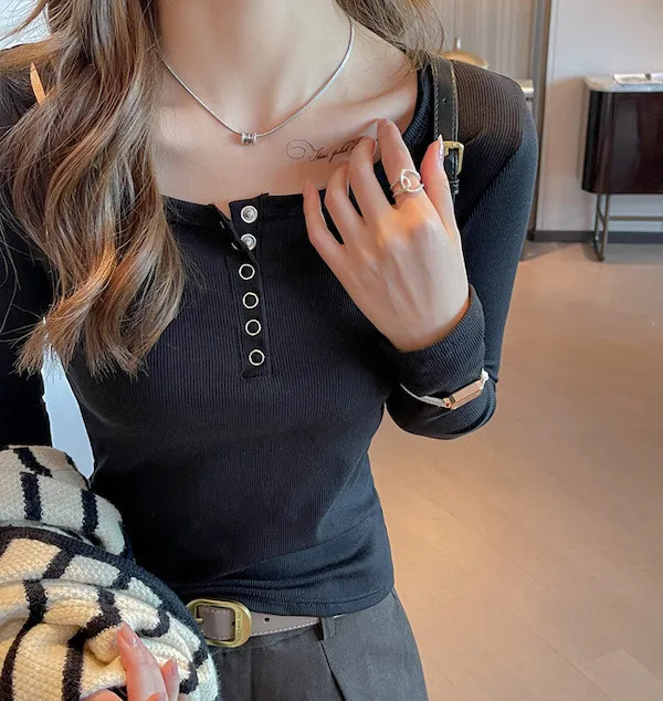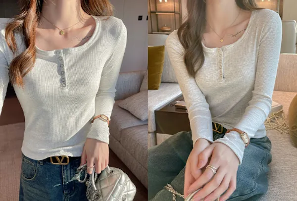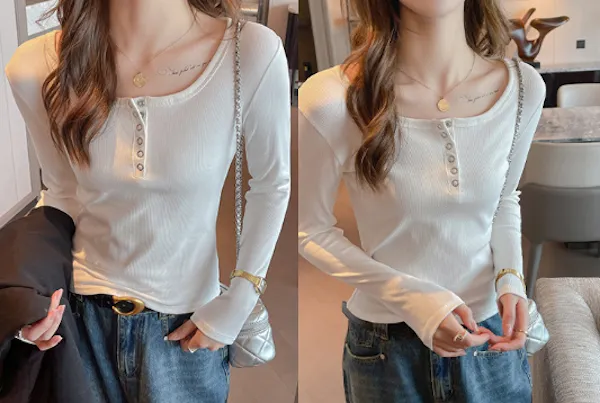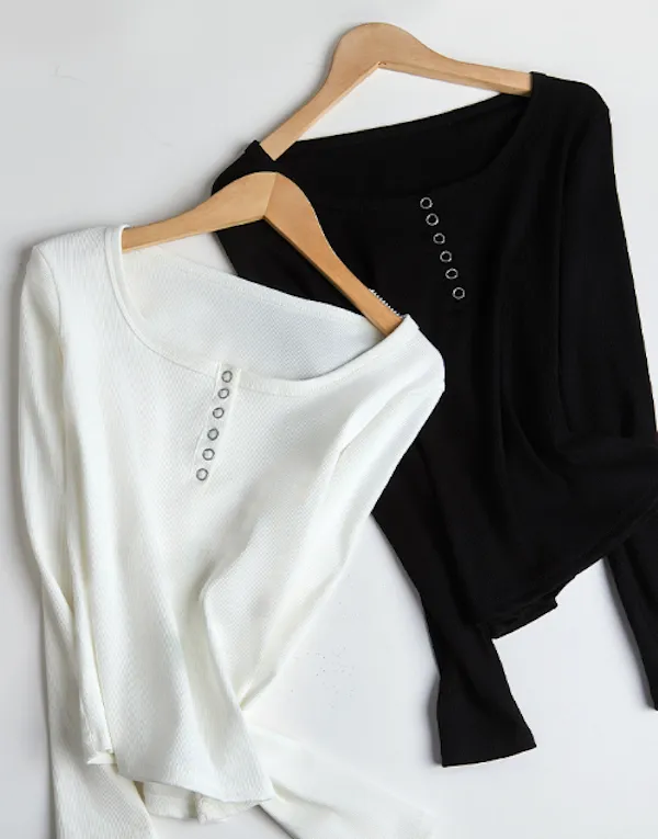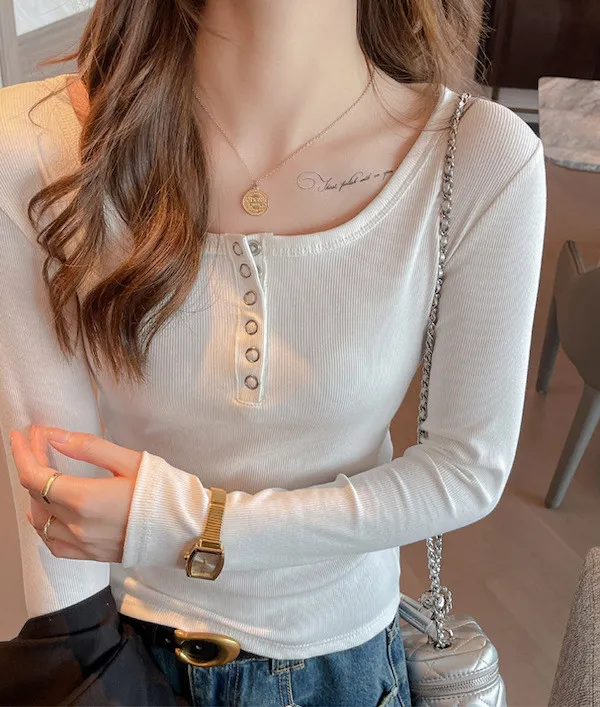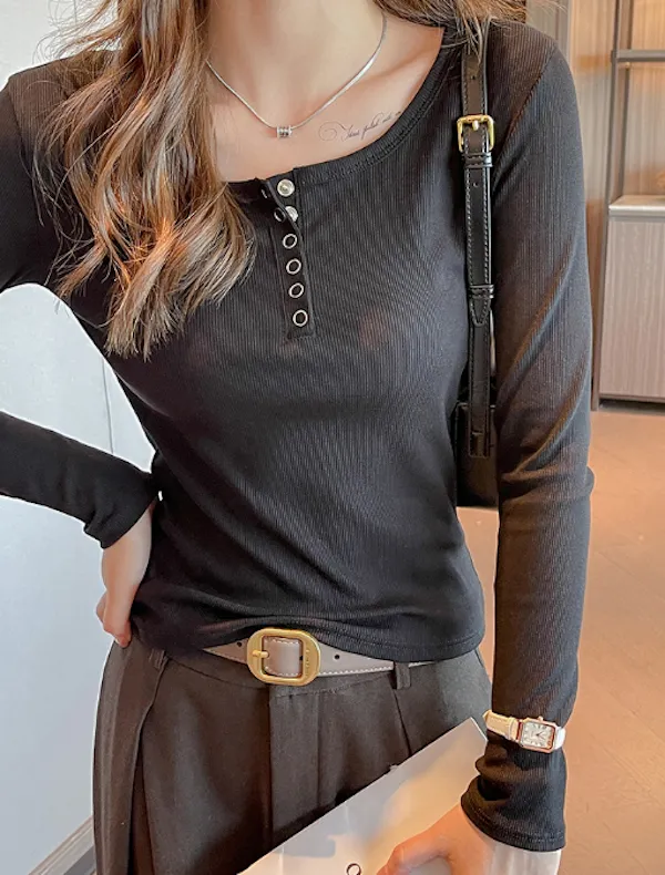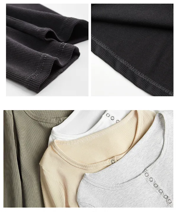 溫柔親膚.羅紋紐扣長袖上衣 6色