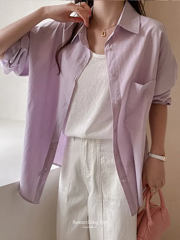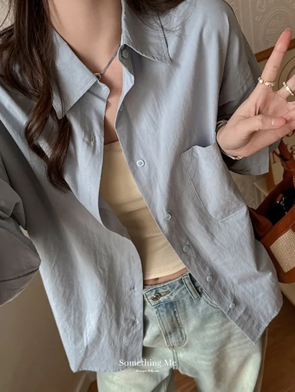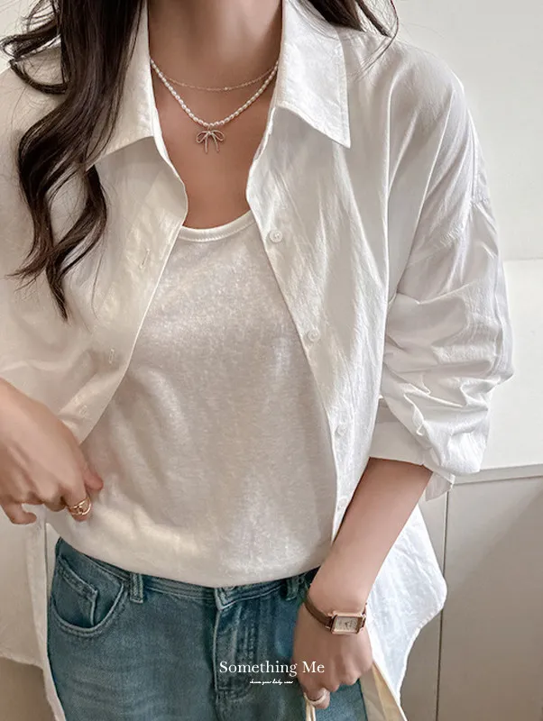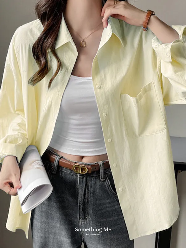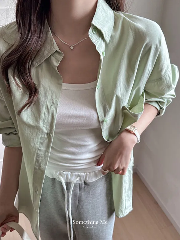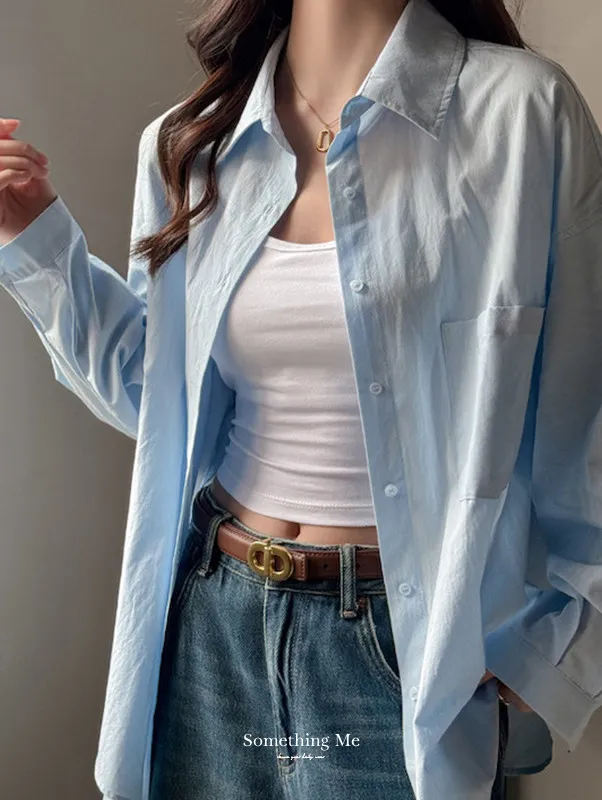 寬鬆簡約砂洗棉長袖襯衫 8色