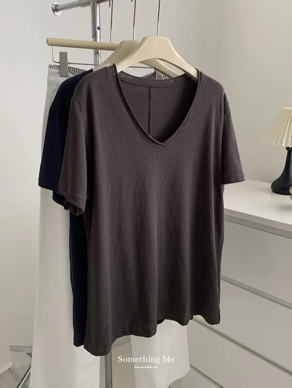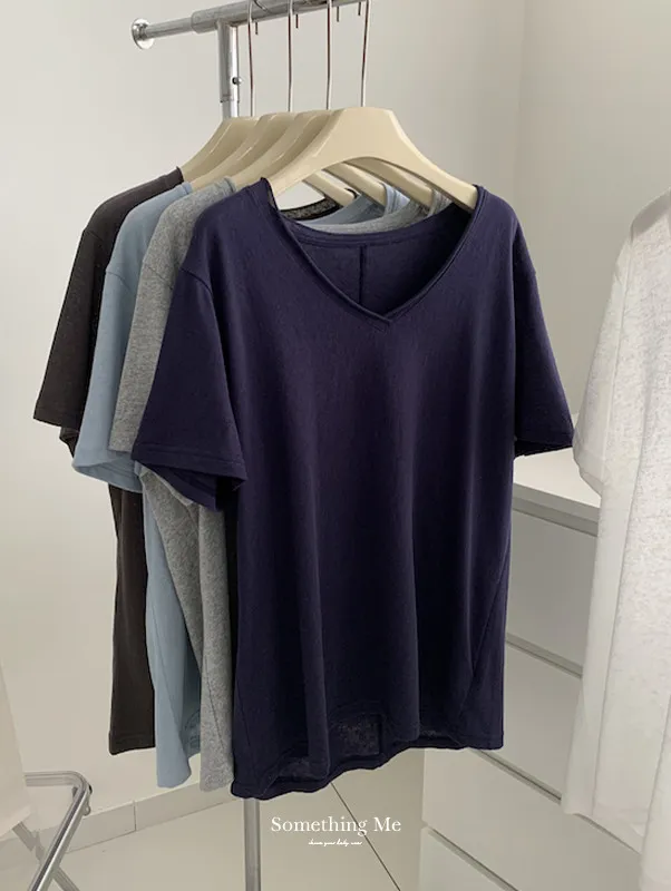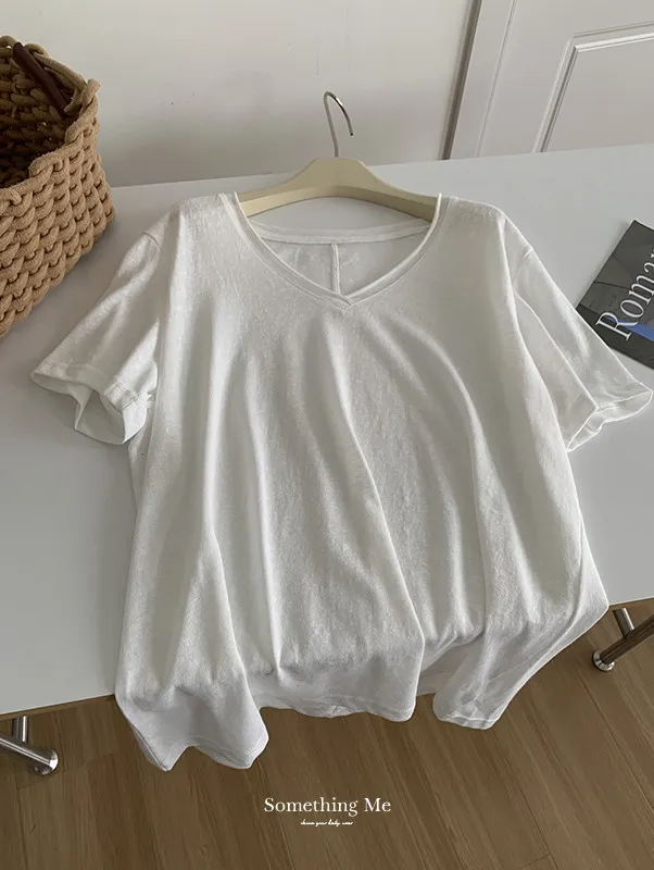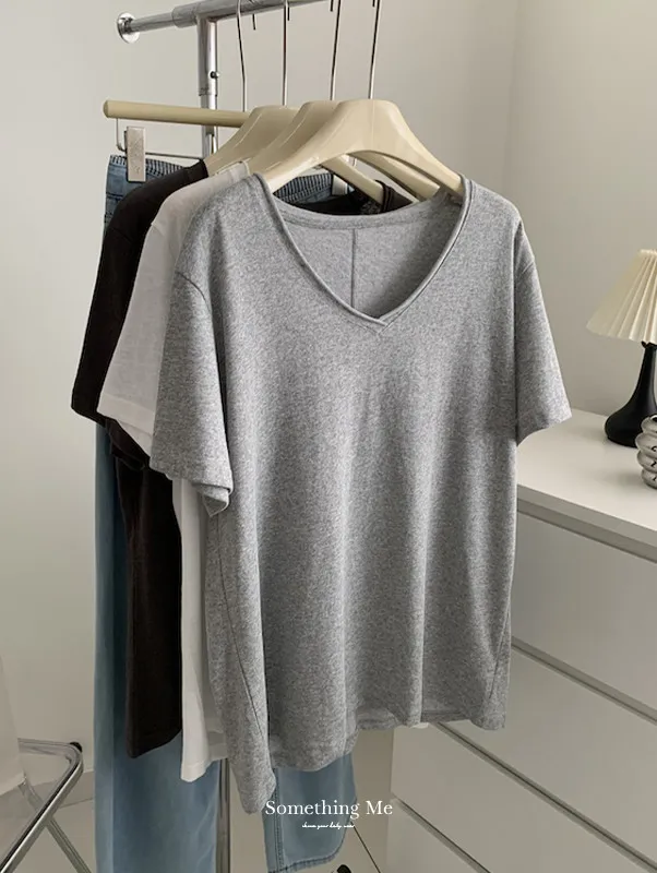 雲朵輕語 慵懶雪花肌理V領短袖T恤 5色
