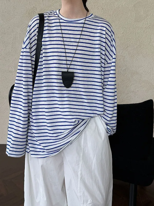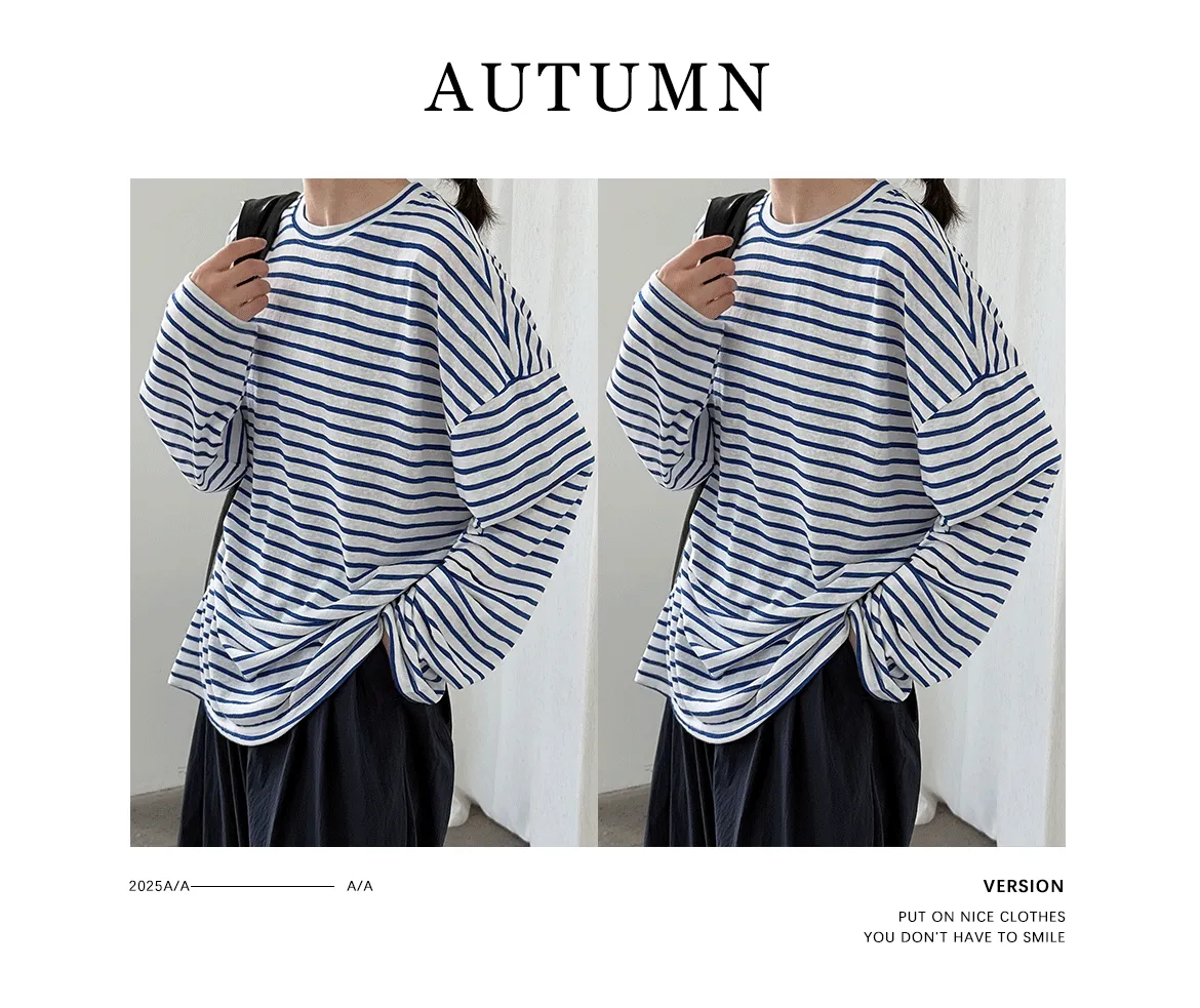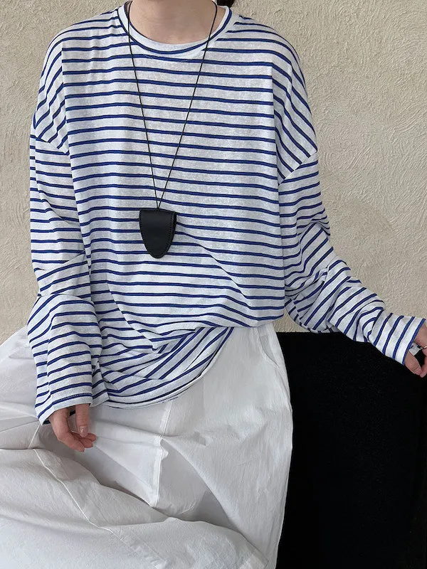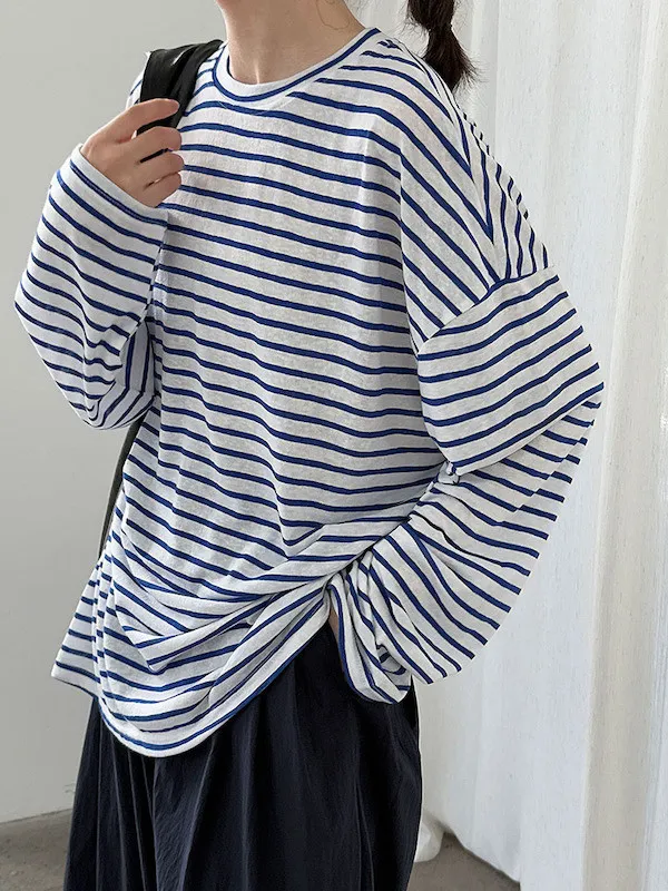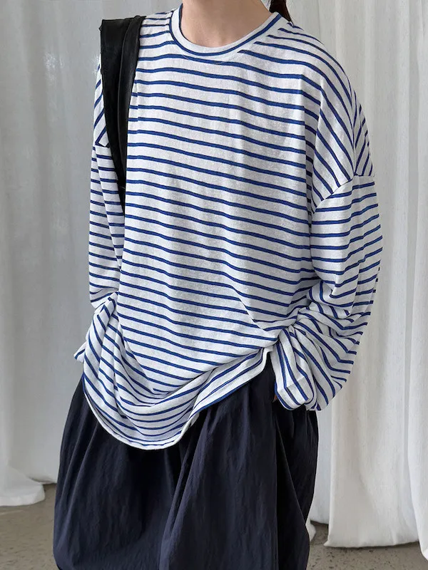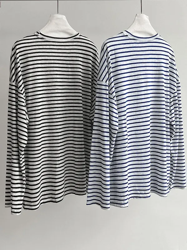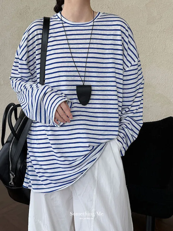海風漫步 慵懶寬鬆條紋長袖上衣 2色