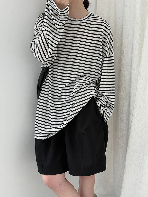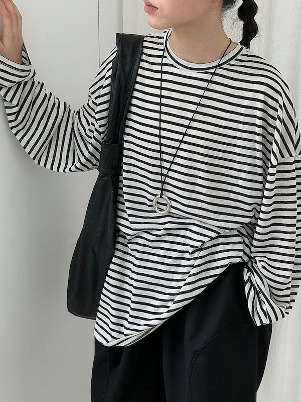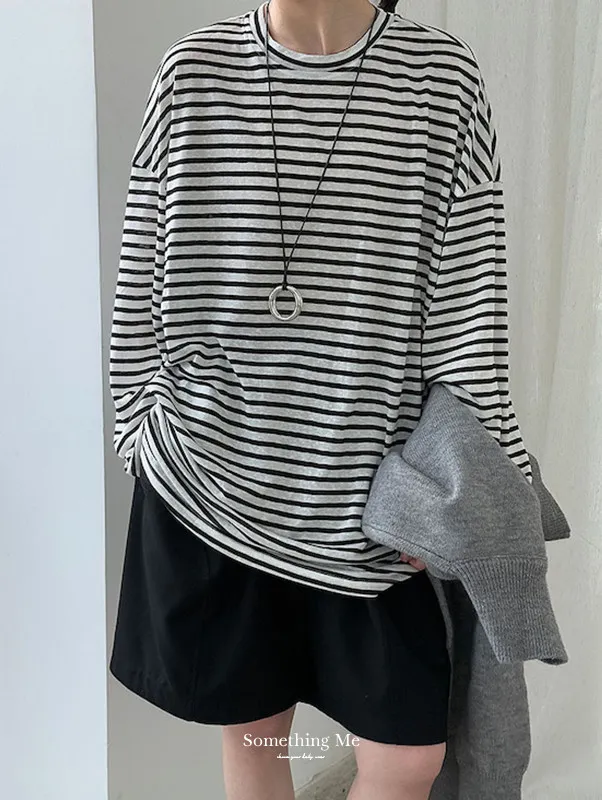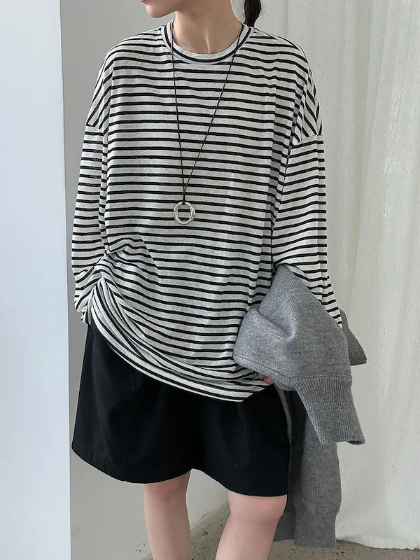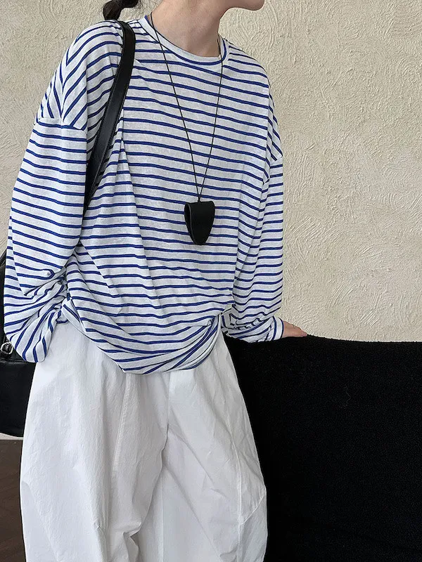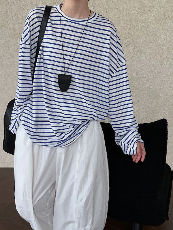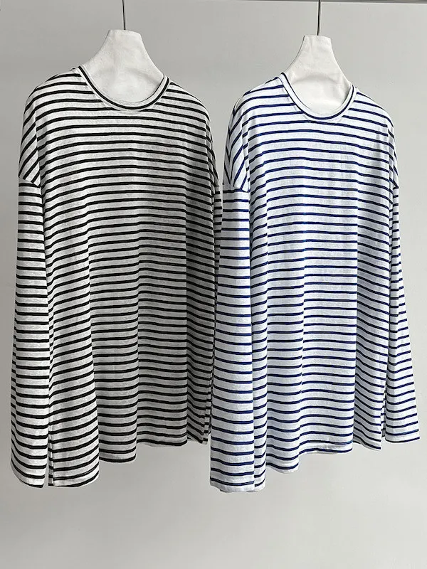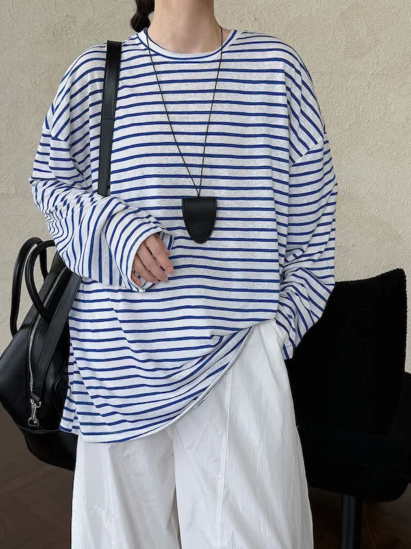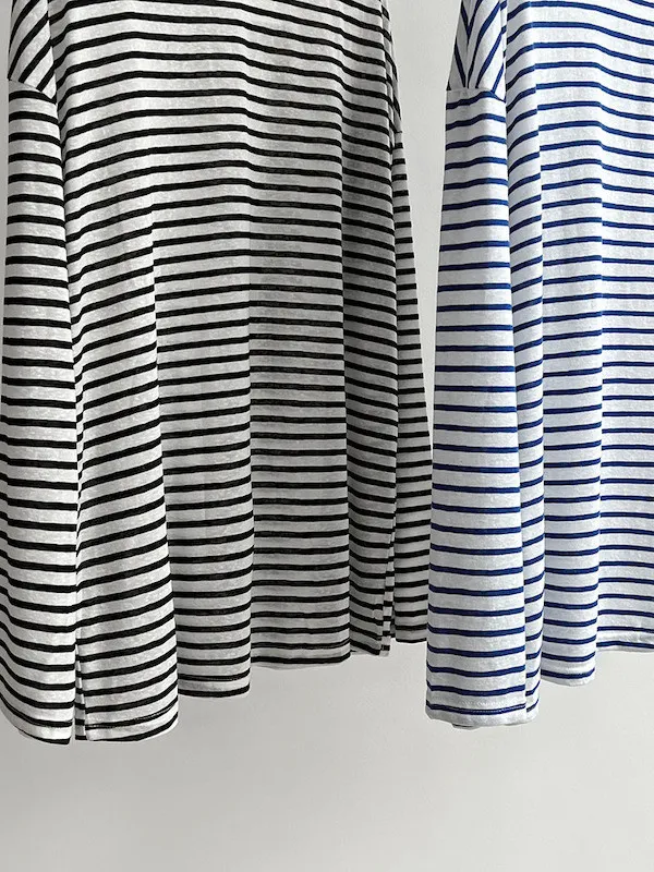 海風漫步 慵懶寬鬆條紋長袖上衣 2色