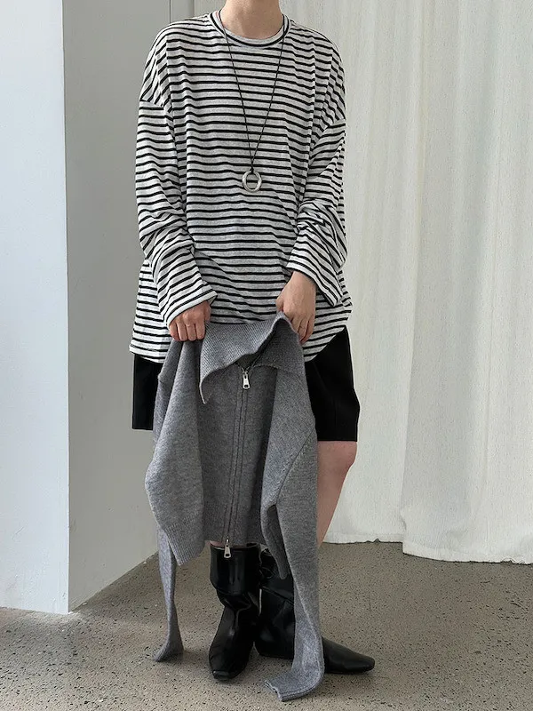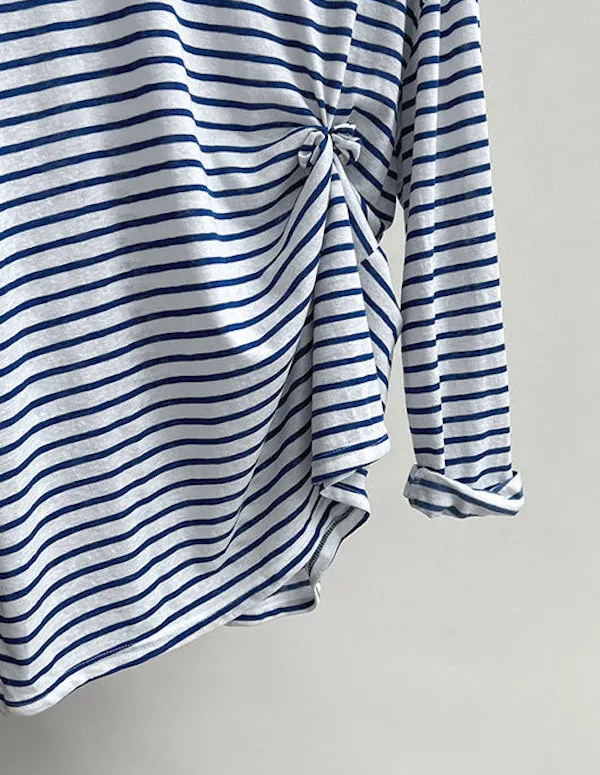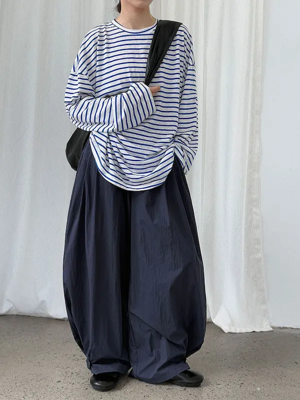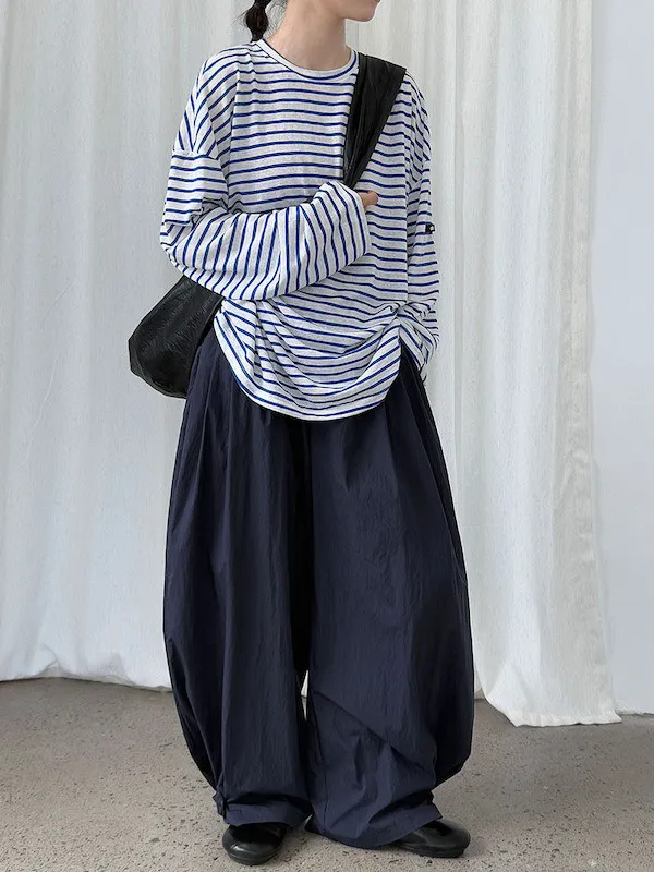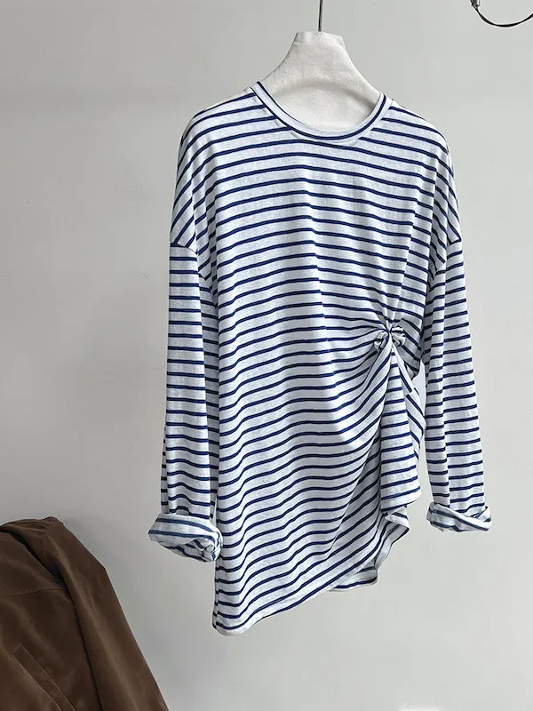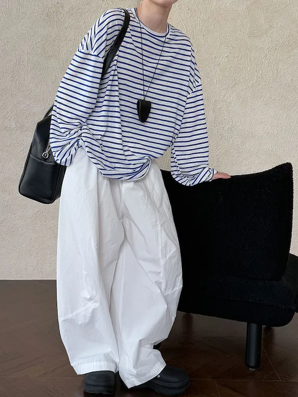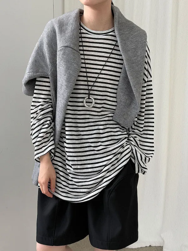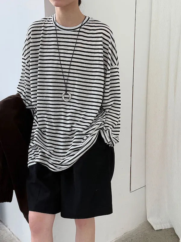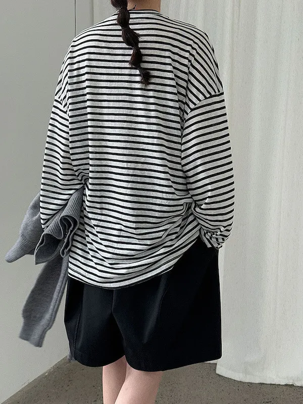 海風漫步 慵懶寬鬆條紋長袖上衣 2色